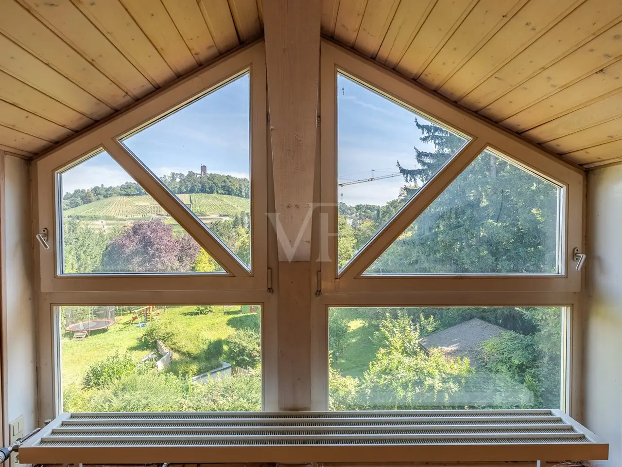 This well-kept detached house, built in 1963 and continuously modernized, is situated in a sought-after location on the Geigersberg and offers an attractive view of the Turmberg. With a living space of approx. 185 m² and a plot area of approx. 642 m², the property is particularly suitable for families looking for a home with plenty of space and a good infrastructure. The house is divided into six rooms, four of which can be used as bedrooms or studies. A spacious living room offers access to the garden and is flooded with light thanks to large windows. The kitchen is functionally designed, tiled to a high standard and allows for sociable cooking and get-togethers. A daylight bathroom provides comfort in everyday life. The furnishings are of a good standard and have been regularly maintained and partially renewed. There are high-quality floor coverings on both the first floor and the upper floor: new maple parquet flooring was laid on the upper floor in 2020, while the tiles in the bathrooms, kitchen and basement were recently renewed (2024). The windows were replaced between 2017 and 2020 and now mostly have triple glazing, some plastic, some wood. Additional protection is provided by burglar-resistant glazing on the first floor. On the upper floor, the shutters in room 2 and room 4 are electrically operated (2020), while manual shutters are available on the first floor. A balcony on the upper floor invites you to linger with a view of the Turmberg. The modernizations are particularly noteworthy: A new central heating system was installed in 2020, while at the same time the roof was extensively insulated and photovoltaic panels were installed on the south side, helping to improve energy efficiency. The pipe system was modernized back in 1985. In the basement there is a granny apartment with a shower room, which can also be used as an office. A garage offers ample parking space for your vehicle. The property is accessed from the street via a long staircase and the single garage is located on the street and is built into the slope. The attractive plot is well laid out and offers a wide range of leisure activities. Viewings are possible by appointment - we look forward to hearing from you.