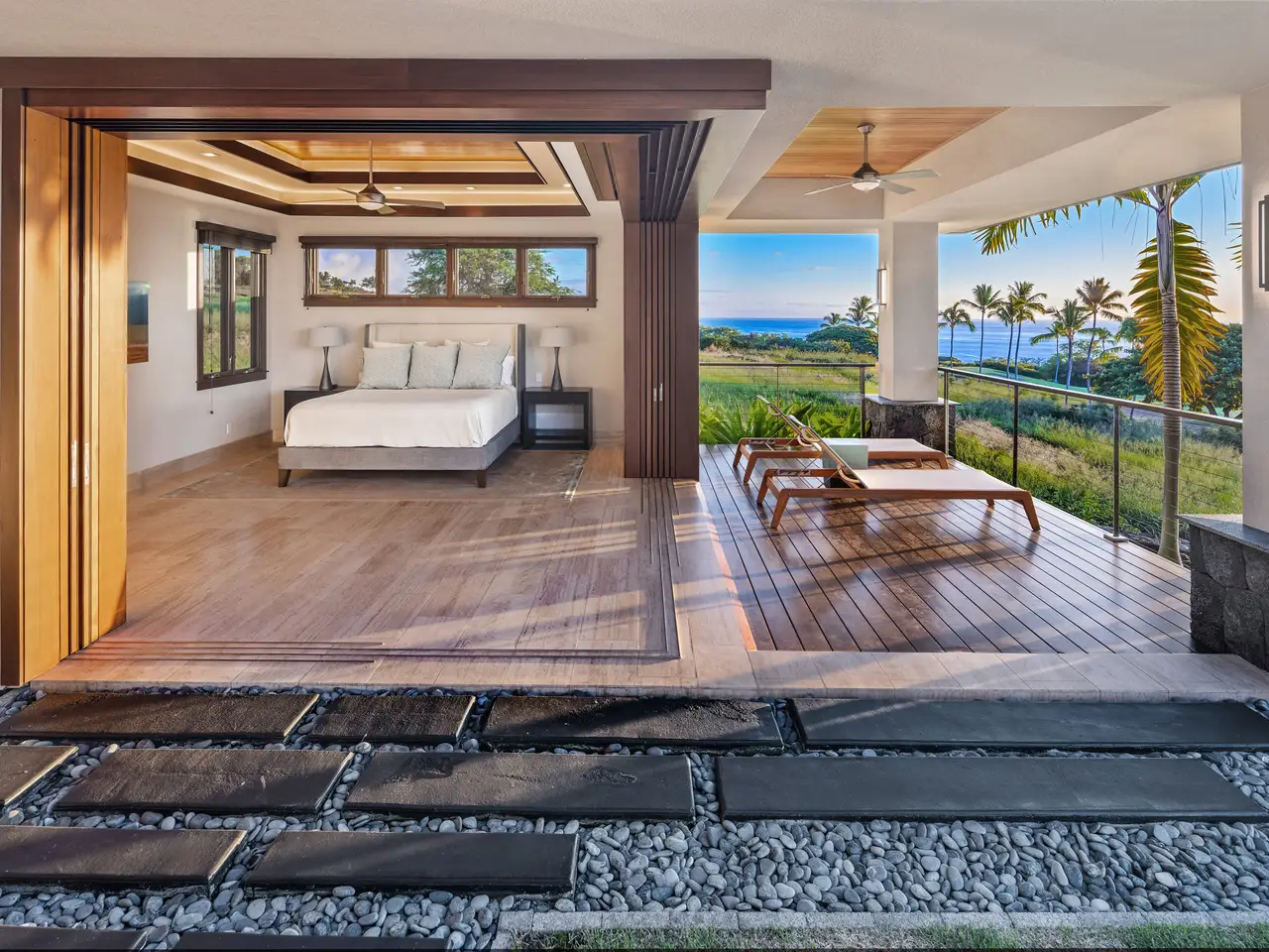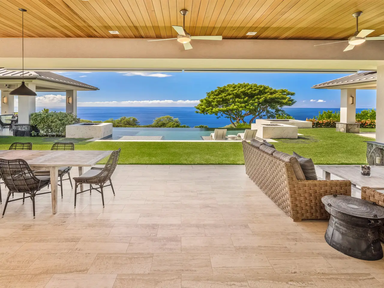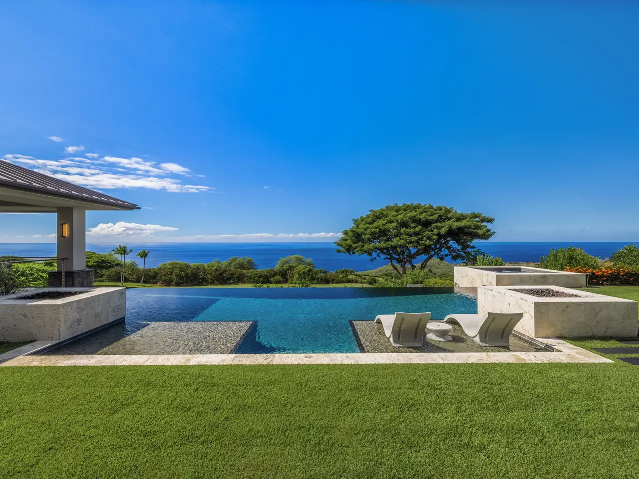 Hokuli‘a 116 stands as a truly remarkable residence along the golf course fairway within the exclusive community of Hokuli‘a. This property spans 1.15 acres and offers breathtaking views of the ocean and coastline. Designed to celebrate the natural beauty of Hawai‘i, this home combines refined architecture with an enviable location, providing the ideal setting for enjoying a peaceful and elegant island lifestyle. Refined Craftsmanship & Unique Indoor-Outdoor Living is reflected in every room and connects to lush landscaping, enhancing the indoor-outdoor flow and taking advantage of its natural environment. Pocket sliding doors open the interiors to an expansive covered lanai with stunning views. The home’s pod-style design features separate structures, or “pods,” for different functions such as bedrooms, living spaces, and the kitchen, all connected by breezeways and outdoor paths. Upon arrival, you are greeted by a roundabout that leads to a serene private courtyard, seamlessly blends into expansive social spaces that showcase stunning views. High ceilings with rich wood paneling create a warm and inviting atmosphere, while award winning built-in cabinet screens add both artistry and functionality. Fully furnished with luxurious finishes, this residence embraces open-air living, blending traditional tropical materials with modern aesthetics to create an elevated island-inspired experience, enhanced by gentle breezes and awe inspiring views from every corner. With more than 7,000 square feet under roof, the property includes a dedicated office, a spacious great room, 4 bedrooms, and 4.5 bathrooms. The private pool and spa tub provide a tranquil retreat, where you can start your mornings with a swim or end your evenings soaking in the vibrant hues of the Hawaiian sunset. A Hokulia Membership is included in the purchase price.