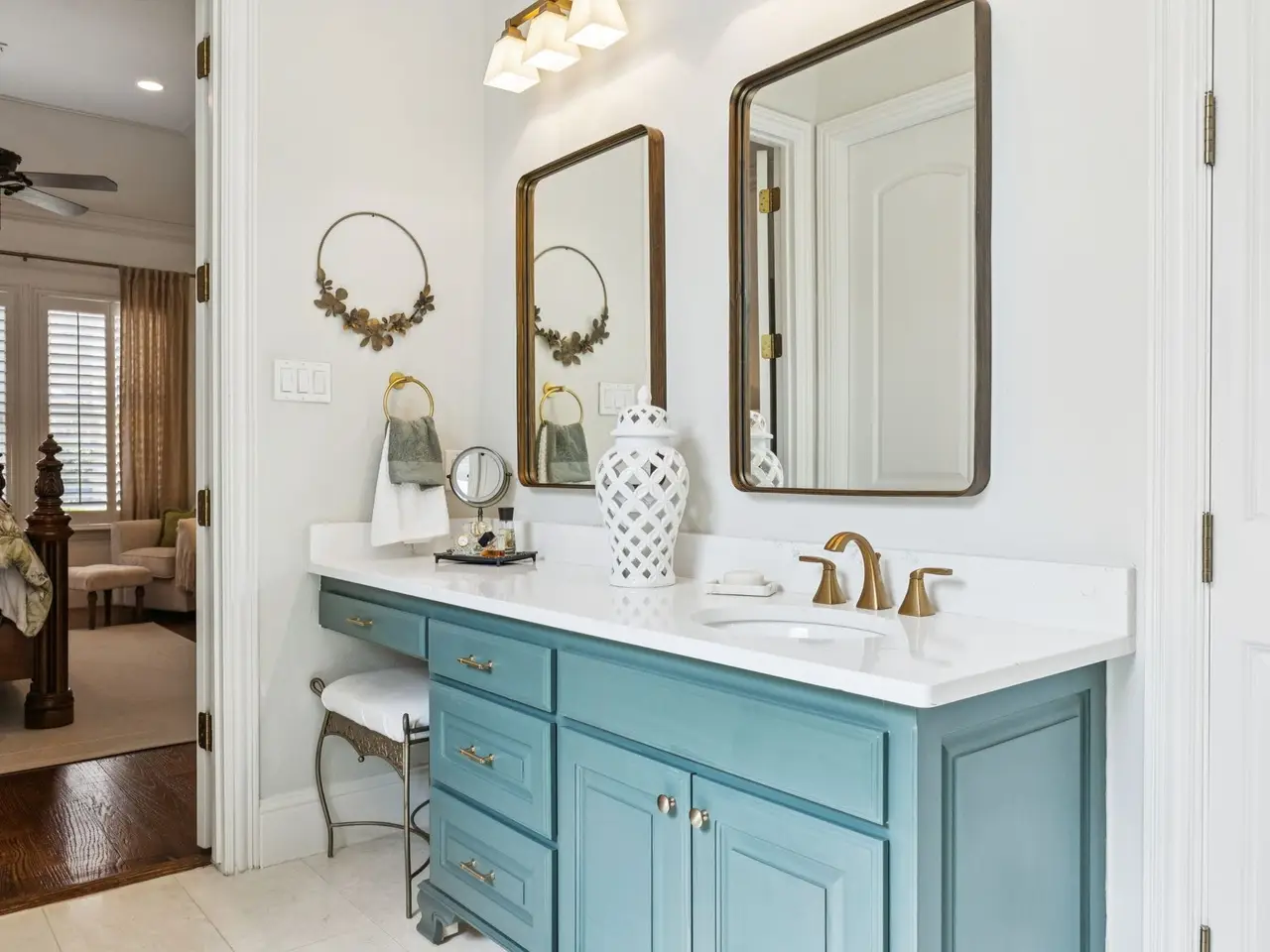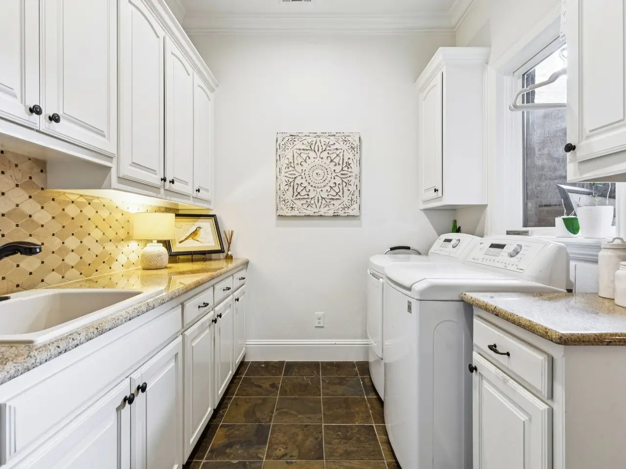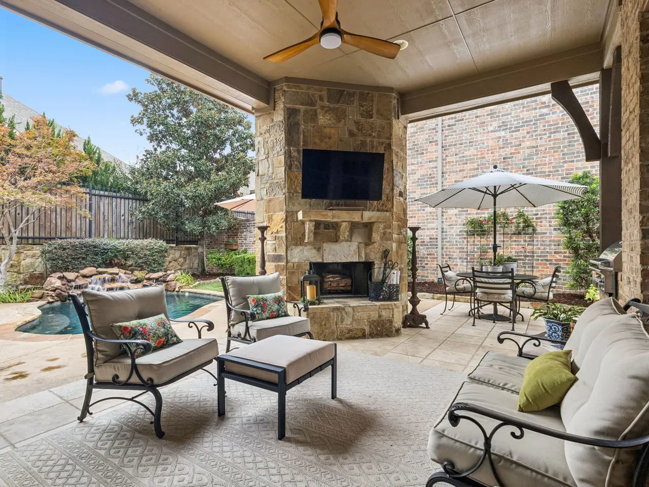 Refined Elegance & Resort Living is found within the exclusive gated Estates of Lyndhurst. Nestled on a quiet cul-de-sac, this custom single story home blends timeless craftsmanship with modern updates and elegant outdoor living. Enter along a gated, landscaped courtyard with the sounds of a gentle fountain & through a custom, hand carved wooden front door. Inside youre welcomed by an elegant foyer with a barrel ceiling, tumbled marble inlay & hand-scraped hardwood floors that extend seamlessly throughout. The formal living has vaulted ceilings, exposed wood beams, & a dramatic floor-to-ceiling stone fireplace flanked by custom built-ins. The dedicated study is rich with custom woodwork, built-in bookshelves, and ceiling beams, overlooking the pool and bathed in natural light. The fully custom designer kitchen features quartz countertops, a ceramic farmhouse sink, a coffee bar, lighted glass cabinet toppers, top-tier appliances, a built-in bar & a custom wood mantel over the gas range. The formal dining room is framed by elegant wood trim, a decorative alcove, and French doors to a private patio with a tranquil fountain, perfect for entertaining. Each of the three bedrooms offers privacy & comfort. Primary Suite features a tray ceiling, views of the pool & plantation shutters. The renovated spa bath boasts brushed Arctic White marble, a soaking tub, quartz dual vanities, a statement chandelier & a custom walk-in closet. Secondary Bedrooms offer custom high end finishes & en suite bathrooms. The private backyard is a resort-style escape, centered around a 5,500-gallon Claffey pool w water feature. Entertain effortlessly with a tiled porch, stone wood-burning fireplace w gas hookup, built-in gas grill, & TV-ready mantle for outdoor viewing. Enjoy the benefits of a gated, boutique custom neighborhood, manicured lawns & a strong sense of community. A private residents-only park sits just across the street, while Milestone Park's walking trails are just steps away.
