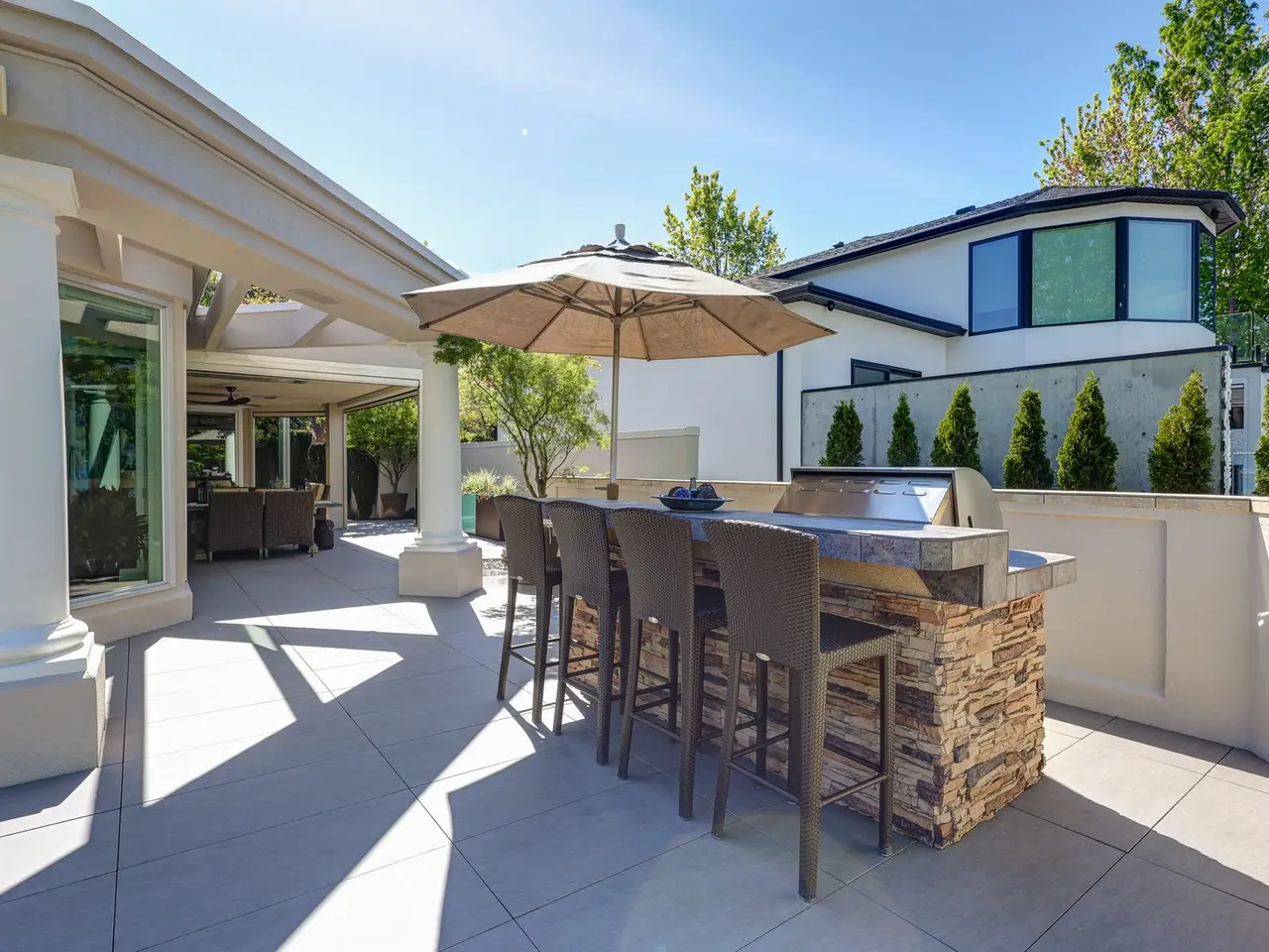 • Expansive patio with built-in BBQ and heaters