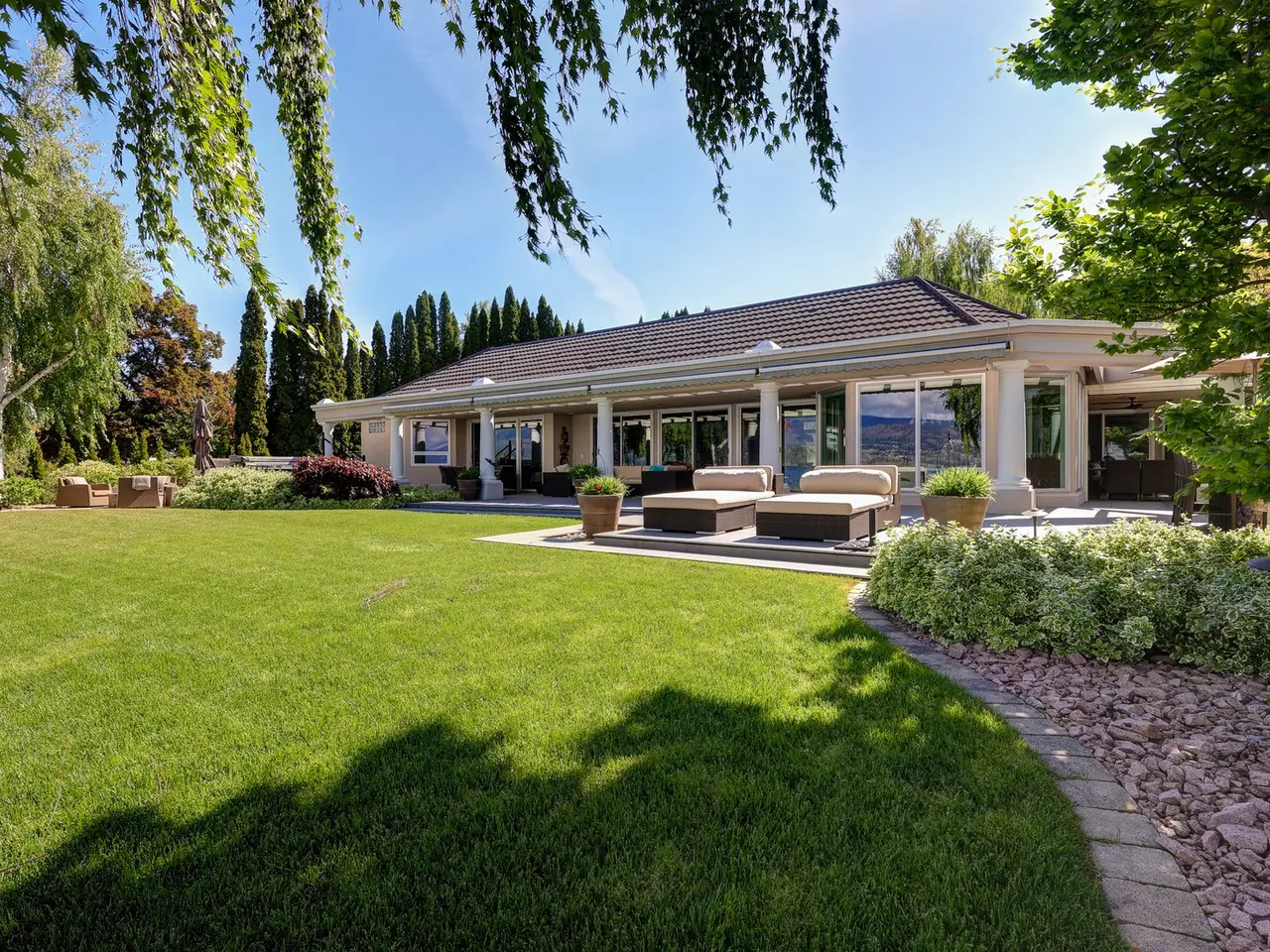 Listed by Unison Jane Hoffman Realty | Rare offering on the shores of Okanagan Lake. This one-level lakeshore home in Kelowna’s coveted Lower Mission offers modern comfort with exceptional privacy. Set at the end of a quiet no-thru road, the .49-acre property boasts over 105 ft. of level beachfront, mature landscaping, and a shared dock with boat and Seadoo lifts. Spanning over 3,600 sq. ft, this 3-bedroom, 3-bath rancher with 1 bedroom/1 bath guest house is designed for effortless indoor-outdoor living, featuring floor-to-ceiling sliding doors and stunning lake views from nearly every room. The gourmet kitchen is perfect for entertaining, complete with custom cabinetry, expansive counters, professional-grade appliances—including a gas range, double oven, and dual dishwashers plus a charming breakfast nook with lake views and patio access. The generous primary suite offers direct patio access, a spa-inspired ensuite, and a walk-in closet with a skylight and center island. A detached guest casita with its own bed and bath provides the ideal retreat for visitors. Outside, the expansive patio with built-in BBQ, ceiling fan, and heaters sets the stage for lakeside gatherings. Additional highlights include a triple garage, smart home features, heated floors, and a private hot tub. A rare opportunity to live lakeside in one of Kelowna’s most sought-after neighbourhoods, just minutes to downtown, world-class wineries, and local golf courses.