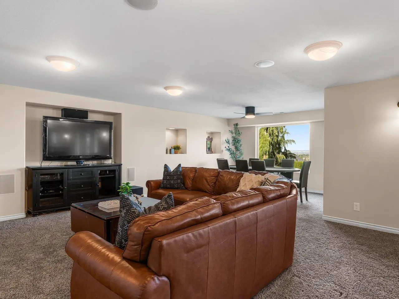 MLS# 283810 Welcome to your dream home in the highly sought-after inspiration Estates, offering over 5,000 sq ft of luxurious living space on a beautifully landscaped 1/3-acre lot. This stunning property boasts panoramic views and breathtaking sunsets you can enjoy from multiple vantage points, including the expansive upper deck and walk-out basement patio. Step inside to soaring ceilings and an inviting entryway that opens to a spacious home office featuring custom built-in shelving. The main level's open-concept design seamlessly connects the expansive family room and updates kitchen and dining area. The kitchen features modern finishes, ample storage, and easy access to the deck for outdoor dining and relaxation. Retreat to the luxurious main-level primary suite, complete with spa-like bathroom, soaking tub, dual vanities, and a large walk-in closet. Upstairs, you'll find a junior suite with private bath, two additional generously sized bedrooms, a full bath and a large bonus room- Ideal as a media room, playroom, or even a fifth bedroom. Downstairs is an entertainer's paradise. The spacious rec room is perfect for pool, cards, and casual gatherings. Wine enthusiasts will love the custom climate-controlled wine cellar-Ideal for storing and showcasing a prized collection. A large storage area offers extra storage and a convenient place for that home gym. Step outside to your backyard oasis featuring a covered patio, hot tub, outdoor kitchen, fire pit area, and a personal putting green. This home offers luxury comfort, and room to live, work, and play-all in one of the area's most desirable neighborhoods.