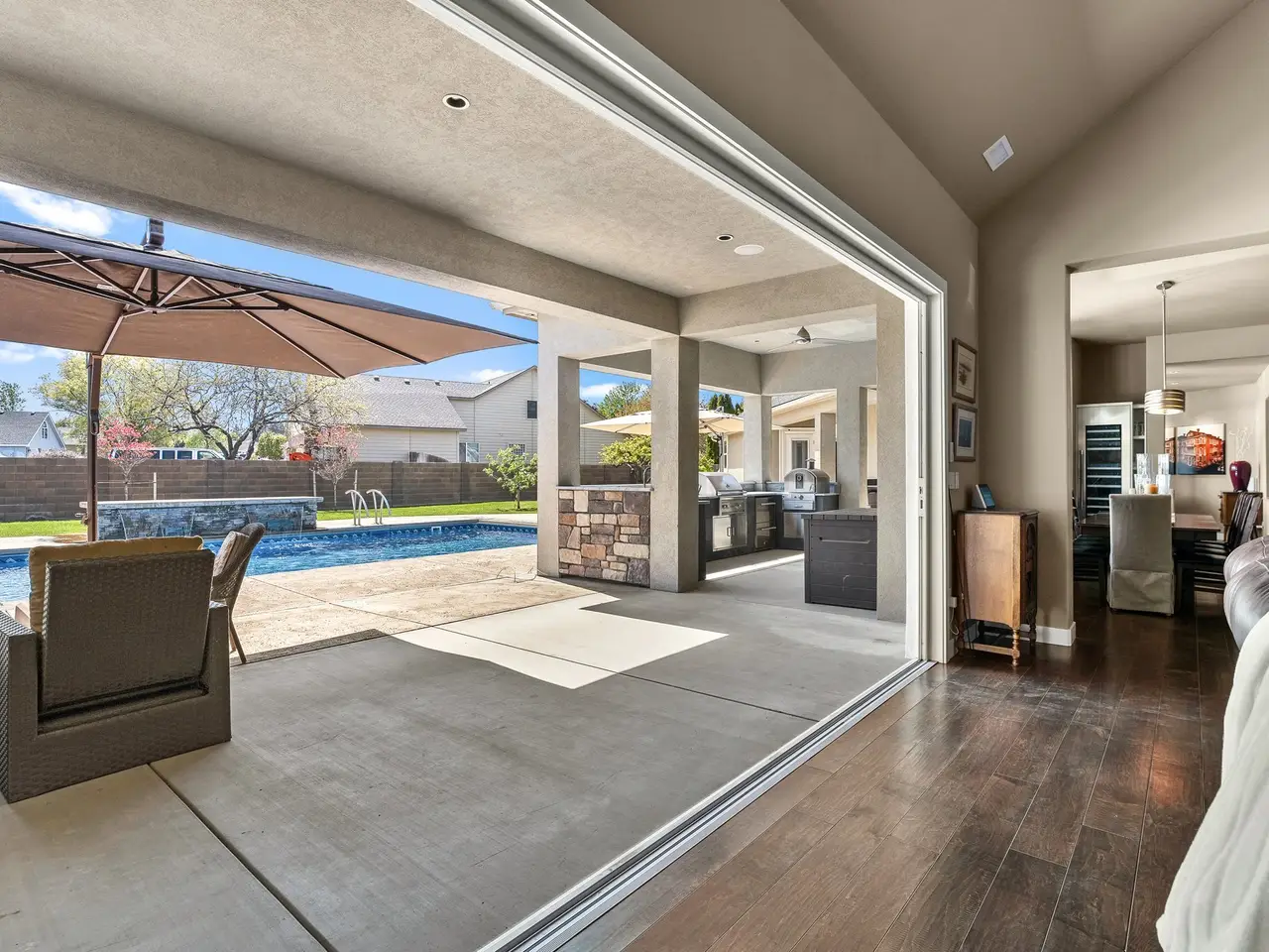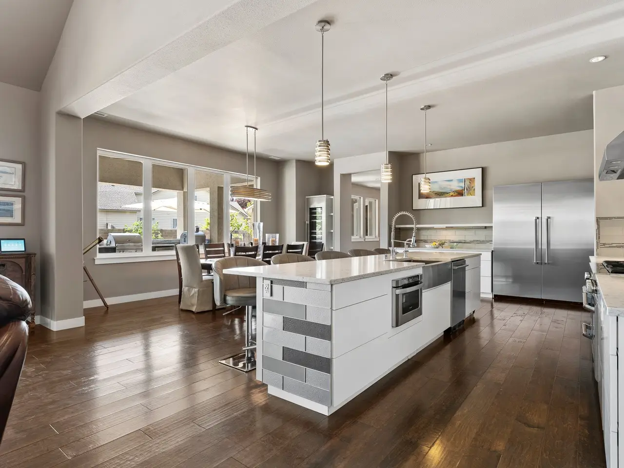 Welcome to 5001 W 20th Ave, Kennewick. This extraordinary custom home is an architectural masterpiece built by the renowned Don Pratt and featured in the 2014 Parade of Homes. Set against a backdrop of lush, professionally landscaped grounds, this home is the epitome of refined elegance and seamless indoor-outdoor living. Approaching, you’ll be wowed by the homes presence! Framed by mature trees, vibrant gardens, and a tranquil setting that feels like a private resort. Enter through the grand double wood doors into an interior that is nothing short of breathtaking: wide hallways, rich engineered hardwood floors, and radiant in-floor heating that offers luxury beneath your feet. The great room stuns with a full NanaWall that collapses completely, blurring the line between inside and out. Entertain with ease as the home opens to your own private paradise. A gas fireplace, built-in cabinetry, and oversized windows in the dining area are perfectly positioned, and sized, to match a second NanaWall, should you want to extend. The heart of the home is the chefs kitchen! It boasts an oversized quartz island, custom cabinetry, hidden outlets, and Thermador appliances. A 92-bottle wine cooler completes the space. Off the kitchen, a hidden pantry includes a second dishwasher, a deep sink, and room for secondary appliances. The primary suite is a sanctuary. Glass doors with built-in privacy shades open to a spa-like retreat featuring a freestanding slipper tub, an expansive curb less double shower with dual showerheads, double vanities, and a walk-in closet. Quietly tucked away is a hookup for a Miele ventless washer/dryer combo. Two secondary suites each offer large walk-in closets and luxurious ensuites. The office is complete with a full-height library wall and sliding ladder. Outside, discover an entertainers dream! The heated pool includes a waterfall, automatic cover, and brand new vinyl liner. The outdoor kitchen is fully equipped, including a pizza oven. The grounds also feature raised garden beds, a potting station w/ sink, and a variety of fruit trees and berries. Behind the scenes, this home is packed with modern technology. Powered by a 7.6kW solar system, it features Navien on-demand hot water, Warm board radiant floors, attic A/C, a soft water system, Phyn water monitoring (app-controlled), and Sense energy monitoring. The 4-car garage includes 400-amp service and dual 220V EV outlets. This home isnt just a place to live - its a lifestyle.