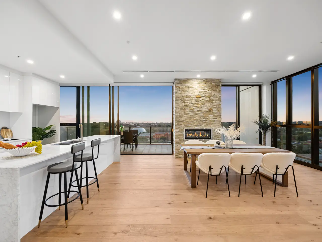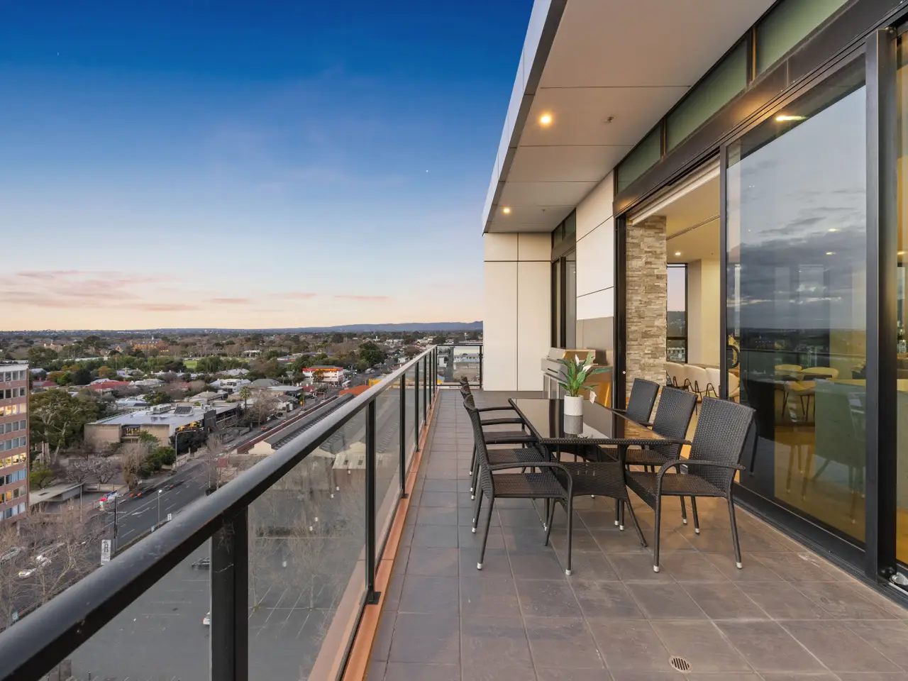 Uncompromising luxury and prestige combine to present a rarely found level of indulgent penthouse living on the leafy-east city fringe. Perched atop the esteemed 'East Park' apartment complex on the city's doorstep, sky bridge access to this three-bedroom penthouse reveals a sophisticated and spacious interior overlooking the CBD skyline and iconic neighbourhood establishments, including the National Wine Centre, Rundle Park and the Botanic Gardens. Maximising the spectacular outlook are three balconies along with wall-to-wall glass bathing the interior in golden sunrise hues… nature's finest art introducing the beauty that sets this penthouse apart from all others. Designed with three metre ceilings, sublime timber floors, a stone feature wall and an exceptional chef's kitchen, the vast open plan space with a full-width balcony is every home entertainer's dream. Also taking the experience to heavenly heights is the enchanting primary bedroom where the walk-in robe, couples' ensuite and private balcony are simply unrivalled. The exceptionally luxurious main and ensuite bathrooms are accompanied by a powder room and a well-designed laundry. And the perks of choosing this penthouse lifestyle extend to the inclusion of four carparks, along with the communal gym and shared BBQ facilities. - C.2017 apartment with four carparks and a storage cage - Executive home or premium investment - Full-width wall of interior storage cupboards - Exceptional master bedroom with a couple's luxe ensuite, plus-sized walk-in robe and private east-facing balcony - Queen size second and third bedrooms, east-facing with built-in robes - Vast open plan living: 3m ceilings, timber floorboards, stone feature wall with a built-in gas heater - Smeg kitchen appliances, integrated dishwasher, butler's pantry, stone benchtops - Two impressive bathrooms: full-height tiling, freestanding bathtubs, double walk-in showers, double wall-hung vanities - Separate powder room and laundry - Ducted reverse cycle air conditioning - LED downlights - Keyless entry, intercom system, CCTV - Located between St Peters Boys College and Prince Alfred College - Zoned Norwood Primary School and Marryatville High School - Nearby public transport - Walk to city entertainment and dining venues, universities, shopping precincts RLA 326078