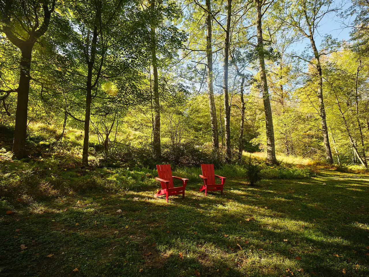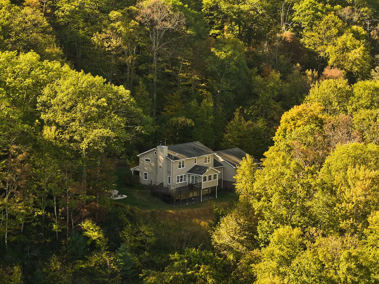Serene Estate Surrounded by Forest and Rock Outcroppings