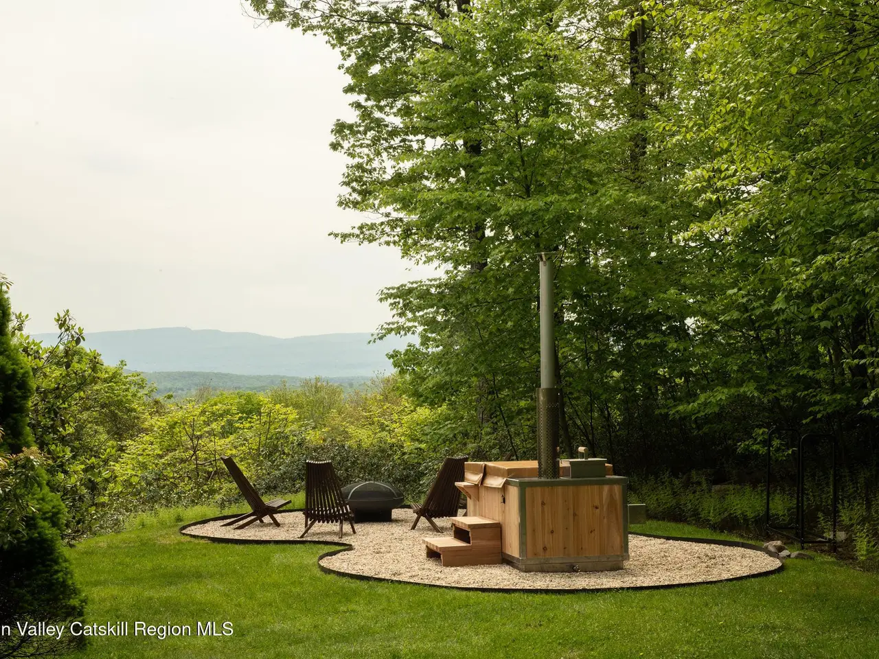 High above the valley, tucked among ancient stone and soft forest light, Stillview feels like a place the world forgot to rush. Opening to a long, unbroken panorama of the Shawangunk Ridge and the cliffs of Mohonk, Stillview is surrounded by nearly nine acres of forest and rock outcroppings, and offers complete privacy with a sense of calm that feels rare, even here.The house itself is effortless, a study in serenity. Light streams through each window, landing gently on oak floors and moving with you from room to room as you go from morning coffee in the sunroom to studious afternoons in the office to quiet evenings around the fireplace. The living room, anchored by a sleek fireplace and warm brass fixtures, flows into the welcoming sunroom and adjacent kitchen. The kitchen, a mix of natural textures and thoughtful restraint with its Zellige tile and stone counters, offers verdant views and opens toward a formal dining room with custom built-ins. Adjacent to the kitchen and dining room is an immaculate walk-in pantry with custom shelving. A laundry room with half bath and direct access to the attached garage round out the main level. Upstairs, each bedroom looks out to the woods and feels equally private and calm. The expensive primary suite is a true retreat, its windows framing the changing colors of the landscape, green and luminous in summer, gold in autumn and crystalline in winter. Complete with double vanity, separate water closet, glass-and-tile shower, luxurious soaking tub and walk-in closet, the primary suite creates a measured rhythm of calm and a space that feels both composed and deeply restorative. On the lower level, a finished studio space walks out to the land and creates the perfect gym, playroom or guest space. Outside, the land reveals itself slowly: ledges of ancient rock softened by moss and ferns, glimpses of light through oak and birch, and a silence that deepens at dusk. Low-maintenance by nature, without a neighbor in sight, End the day in your outdoor oasis overlooking the Shawangunks by rejuvenating in your hot tub and decompressing with an evening cocktail around the fire pit while recollecting your thoughts as you enjoy your private vista.Stillview is truly private, elemental and deeply peaceful. Stillview is 2 hours from New York City and perfectly positioned for weekends that mix rest with exploration. Minnewaska State Park and Mohonk Preserve are just minutes away, with endless trails and hidden lakes. Within a short drive are local favorites Inness, Westwind Orchard, Arrowood Farm and Ravenwood. Kingston and New Paltz are close enough for a day's wander, each with their own rhythm and charm. At Stillview, the hours lengthen, the light softens and the rest of the world falls away. The property is being sold with all furnishings for a truly turn key experience.