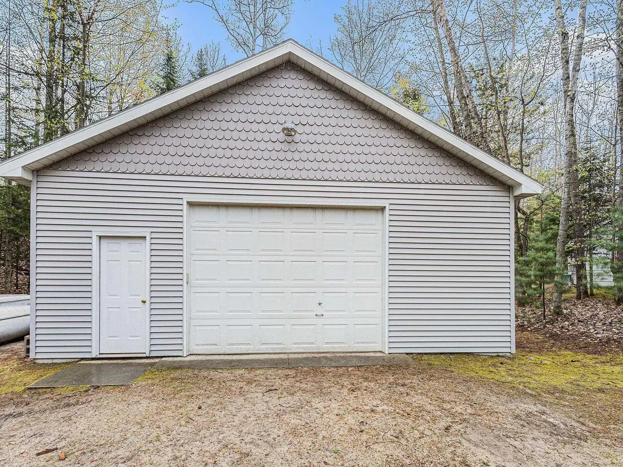 Discover your own piece of paradise with this stunning Lake Michigan waterfront property, where every day feels like a vacation. Enjoy direct access to one of the world's most beautiful freshwater lakes and immerse yourself in the ultimate lakefront lifestyle. Step outside to your 200' of private sandy beach on Lake Michigan and savor the soothing sounds of waves and breathtaking sunsets. Whether you seek relaxation or adventure, this home offers it all: kayak along the shoreline in the morning, spend afternoons boating or paddle boarding from your dock, and gather around a lakeside fire pit in the evening. Experience true Northern living in this stunning Custom Woodcraft home nestled on 3 acres located just minutes from Elk Rapids and Charlevoix. Designed for maximum enjoyment, this spacious retreat features expansive windows and spacious decking. Home features over 4500 sp. ft. of living space, 5 bedrooms and 5.5 bathrooms, thoughtfully designed for comfort and entertaining. The open floor plan showcases quality craftsmanship with natural wood finishes, expansive windows framing water views, and generous living spaces ideal for gatherings or peaceful relaxation. In addition to the main residence, the property includes a charming original Bellaire log cabin, perfect for guests or a cozy getaway, and a large pole barn providing ample space for storage, hobbies, or equipment. Experience the magic of Lake Michigan-embrace serenity, adventure, and the timeless appeal of living by the water's edge. Your ultimate waterfront lifestyle awaits.