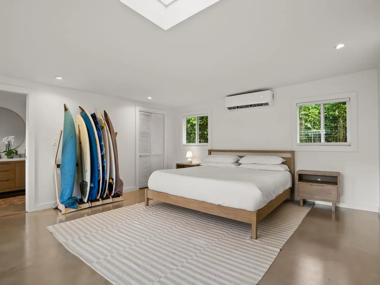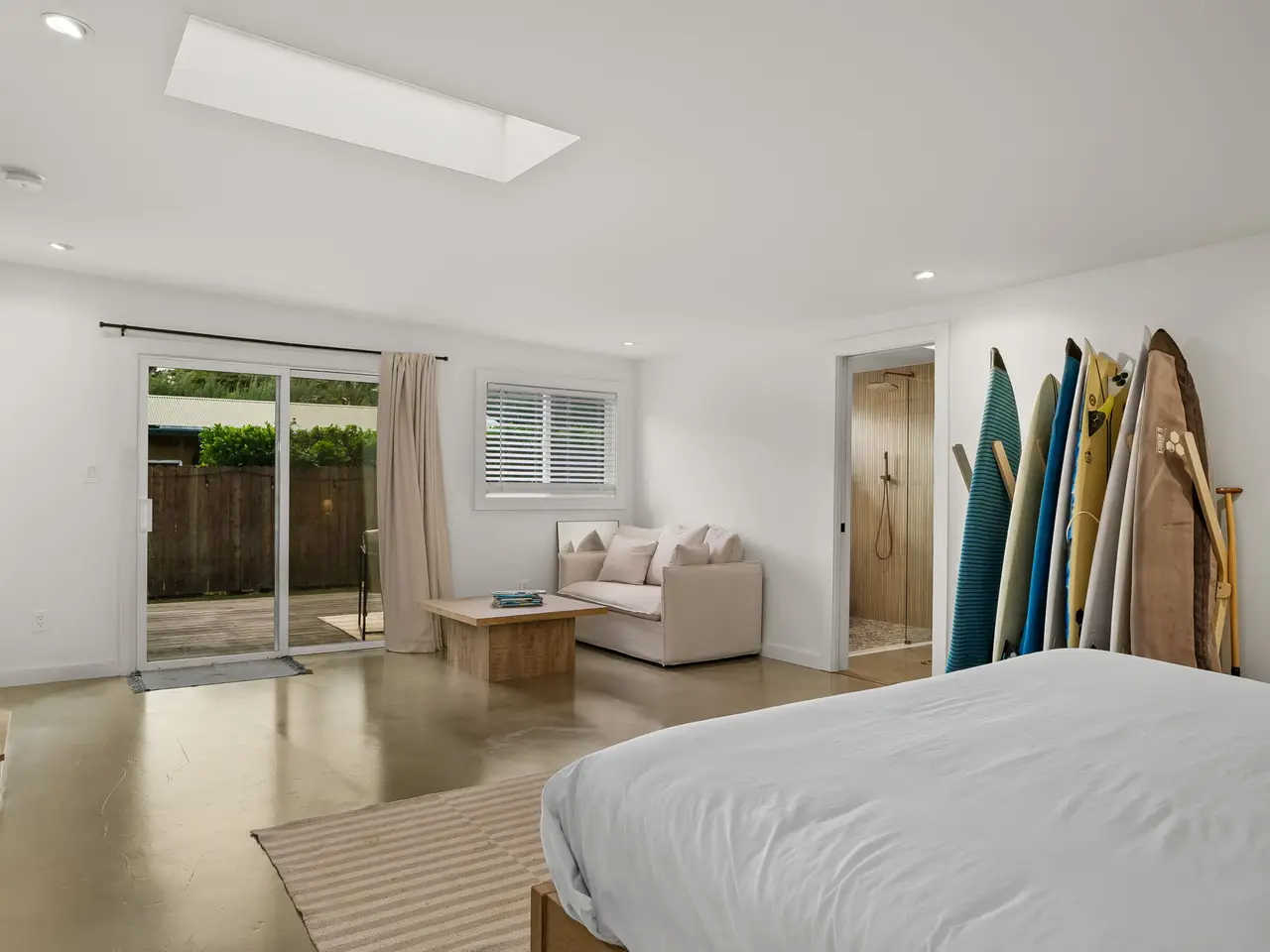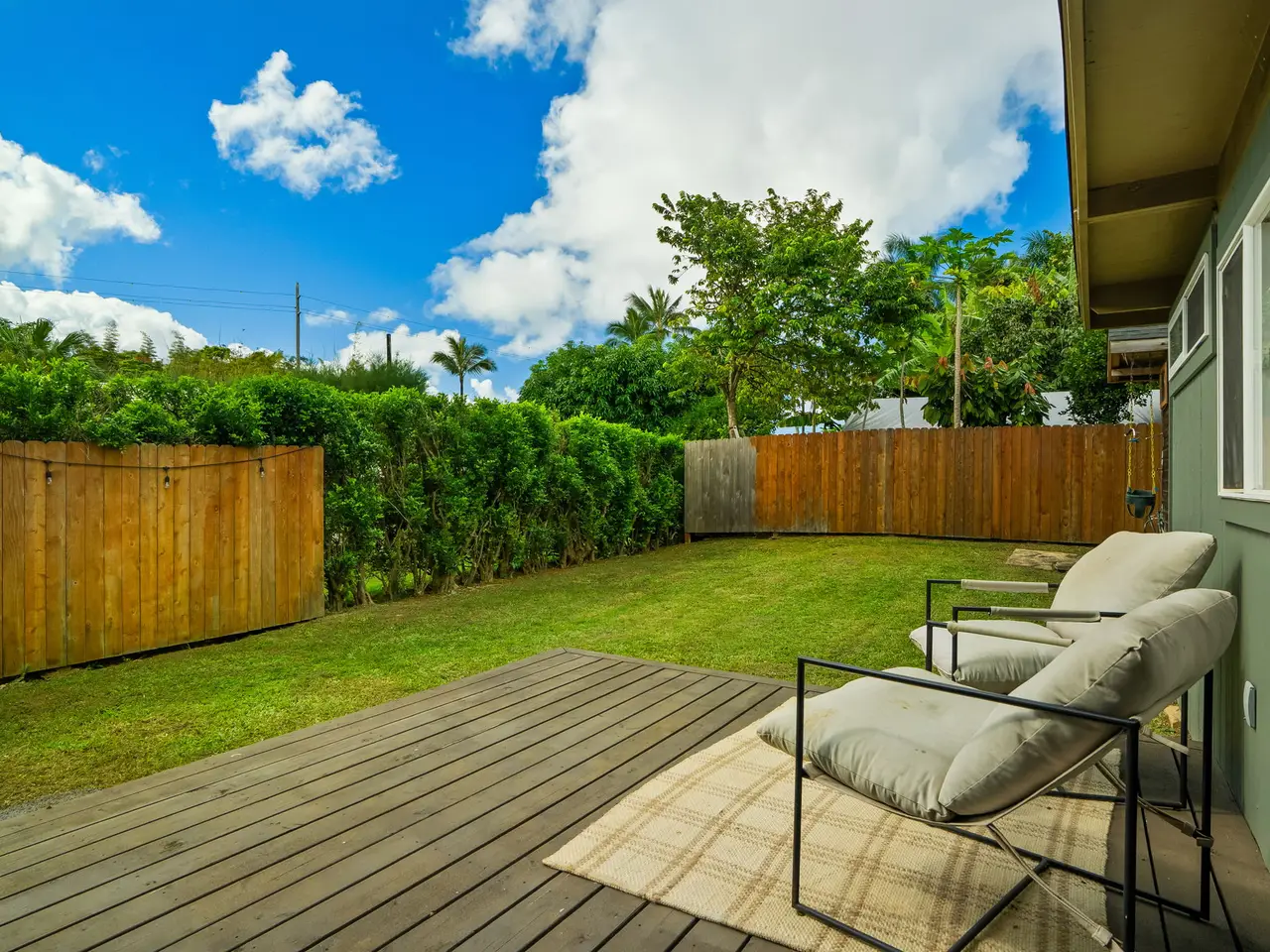 Ideally located on a quiet cul-de-sac in the heart of Kilauea, this beautifully modernized 3-bedroom, 2-bath home blends comfort with timeless design. With updates completed in 2025, the home features all-new white oak hardwood flooring, a fully remodeled kitchen, upgraded electrical, new lighting, A/C systems, and fresh interior and exterior paint.The brand-new kitchen showcases Café Series appliances—including a double wall oven, gas cooktop, drawer microwave, dishwasher, and refrigerator/freezer—paired with custom cabinetry and honed quartz countertops. The spacious primary suite has polished concrete floors, a sitting area that leads to an outdoor lanai and a new bathroom with dual-sink vanity, walk-in shower, soaking tub, and Delta bronze fixtures with a rain shower head.Energy efficiency is paramount with a 16-panel photovoltaic system, SolarEdge inverter, and Tesla Powerwall providing whole-home backup capability.Additional upgrades include two individual split-system A/C units and a beautifully designed custom laundry space with new LG stackable washer/dryer with built in drawers and storage.Move-in ready, and ideally positioned near Kilauea town amenities—this home offers comfort, style, and long-lasting value.
