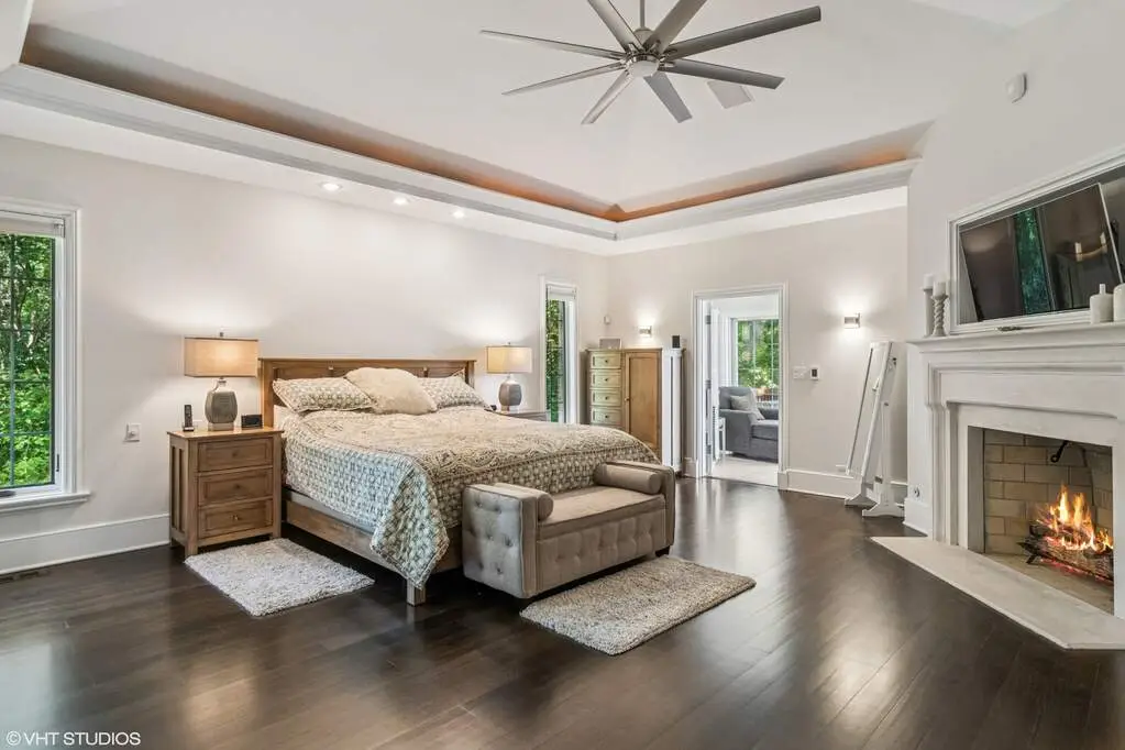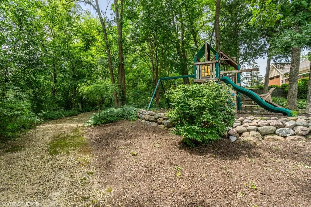 An extraordinary retreat on Bishop's Lake in Kildeer, this over 3 acre estate blends rugged nature with sophisticated luxury. Just minutes from downtown yet worlds away in serenity, it offers sweeping lake views, mature trees, and a private resort lifestyle. Inside, the home stuns with a grand stairwell accented by a 20-foot stone waterfall, custom millwork throughout, and four fireplaces that create warmth and character in every season. The dramatic great room features soaring ceilings and walls of glass that frame ever-changing lake vistas and flood the space with natural light. At its center is a true highlight-an extraordinary $300K walnut kitchen, showcased on HGTV's "I Want That." Recently enhanced with new quartz counters and top-tier stainless appliances, it blends striking design with everyday functionality. Resort-style amenities extend beyond the walls: a treehouse-style gazebo, private beach with lake access for swimming and kayaking, and a year-round indoor pool/ hot tub with a waterfall that feels like a world-class spa. Wildlife is part of the daily rhythm here-swans gliding across the water, deer along the treeline, egrets soaring overhead, and excellent fishing right from your shoreline. Whether entertaining by the lake, enjoying quiet mornings on the beach, or relaxing fireside after a swim, this estate delivers a rare balance of natural beauty and sophisticated design in one of Kildeer's most coveted settings. Completing the picture is a massive three-car garage, featuring one oversized stall with a 10'10" door and nearly 30' deep- perfect for housing an RV, boat, or car rack.