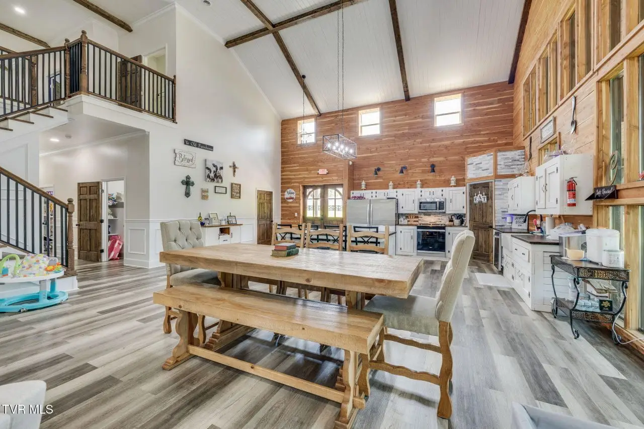 This one-of-a-kind Airbnb offers a 6600 sq ft custom-built barndominium with 2 car garage sitting on nearly 3 acres in the scenic Tennessee countryside. Plus, a 60x40 detached 3-bay garage/shop. This 5-bedroom, 3-bath layout showcases 32-foot cathedral ceilings and expansive windows that fill the space with natural lighting. A cozy fireplace adds warmth and charm to the main living area, creating an inviting atmosphere for gatherings throughout the year. The master suite is conveniently located on the main level featuring a spacious master bedroom, a full bath with double vanities, a beautifully tiled shower, and a large walk-in closet. Upstairs, you will find two additional bedrooms, a full bath, a large bonus room, and a movie room perfect for movie nights, game days, or relaxed hangouts with friends and family. Completely Furnished! Take a refreshing splash in the in-ground pool, the perfect spot for sunny afternoons and evening swims. Enjoy the screened-in porch with an outdoor kitchen featuring a fridge, sink, and Blackstone grill, where cookouts and brunches with family and friends are always a good time. The porch also includes two large TVs, perfect for football season and game nights. Whether you're planning a wedding party, birthday celebration, vacay getaway or weekend retreat, this property provides a striking setting and plenty of room to bring people and celebrations together. The outdoor space is well-suited for event setups tents, tables, dance floors, photo stations, and more. Also included is a 60x40 metal garage with three garage bays, currently leased out month to month by a local trucking company. Offering two offices and a full bathroom with shower, generating consistent monthly income from a long-term tenant.This is a commercial listing with an active rental and lease income.