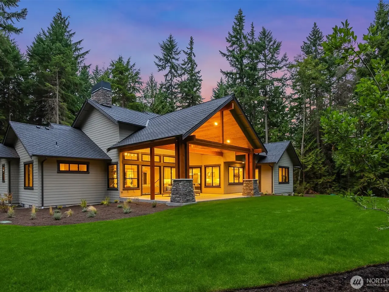 Experience a rare opportunity to own one of Kingston's premier estates. Newly built, this 3,418 sqft custom home rests on 4.75 serene acres less than a mile from White Horse Golf Club and just 8 minutes to the ferry. Soaring ceilings, walls of windows for natural light, and refined cedar, fir, and hemlock details create timeless Northwest elegance. A chef's kitchen with Thermador appliances, dual ovens, and a one-piece quartz island anchors the open living spaces, while the primary suite offers a spa-like retreat with a custom built closets and a luxurious bath. Multiple fireplaces, covered outdoor living, and cutting-edge systems elevate comfort year-round. A statement of design, privacy, and convenience - this is Kingston living redefined.