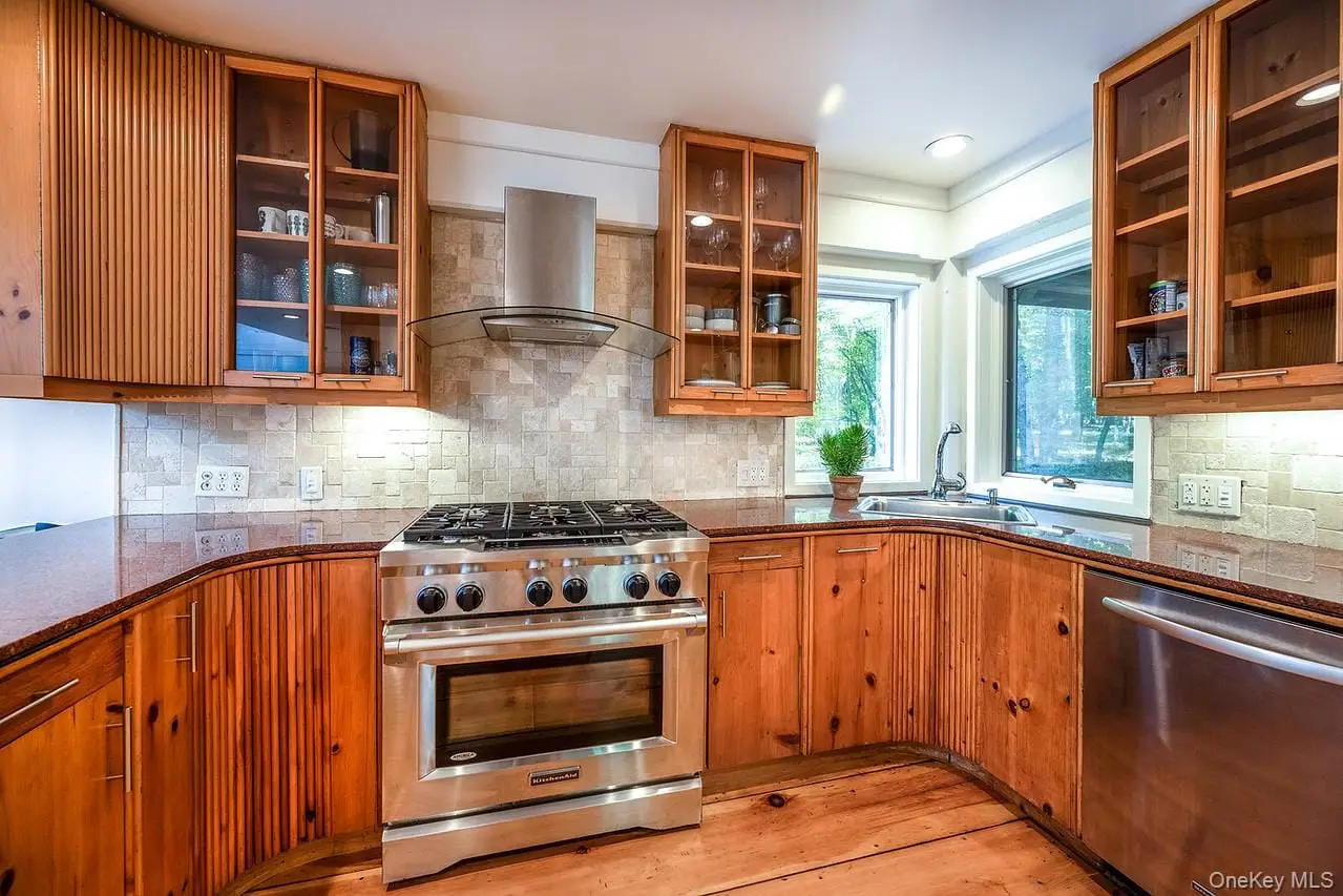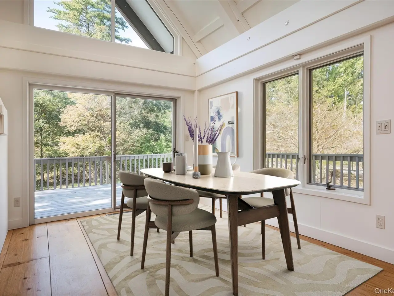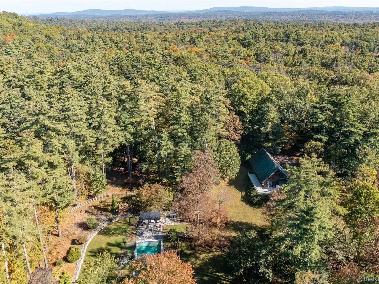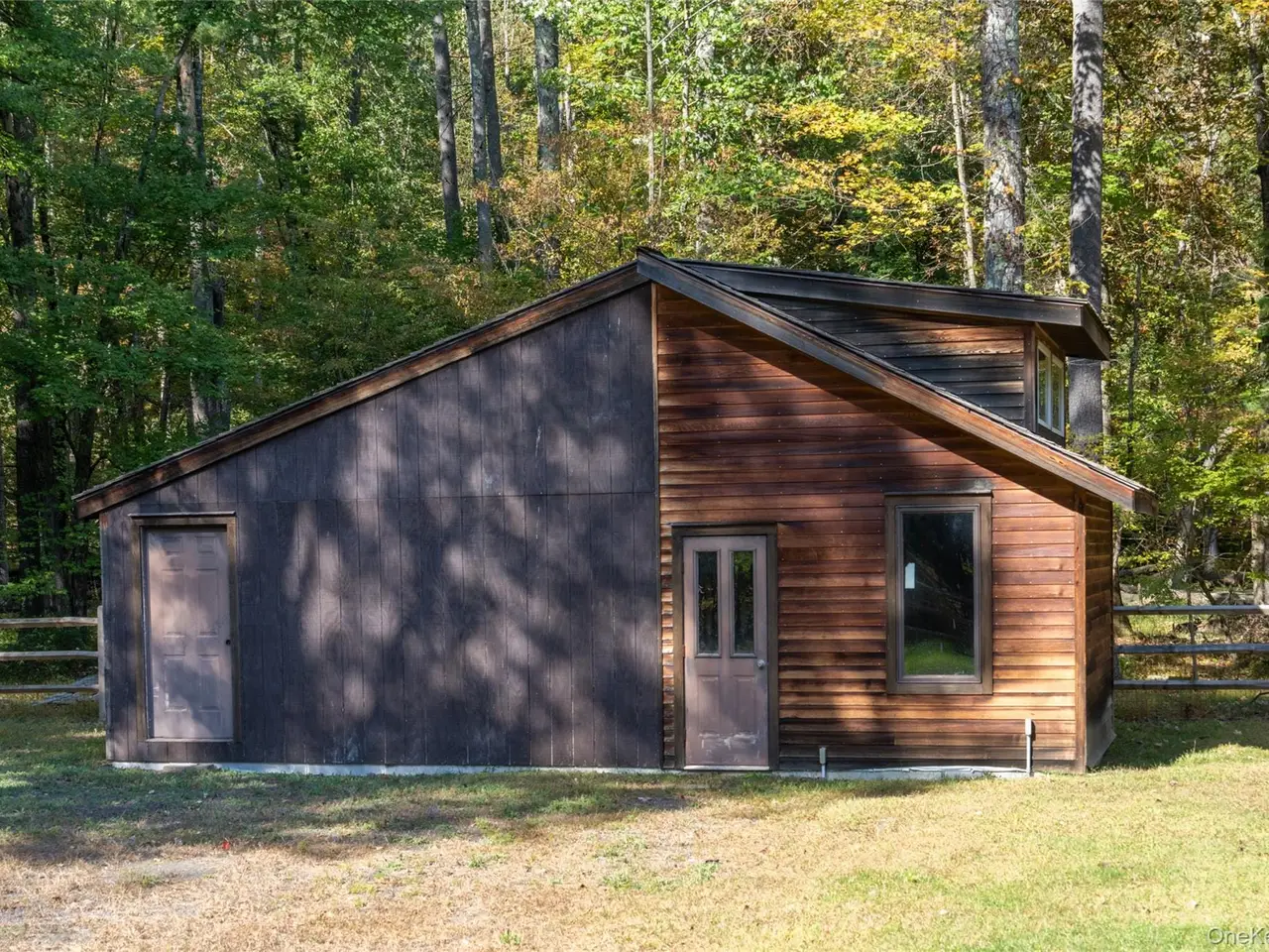Serene country escape:Discover the perfect blend of Upstate tranquility and convenient living with this exceptional property. Nestled on 6+ acres of private, lush land with half acre pond and large heated pool, this home offers an intimate connection to nature without sacrificing modern amenities. Large windows and high ceilings throughout the house flood the open-concept living spaces with natural light and provide postcard-perfect views of the scenic surroundings. Enjoy your morning coffee or entertain guests on the expansive deck, surrounded by dense woodlands and experience all four seasons in your own oasis, from vibrant fall foliage to peaceful winter snowfalls. Use your imagination to turn the numerous outbuildings into various ideas, art or yoga studio, mediation sanctuary or work space. Despite its secluded feel, this home is just a short drive from charming village centers of Kingston, Woodstock and Stoneridge - all with gourmet restaurants and boutique shops. This property is designed for those who value absolute privacy but desire effortless access to the Hudson Valley or Catskills' finest cultural and culinary offerings and incredible hiking trails. Its more than a home; it's a private haven that brings the best of country living to your doorstep.