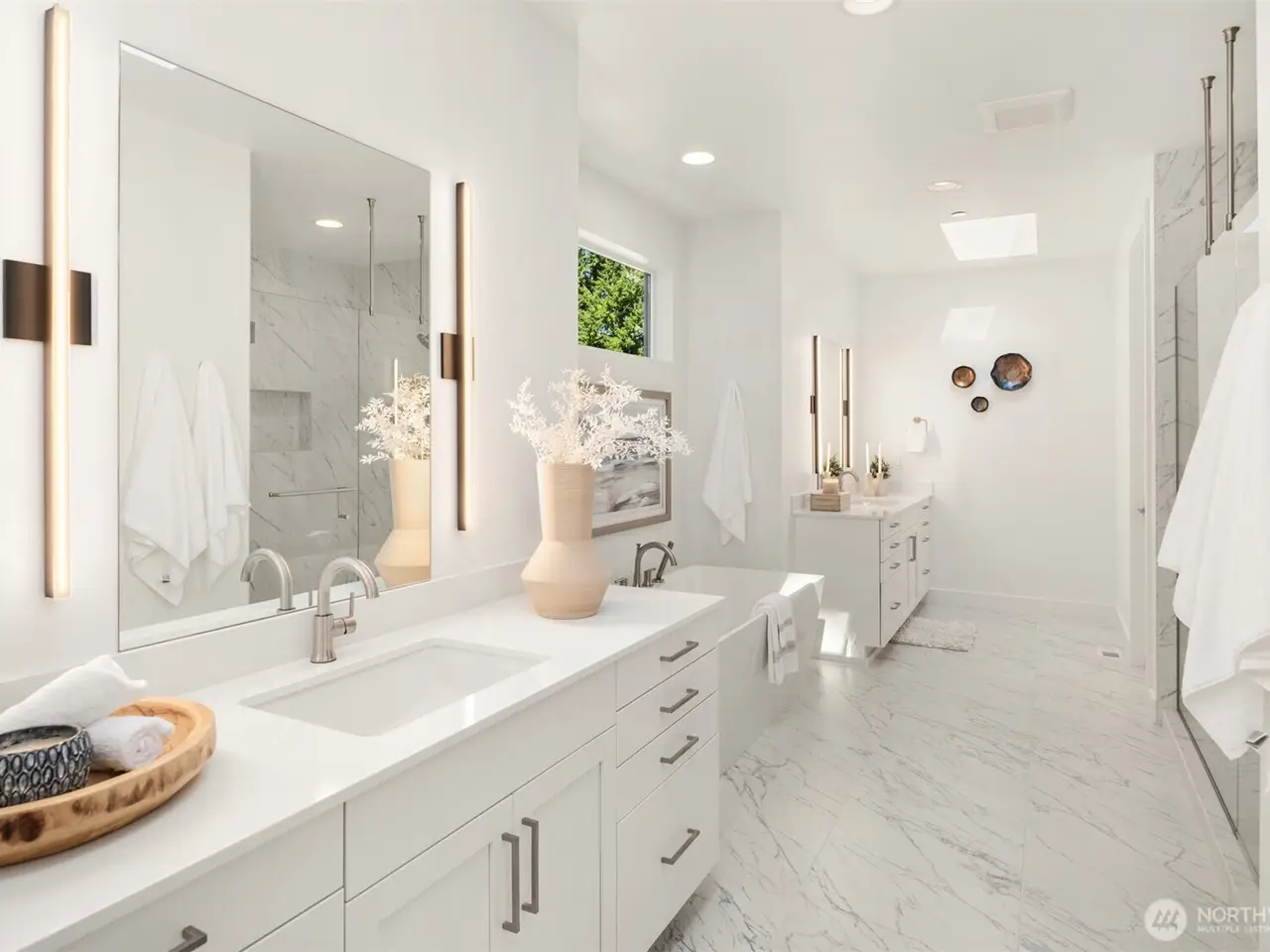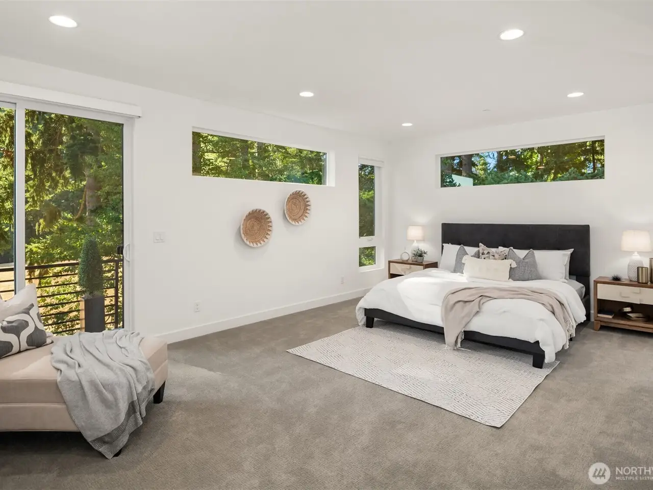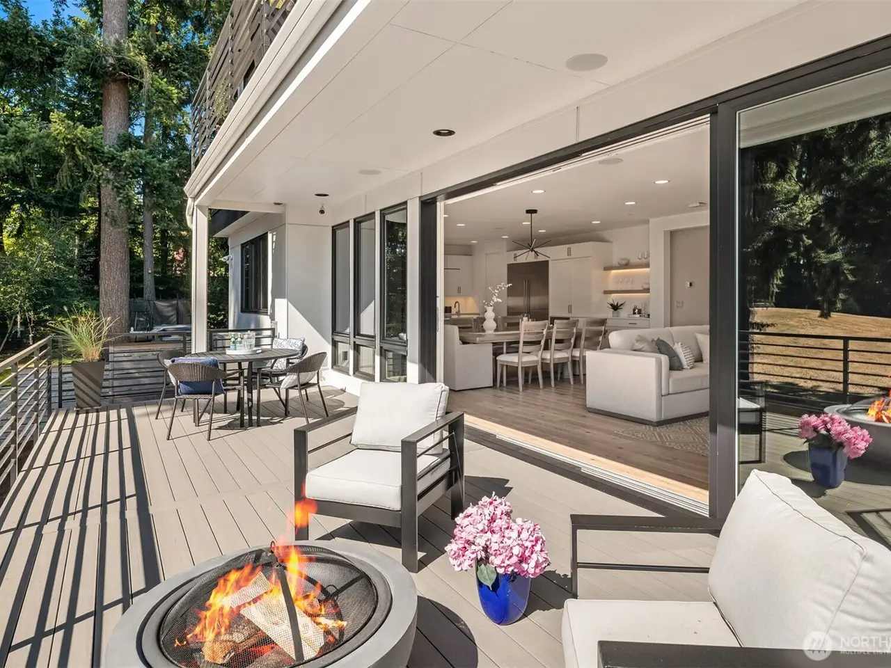 Design-forward like-new construction in desirable Highlands. Ideal cul-de-sac location overlooking expansive neighborhood park. Statement entry accentuated by dramatic two-story windows, showpiece lighting and floating staircase. Chef’s dream kitchen crafted for style and functionality with two dishwashers, premium appliances, pantry, appliance garage and built-in buffet. Great room w/sliding glass wall opens to covered deck and park views. Luxurious primary suite and spa-inspired bath with balcony, modern soaking tub, shower for two and custom closet. Spacious bonus room with deck and adjacent wet bar. Many app-controlled features from lighting to blinds, sound system and more. Enjoy serene sunsets, Kirkland’s best schools. Close to waterfront, dining, boutiques and more!