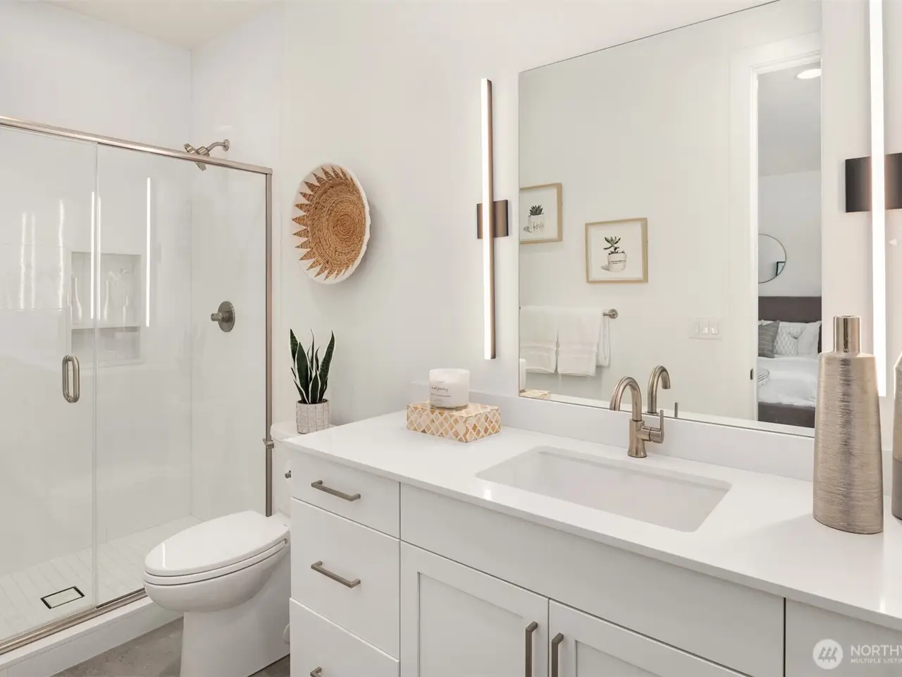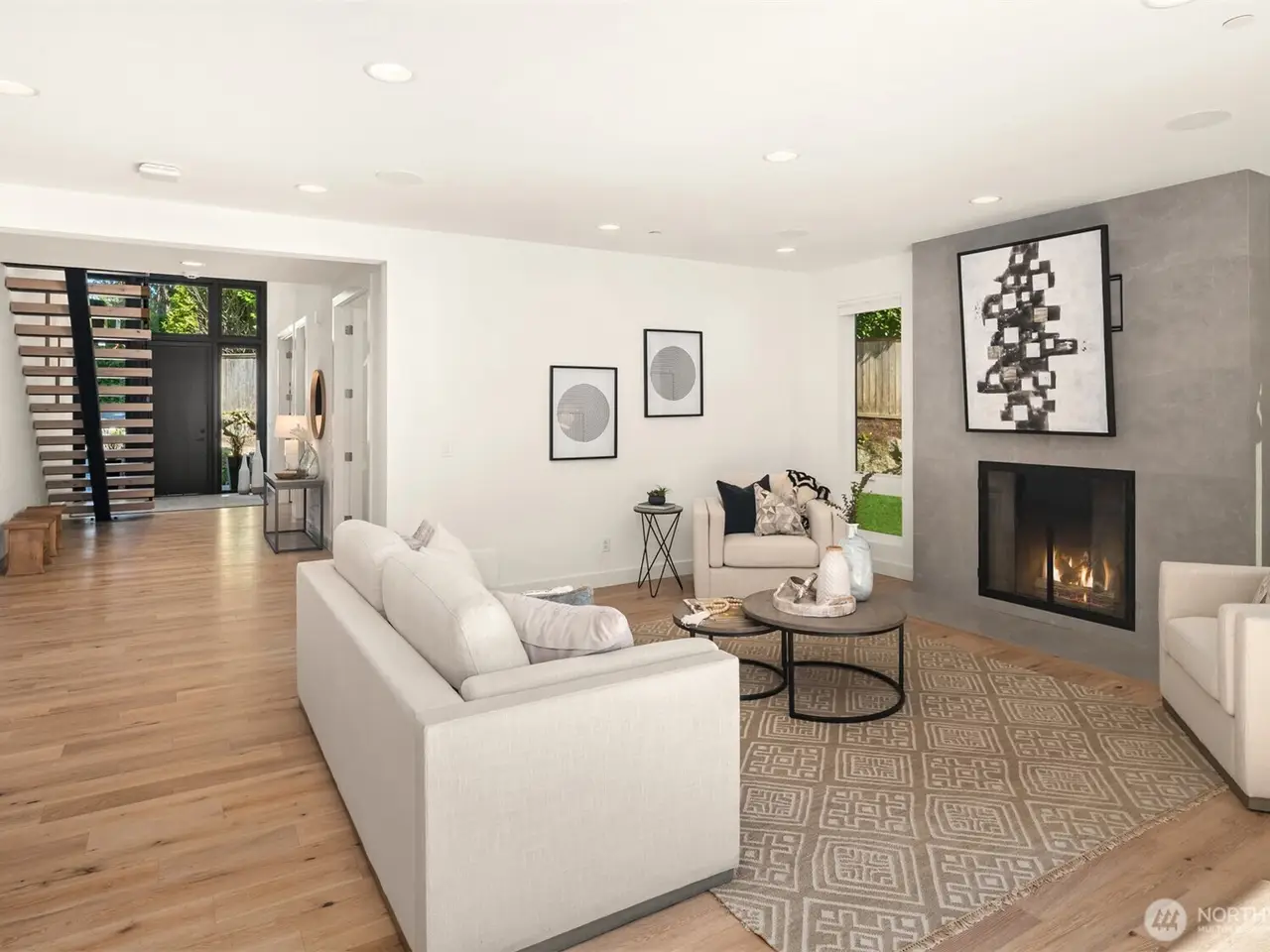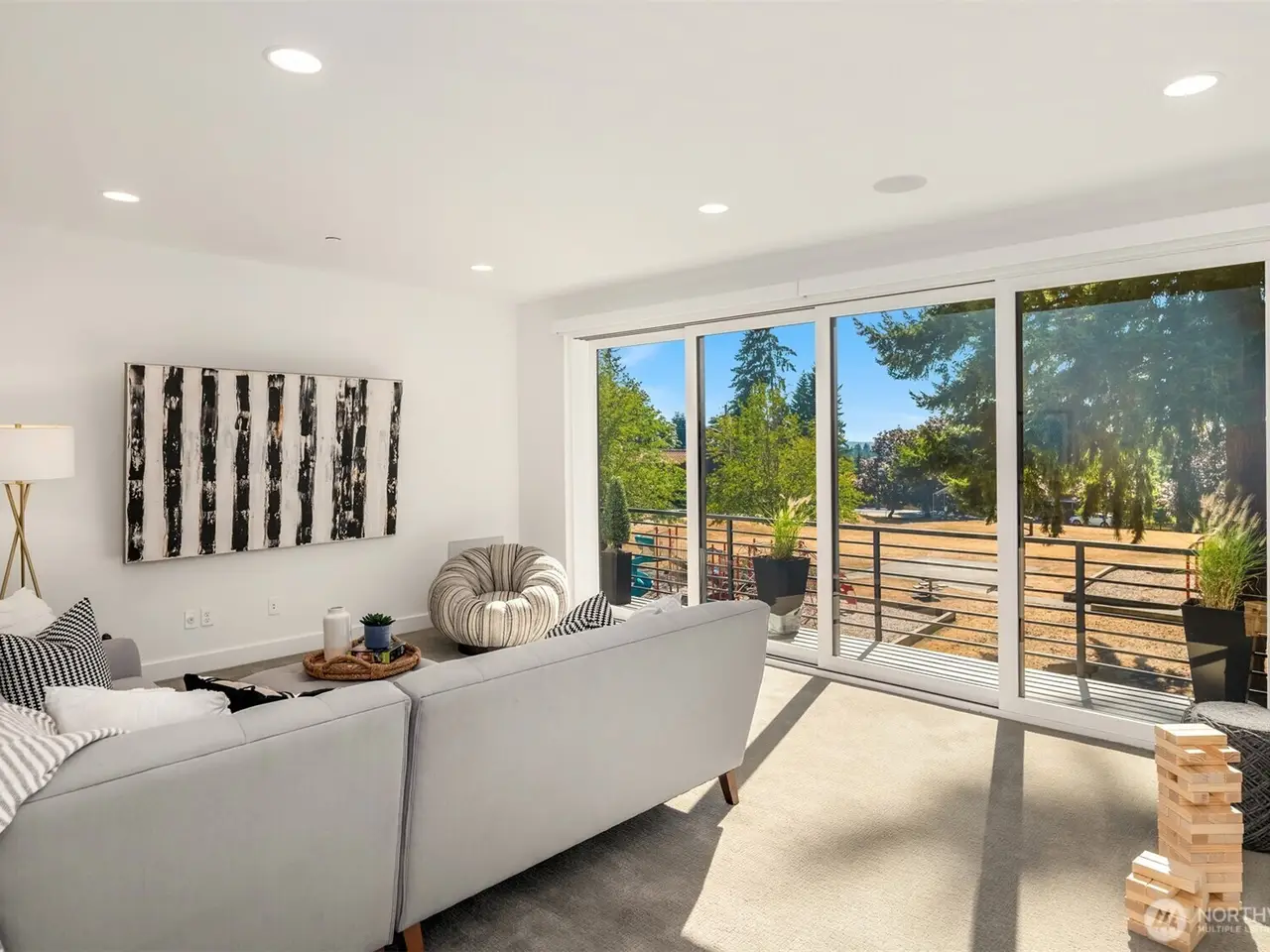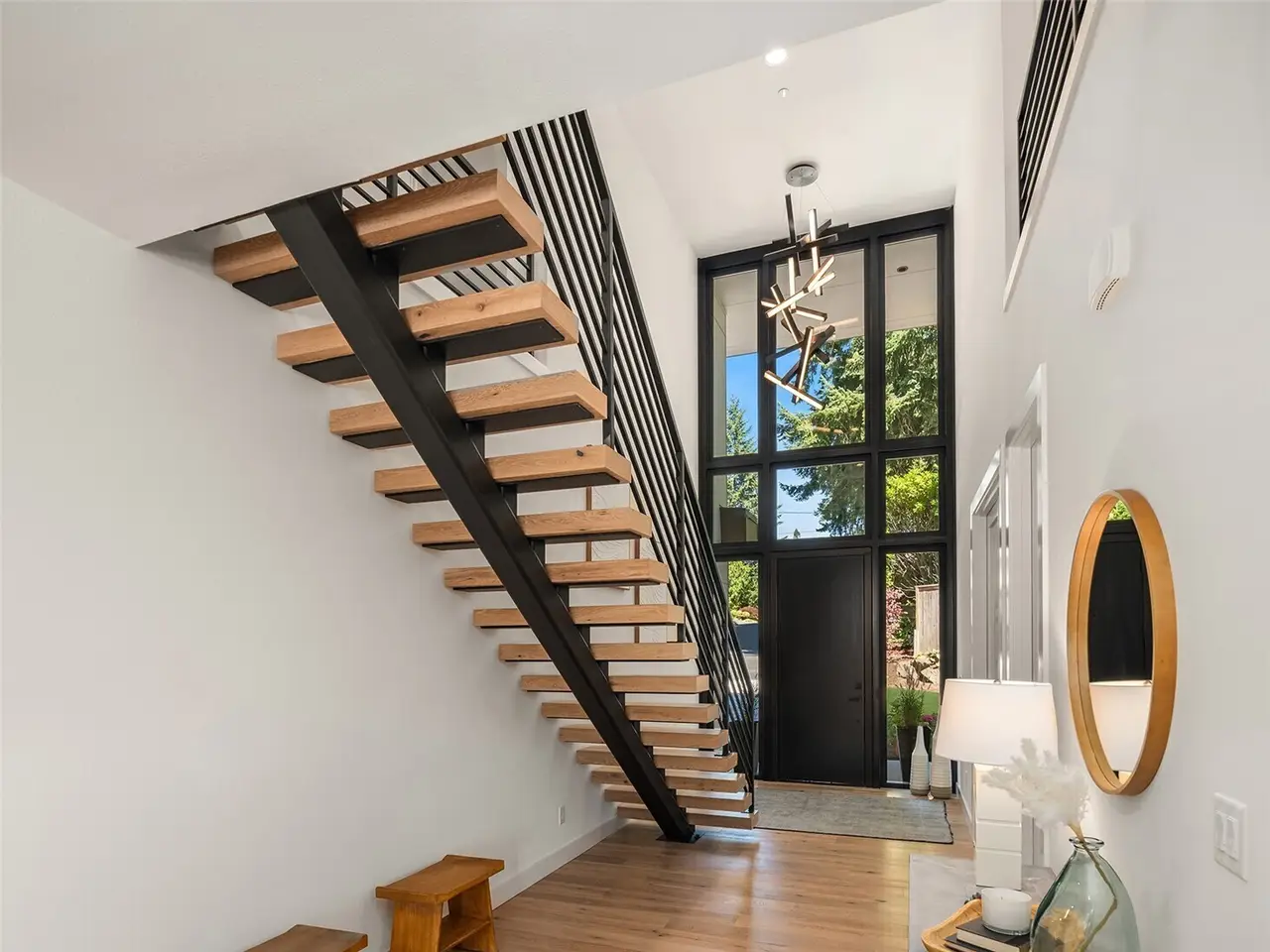 Design-forward like-new construction in desirable Highlands. Ideal cul-de-sac location overlooking expansive neighborhood park. Statement entry accentuated by dramatic two-story windows, showpiece lighting and floating staircase. Chef’s dream kitchen crafted for style and functionality with two dishwashers, premium appliances, pantry, appliance garage and built-in buffet. Great room w/sliding glass wall opens to covered deck and park views. Luxurious primary suite and spa-inspired bath with balcony, modern soaking tub, shower for two and custom closet. Spacious bonus room with deck and adjacent wet bar. Many app-controlled features from lighting to blinds, sound system and more. Enjoy serene sunsets, Kirkland’s best schools. Close to waterfront, dining, boutiques and more!