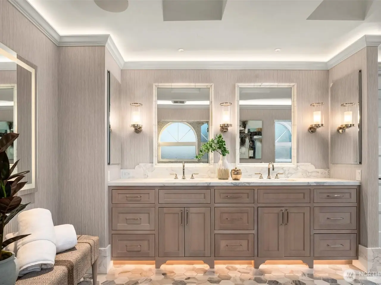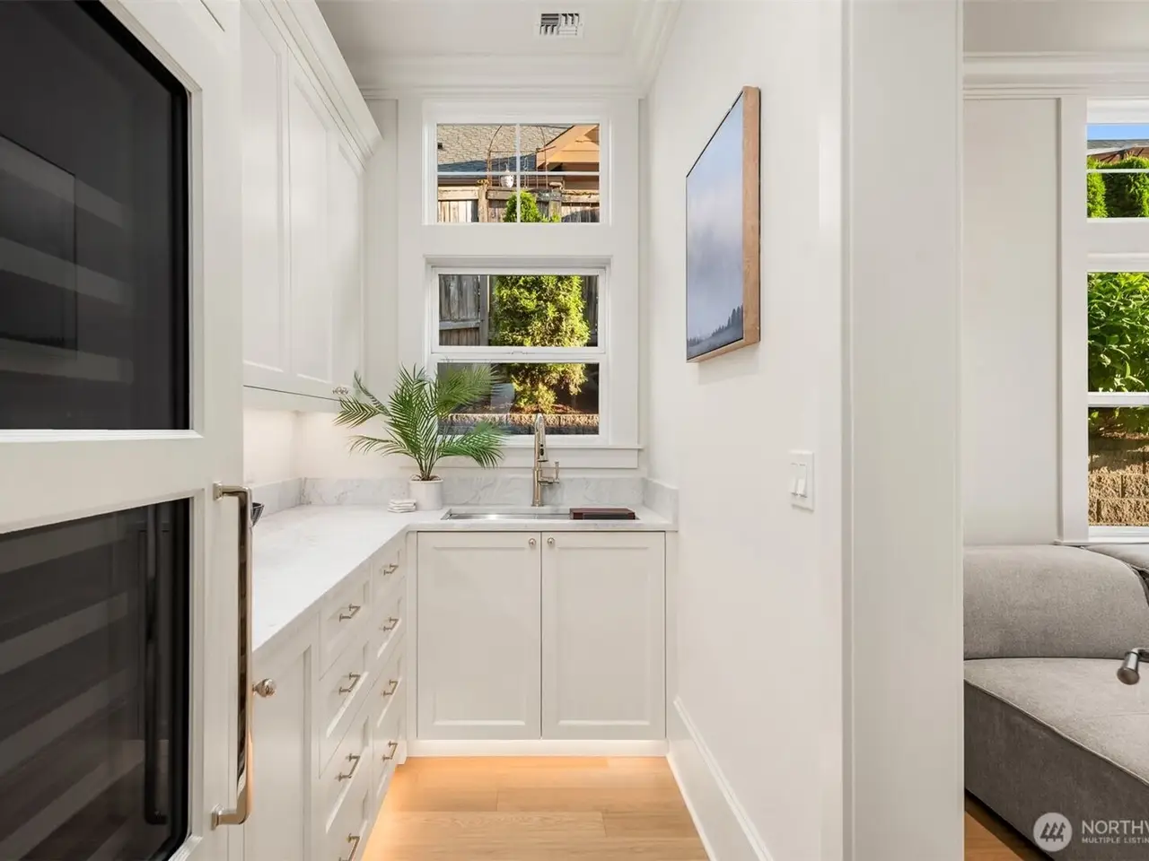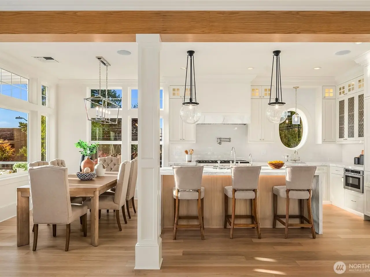 Sweeping 180° Western views of Lake Washington & the Olympic mountains set the tone for refined coastal living in this elegant fully renovated residence, just steps from the lake & blocks to downtown Kirkland. Breathtaking views from all the living area's with a spacious deck & primary suite w/ private view deck, ideal for sunsets! Lives like new w/ 5 en-suite bedrooms, plus a spacious 2-bedroom ADU apt w/ full kitchen, laundry, & private entrance—ideal for multigenerational living or rental income. Exceptional quality chef’s kitchen w/ double marble waterfall island, custom tilework, curated lighting, & an exquisite walk-in closet w/ valet. Expansive decks & seamless indoor-outdoor living complete this elevated lifestyle offering.