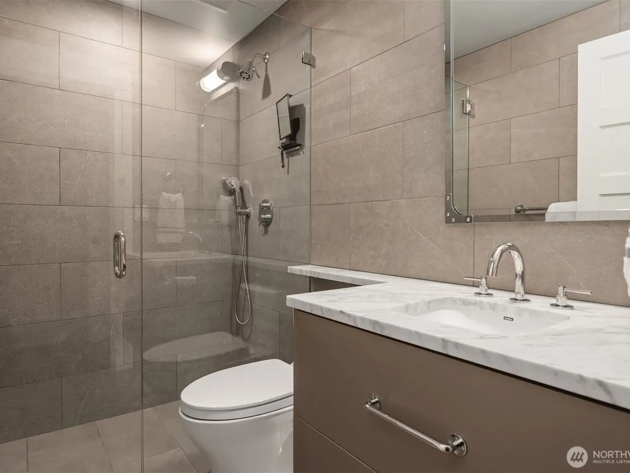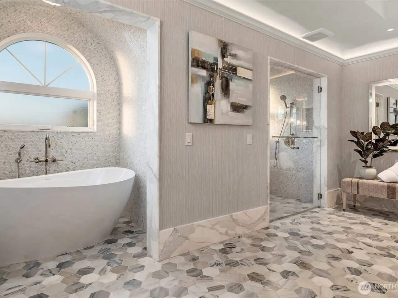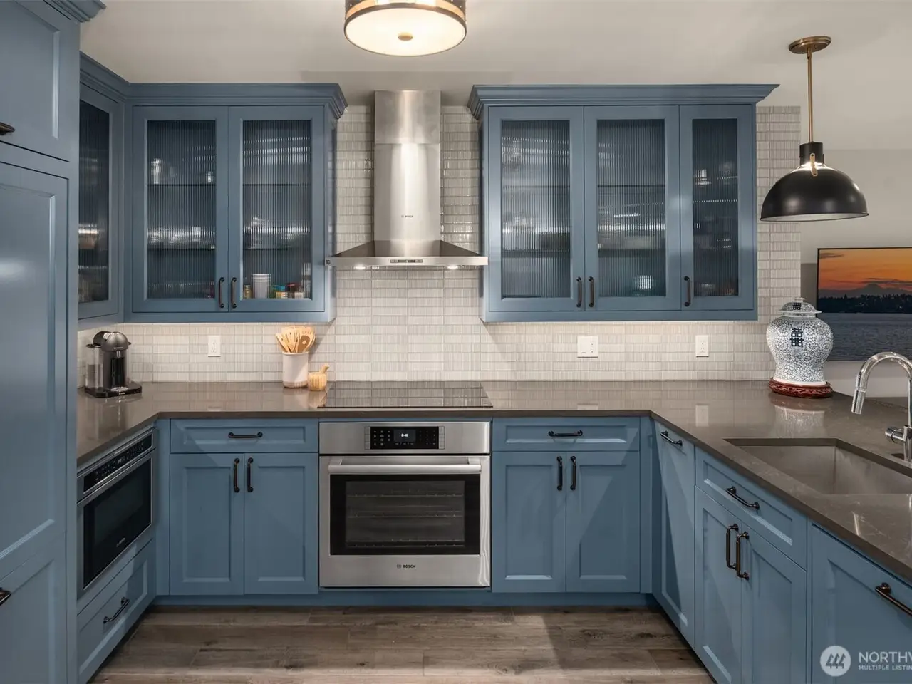 Sweeping 180° Western views of Lake Washington & the Olympic mountains set the tone for refined coastal living in this elegant fully renovated residence, just steps from the lake & blocks to downtown Kirkland. Breathtaking views from all the living area's with a spacious deck & primary suite w/ private view deck, ideal for sunsets! Lives like new w/ 5 en-suite bedrooms, plus a spacious 2-bedroom ADU apt w/ full kitchen, laundry, & private entrance—ideal for multigenerational living or rental income. Exceptional quality chef’s kitchen w/ double marble waterfall island, custom tilework, curated lighting, & an exquisite walk-in closet w/ valet. Expansive decks & seamless indoor-outdoor living complete this elevated lifestyle offering.