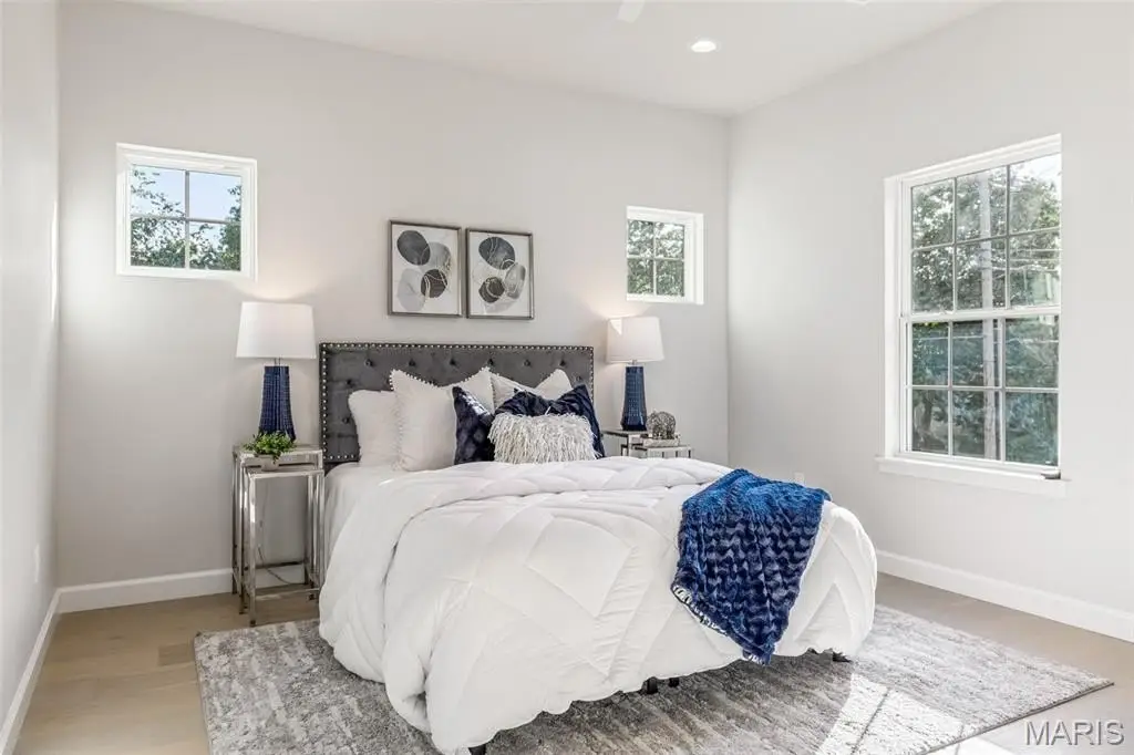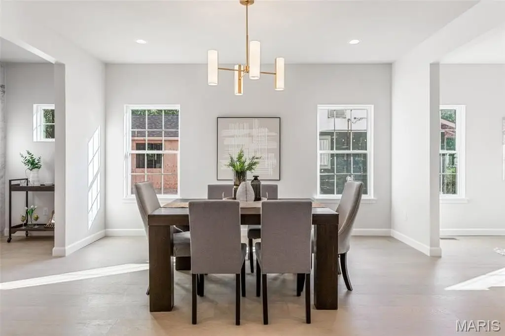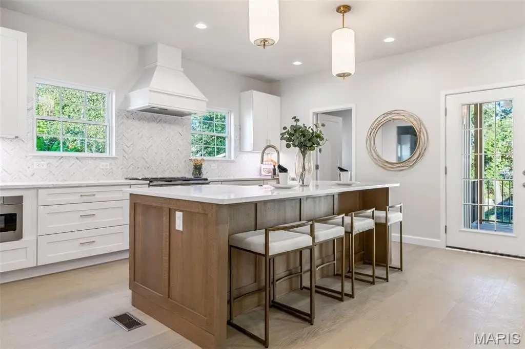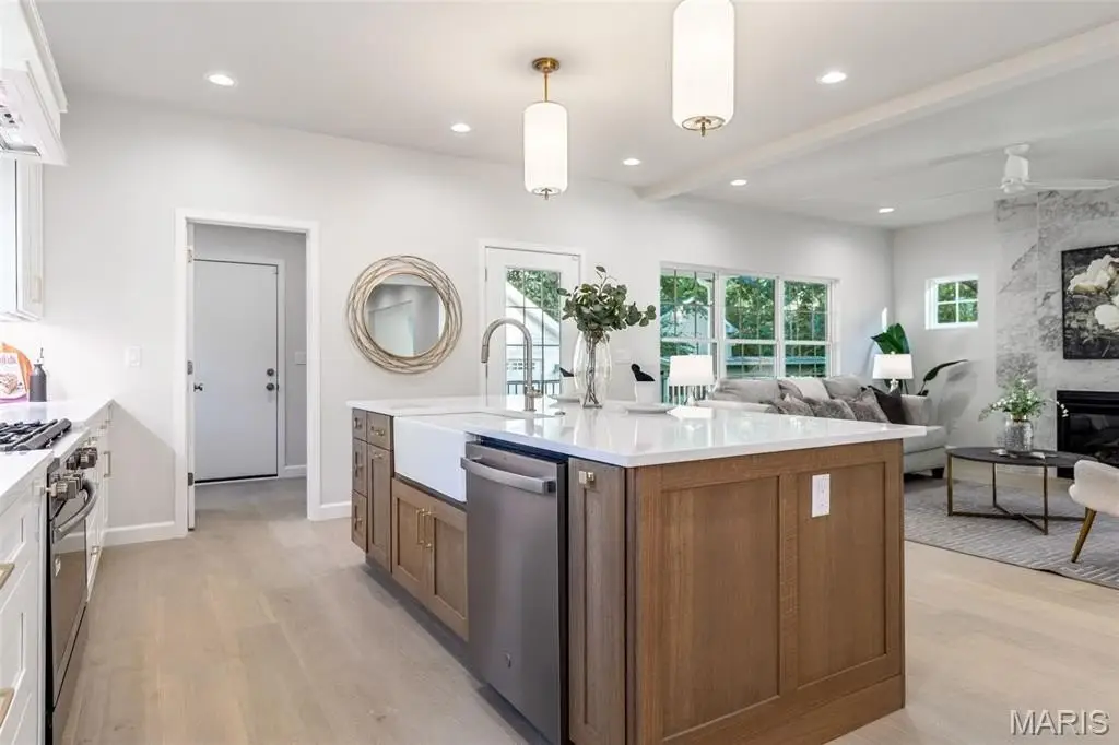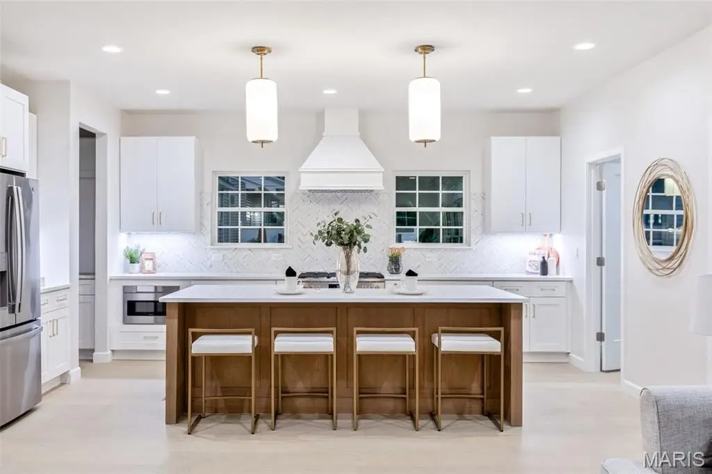 Beautifully nestled in desirable Kirkwood, this stunning five-bedroom, five-bath new built home showcases exquisite craftsmanship, light-toned wood flooring, and designer finishes. What truly sets this home apart is its perfect balance of defined living spaces and open-concept flow. The main level features an office/living space, a separate dining room, and a spacious family room with a gas fireplace. The chef's kitchen impresses with a large center island, quartz countertops, a porcelain farm sink, custom cabinetry, a six-burner gas range with a wood hood, and an expansive walk-in pantry with additional storage. A convenient mudroom sits off the back of the home, and laundry rooms are located on both the main and second floors. Upstairs, each bedroom offers a walk-in closet and direct access to a bathroom. The luxurious primary suite features a private toilet room, a soaking tub framed by dual custom vanities, and a walk in shower. Bedrooms two and three share an impressive dual-entry Jack-and-Jill bath, while bedroom four includes a private en suite. The finished lower level adds even more living space (1055 sq ft) with luxury vinyl flooring, a full bedroom and bath, and a showstopping bar area perfect for entertaining. Additional highlights include a detached two-car garage and zoned HVAC. Enjoy all the amenities and charm that living in Kirkwood has to offer.