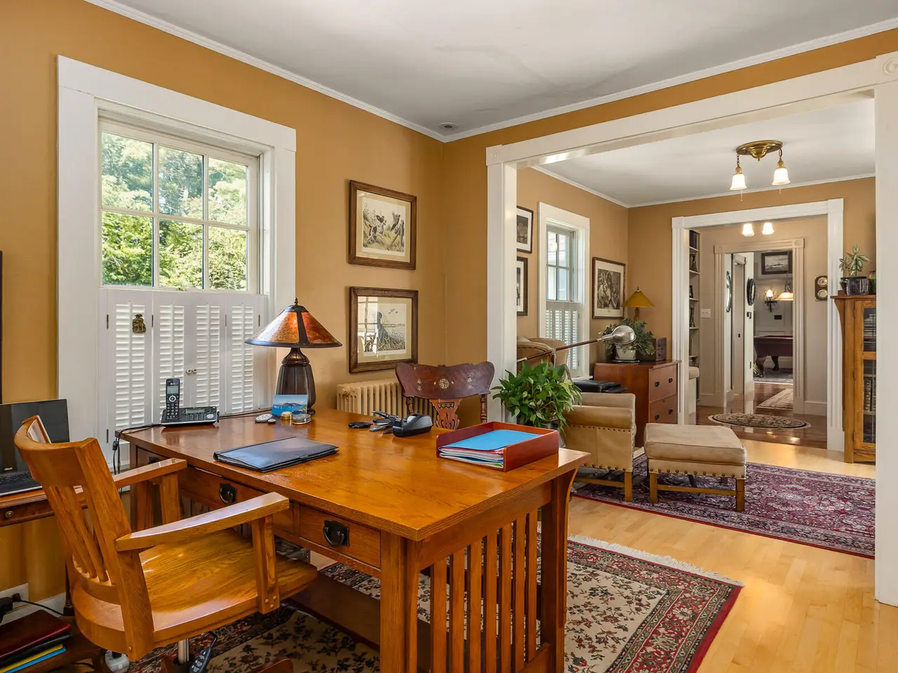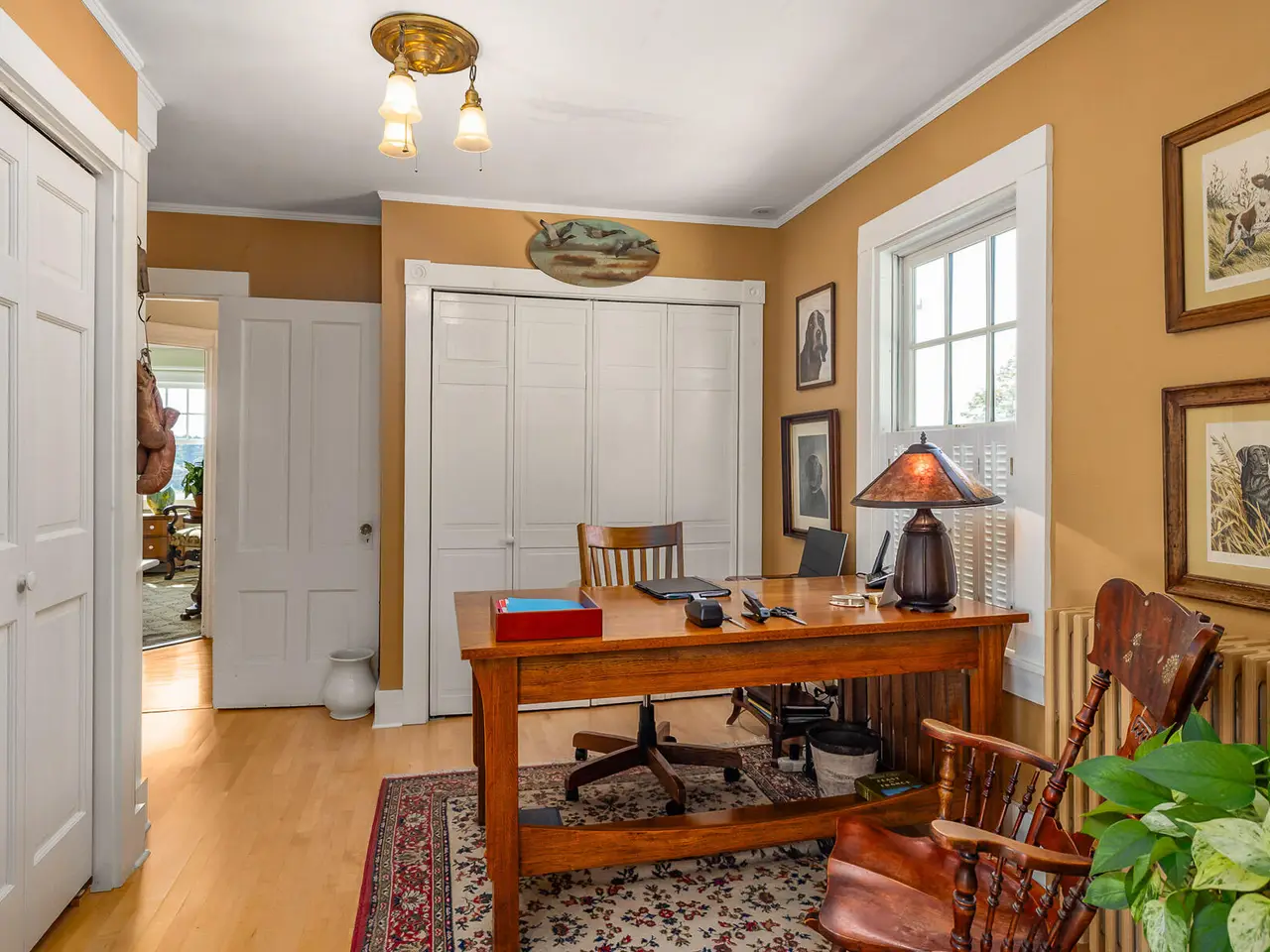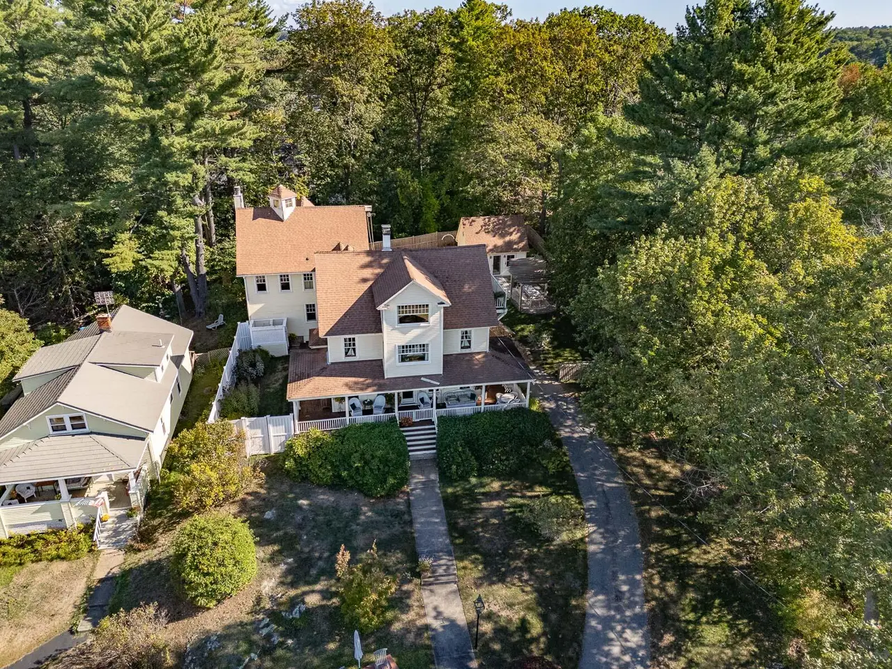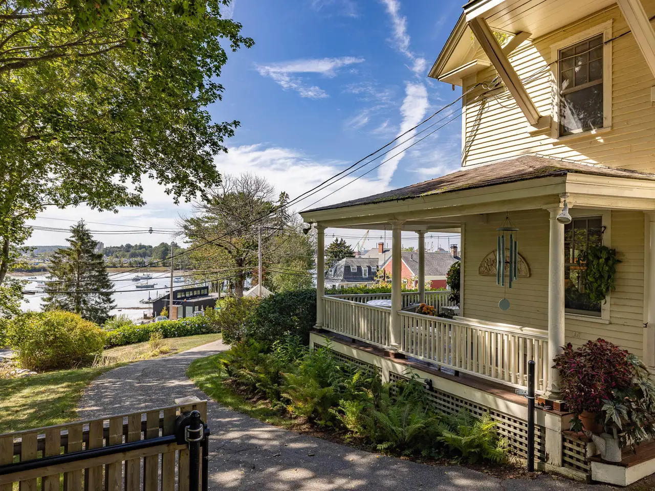 Experience tranquility and timeless charm with breathtaking water views. Perched high on a hill overlooking the serene back channel, this gracious and truly unique home invites you to experience peace and beauty like never before. Take in the picturesque views of sailboats drifting by at sunset from the stunning wraparound porch—a perfect setting for quiet reflection or lively gatherings.Designed with entertaining in mind, the classic cook's kitchen—once featured on the Portsmouth Music Hall Kitchen Tour—boasts a large island, marble countertops, custom cabinetry, a wet bar, and a cozy seating area. Host formal dinners in the elegant dining room, adjacent to the living room, where guests can enjoy the views from the front of the home.Upstairs, the second floor offers three bedrooms, a dedicated office area, and access to the expansive great room. This inviting space—ideal for playing pool, lounging, or movie nights—features soaring ceilings, a fireplace, and both front and back staircase access.Retreat to the third-floor primary suite, a true sanctuary with a sitting area and stunning vistas that will make every day feel like a getaway.Just steps from the main house with attached 2 car garage, a detached cottage with a full kitchen and loft area sits adjacent to the patio—making outdoor entertaining easy and enjoyable.Perfectly situated to capture sparkling water views, this exceptional home blends comfort, style, quality and character in an ideal location close to the Kittery Foreside, local beaches and downtown Portsmouth.