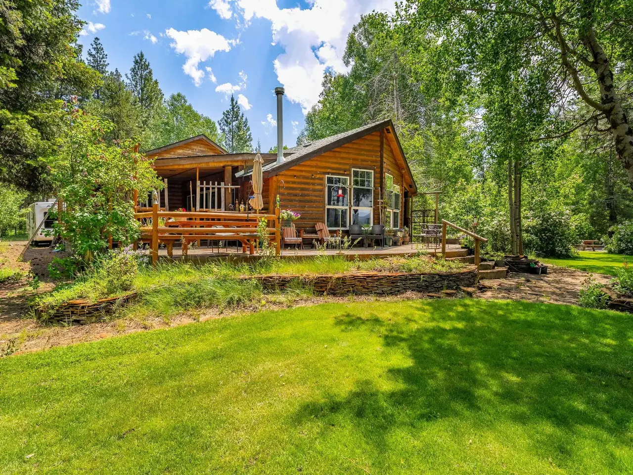 Mountain view ranch with cattle grazing in the summer and abundant wildlife year-round. This incredible 82.95-acre property features a 2,432 sq. ft. home with 3 bedrooms, 2 bathrooms, a 3-car garage, a large deck with covered porch, and stunning views of the ranch pasture and surrounding mountains. Forest service borders the property on three sides for added privacy and access to nature. Wildlife is everywhere--daily visits from 30-50 elk, Sandhill cranes in spring, summer, and fall, plus over 190 bird species recorded. Deer, coyotes, otters, wolves, weasels, mountain lions, bobcats, beavers, and bears all call this area home. Property highlights include a 24' x 30' log cabin hobby and craft room with spiral staircase to loft, a 40' x 48' barn, a seasonal pond, and a landscaped lawn with water feature and full sprinkler system powered by a 35 GPM well. A working ranch, wildlife retreat, or private mountain paradise--this property has it all!