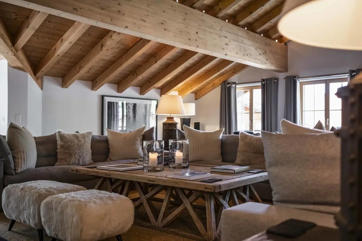 This exquisite duplex penthouse in the Alps affords a standard of comfort that exceeds even the highest expectations. With an impressive living area of over 700 square meters, you will find a living ambience full of elegance and style. Upon entering, you are welcomed into two extensive living areas, each equipped with splendid fireplaces. These will tempt you to enjoy relaxed evenings while relishing the breathtaking panoramic view of the Alps. The superior quality kitchen and the chalet chic-style fondue snug with a fireplace will inspire you to culinary heights. Five luxurious bedrooms with en-suite bathrooms provide quiet, comfortable retreats. The master area on the upper floor features a feel-good bathroom, a walk-in closet, and a private massage room. Additional amenities include a ski room, an underground garage for ten cars, a spacious lounge suitable for exclusive events, and a superb wine cellar. The property: - Approx. 700m² living area - Approx. 116m² ancillary space - 8 balconies - 10 garage parking spaces - Lift directly into the apartment