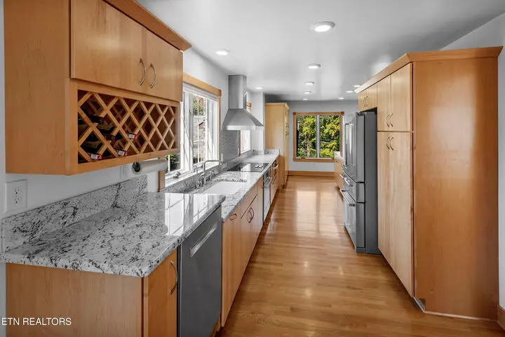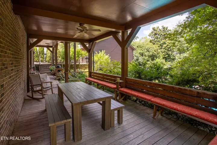 Live in one of America's Top 40 most envied neighborhoods, nestled in the heart of Knoxville - Sequoyah Hills. A welcoming home with great flow—perfect for gatherings and entertaining, where historic charm meets modern comfort. 5 bedrooms, 5.5 baths. Multigenerational living and income producing possibilities! Thoughtfully renovated in 2016—to include plumbing and wiring—this home features a long list of high-end upgrades. From the fully renovated kitchen and baths to custom built-ins and stylish finishes throughout, every detail has been carefully designed. The main-level primary suite is a true retreat, complete with two large closets and a spacious ensuite featuring a double vanity and walk-in shower. Upstairs, you'll find three more bedrooms—including one with its own full ensuite—and another that's perfect for a home office or creative space and one of two laundry areas. The lower level offers incredible flexibility with its own kitchenette, den, bedroom, two full baths, and laundry area. Whether you're hosting guests, need space for extended family, or want income potential, this setup is ready to go. Outside enjoy the private backyard—ideal for entertaining. The large deck overlooks a generous lot with a heated saltwater gunite pool, perfect for relaxing or gathering with friends and family. A detached two-car garage includes a full walkout basement, ideal for a workshop, studio, or future guest suite. This home is ready to welcome you. Come take a look—you'll fall in love!