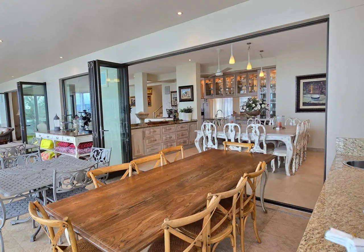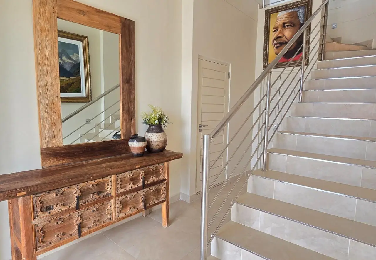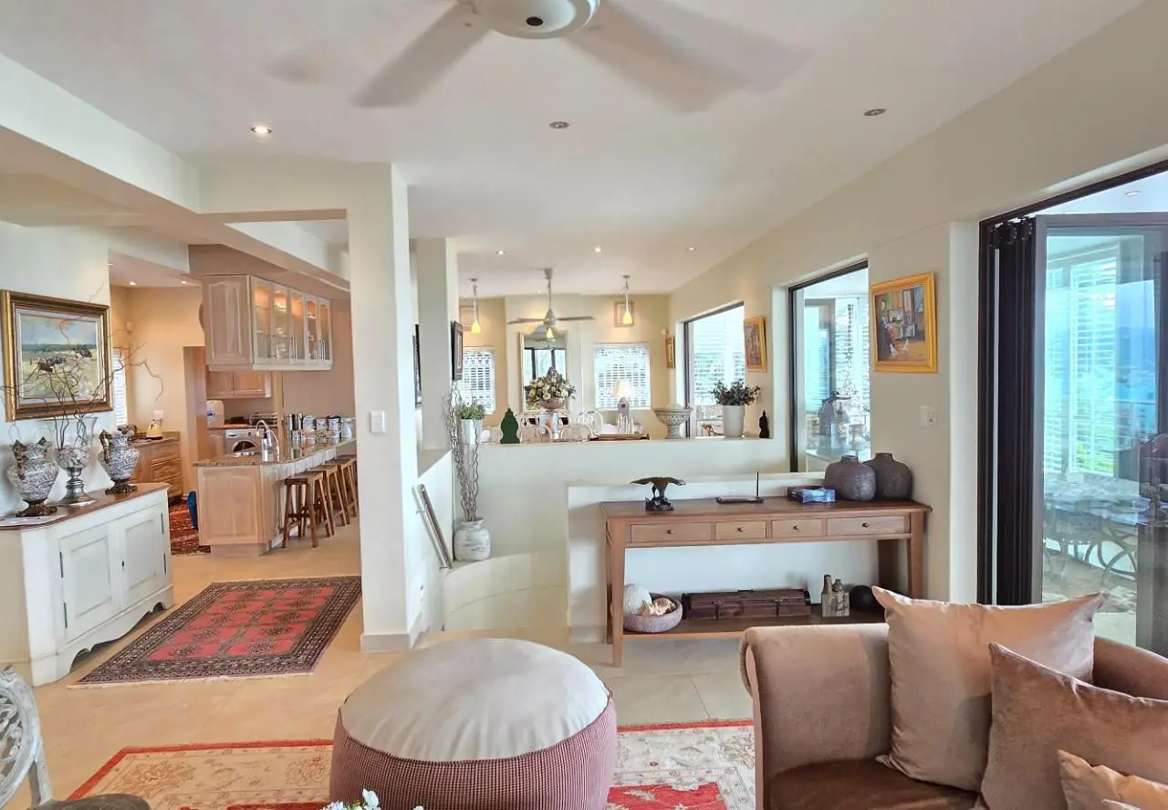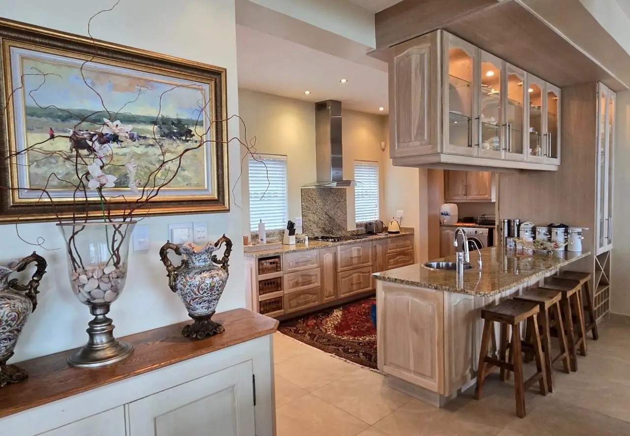 Luxurious Lagoon-Front Living: Elegant Home with Panoramic Views The property features beautifully designed bedrooms, each blending comfort with functionality to ensure a restful environment. On the ground floor, one bedroom benefits from a full en-suite bathroom, perfect for guests or family members preferring easy access. The upper level houses three more bedrooms, enhancing privacy and providing versatile living options. The master suite is particularly impressive, boasting a spacious private veranda, a large dressing room, and a luxurious en-suite bathroom. The second bedroom also features a full en-suite bathroom, while the third bedroom has access to a separate bathroom equipped with a shower. The home is designed with a flowing open-plan layout that maximizes the stunning lagoon views and creates a seamless transition between living spaces. The formal lounge, set against the backdrop of the lagoon, leads into a dining area that connects directly to a well-equipped kitchen featuring both gas and electric hobs, an eye-level oven, and a separate scullery. Adjacent to this space is a cozy TV lounge and a dedicated study, providing ample room for relaxation and work. A double garage with direct access into the house adds convenience and security. This property is not just a house but a blend of luxury, comfort, and stunning views, making it a must-see for those seeking an exceptional home in Knysna. Call today to schedule a viewing and experience the splendor first-hand! This home comes with the option of being Furnished.