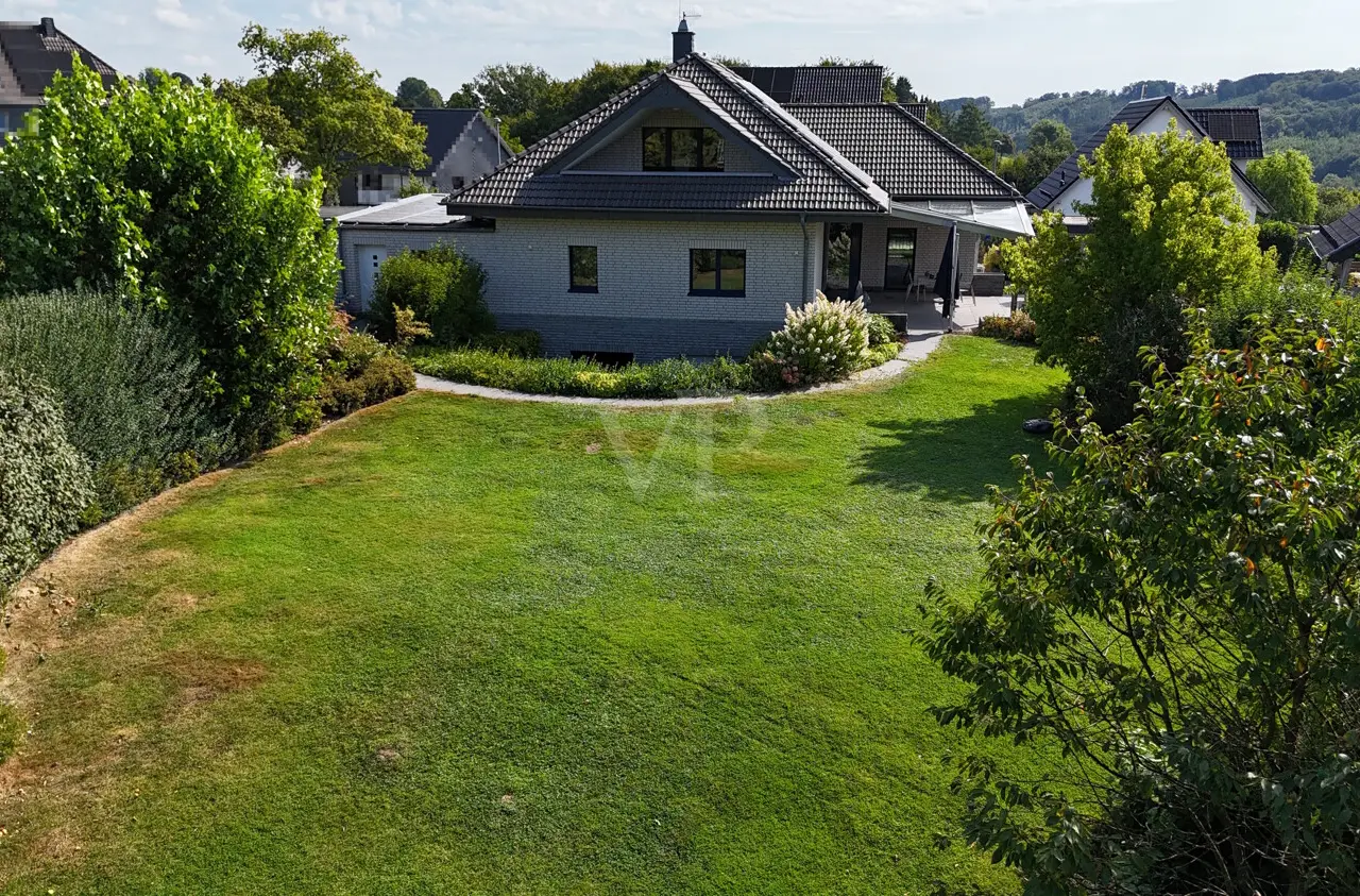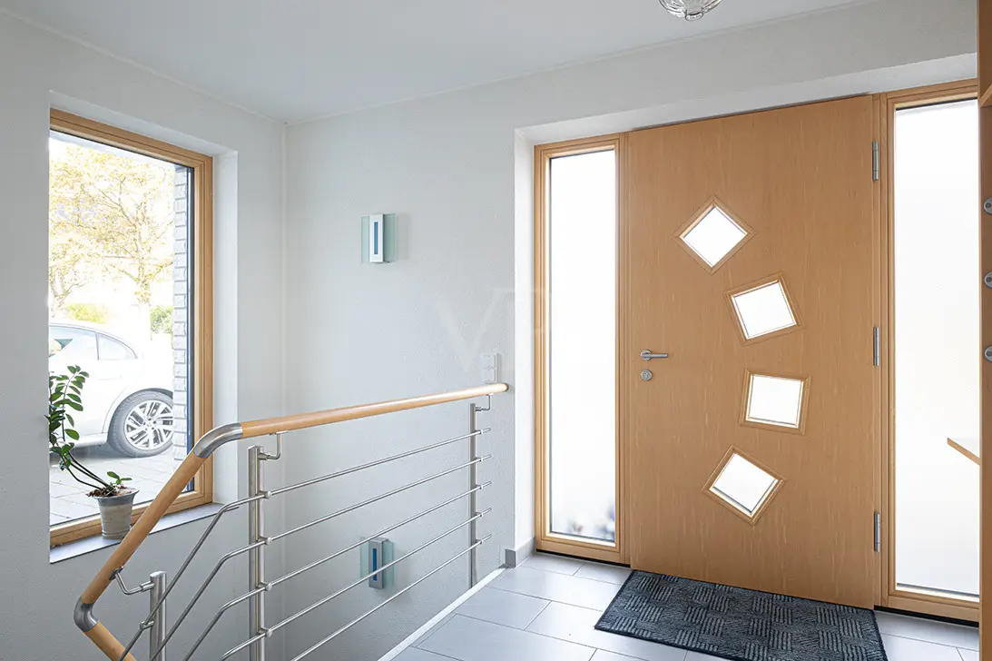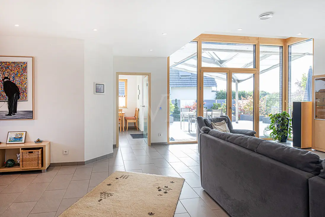 This extremely well-maintained detached house, built in 2008, presents itself as a modern and functional home for families or couples who value comfort and sustainable technologies. With its 4 bedrooms and 2 bathrooms, it offers sufficient space and flexibility for different living requirements. Thanks to the well thought-out room layout, it is possible to change the floor plan to suit individual requirements. The large, west-facing garden was covered with a root foil during construction, which efficiently protects the green areas and minimizes maintenance requirements. In 2014, the terrace area was fitted with a covered glass and stainless steel construction and sun protection. A highlight of the property is the heating system, consisting of a combination of a pellet heating system and an environmentally friendly pellet stove. The installed photovoltaic system - together with three solar panels - significantly increases the energy efficiency of the house and reduces energy costs in the long term. Fully automatic roller shutters and external blinds, which can be controlled effortlessly, provide additional comfort. The integrated KNX bus system enables intelligent home control and the associated convenience and security benefits. A central vacuum cleaner system facilitates the cleaning process and contributes to a clean and pleasant living environment. The existing air conditioning units ensure rooms are kept at the optimum temperature. The spacious, heated garage not only offers space for several vehicles, but also direct access to the house, garden and basement. The property combines modern technologies with a high level of living comfort and efficiency and is ideal for buyers looking for a sustainable yet functional home. With this property, you can expect a well thought-out living concept that impresses with its features and flexibility.