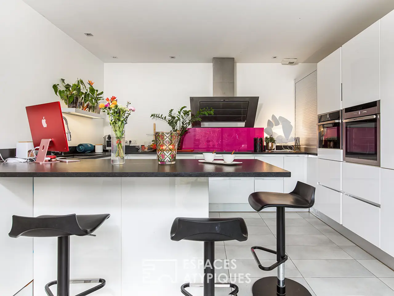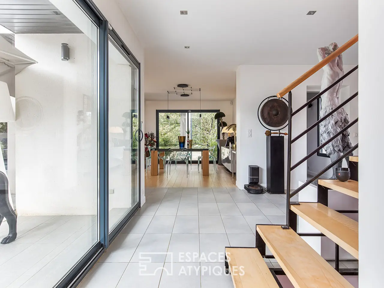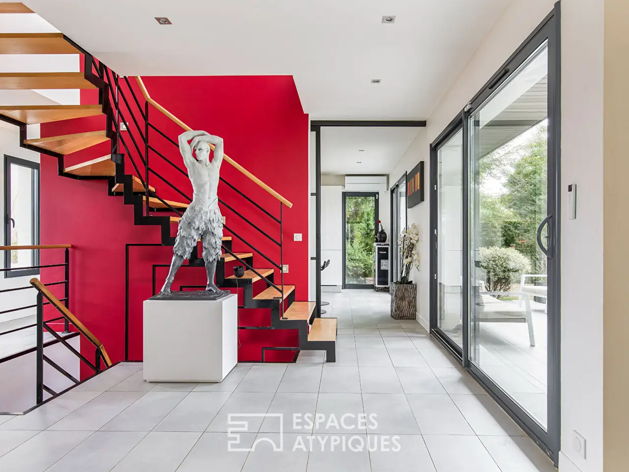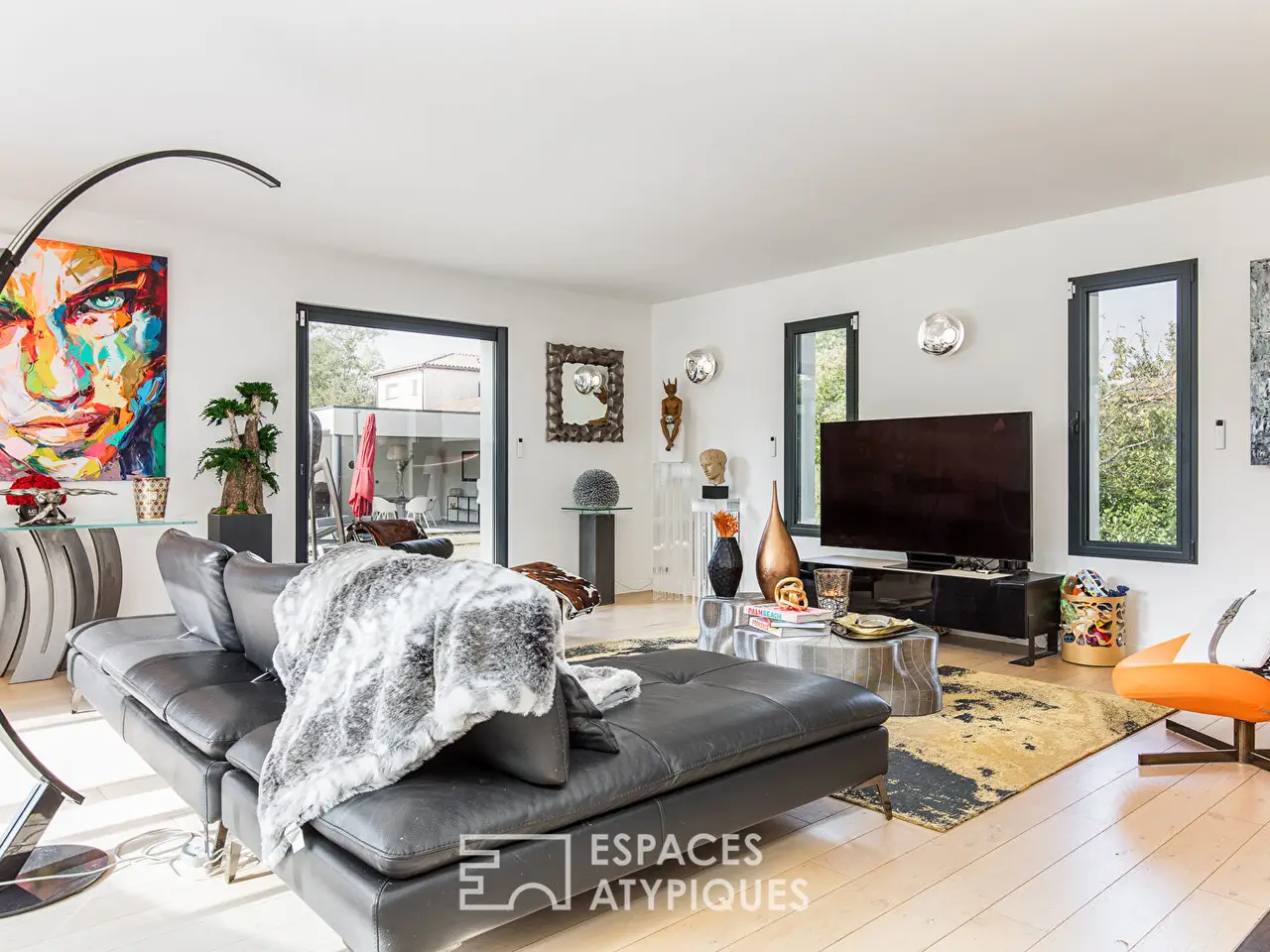 Maison contemporaine a l'Isle-jourdain Located in the town of Isle Jourdain, this contemporary house of 300sqm, spread over three levels, is the perfect illustration of contemporary architecture that is both aesthetic and functional. From the entrance, the lines of the winding staircase are highlighted by the brightness of the ground floor. The living room, the dining room, and the open kitchen are intelligently turned towards the outside thanks to large bay windows. This level also accommodates a spacious bedroom with its private bathroom. The upper floor opens onto an office space dominated by a glass roof. The sleeping area leads to the two bedrooms, each with its own bathroom and access to the terrace with a clear view of the landscaped garden. The master bedroom, equipped with a bathroom with a private dressing room, completes this level. The lower floor, fully furnished, leads to the laundry area and garage and can accommodate a relaxation area (games room, cinema room, music room) as well as a place dedicated to professional activity. The 3000sqm garden and its heated swimming pool offer the space necessary to make this house a place to live where modern comfort is combined both outside and inside. Energy class: B / Climate class: C Estimated average amount of annual energy expenditure for standard use, established based on energy prices for the year 2021: between EUR1,833 and EUR2,100 Information on the risks to which this property is exposed are available on the Georisks website http://www.georisks.gouv.fr REF. 936ET Additional information * 5 rooms * 4 bedrooms * 4 bathrooms * 1 floor in the building * Outdoor space : 3000 SQM * Property tax : 3 907 €