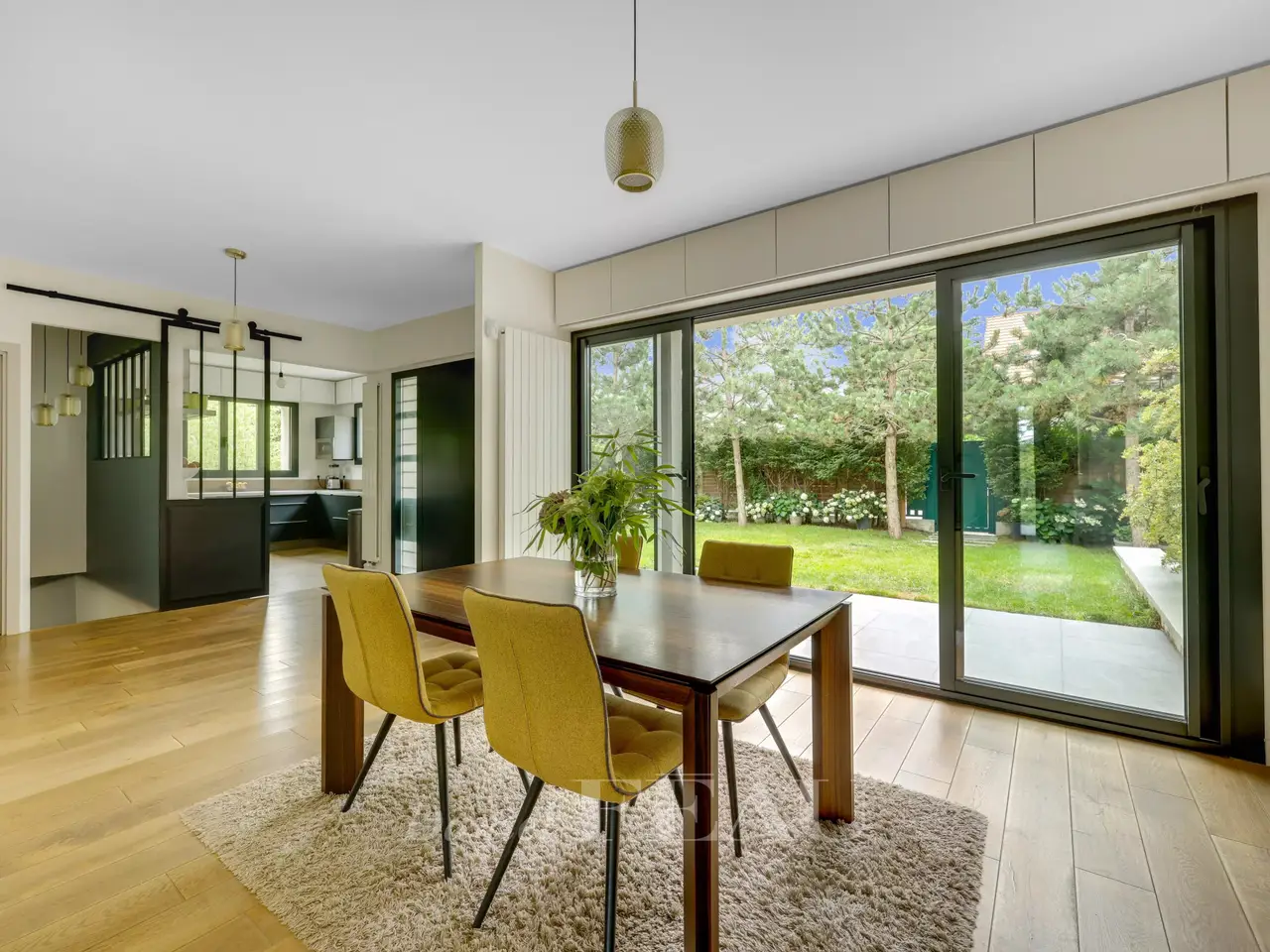 In the heart of a residential area, on a plot of 758 m², architect house of 236 m² dating from 1956 completely renovated. On the ground floor double reception opening onto terrace and garden, semi-open fitted kitchen. A master suite, two bedrooms, a bathroom, separate toilet. On the garden level, a beautiful 33 m² space opening onto the outside, a bedroom, two offices (or bedrooms of 18 and 15 m²), bathroom, separate toilet as well as a laundry room, sauna and boiler room. Insulation from inside and outside, recent condensing boiler resulting in an excellent DPE (B).