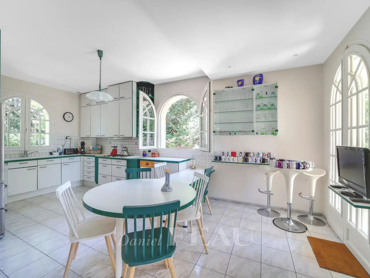 This property offering 480 sqm of floor space and about 300 sqm of living space bathed in sunshine is set in an over 1000 sqm plot in the sought-after Gressets neighbourhood. An entrance hall leads to a near 75 sqm south-east facing living/reception room with a stone fireplace, a separate kitchen with a dining area, a study or possible bedroom, a storage room, a guest wc, and a utility room. Several terraces and the garden enjoy open views. The upper floor comprises a bedroom with a bathroom, a spacious master suite with a terrace, a dressing room, a bathroom, a shower room and a wc, three further bedrooms (two with shower rooms), a bathroom and a separate wc. With a convertible attic. The basement comprises a recreation room, a shower room, a wc, a boiler room, two storage rooms, a wine cellar and a former photo lab. With an 8-car garage and outdoor parking space. In a peaceful environment in the immediate vicinity of Marly State Forest, 400 metres from the station, and a convenient distance from the schools.