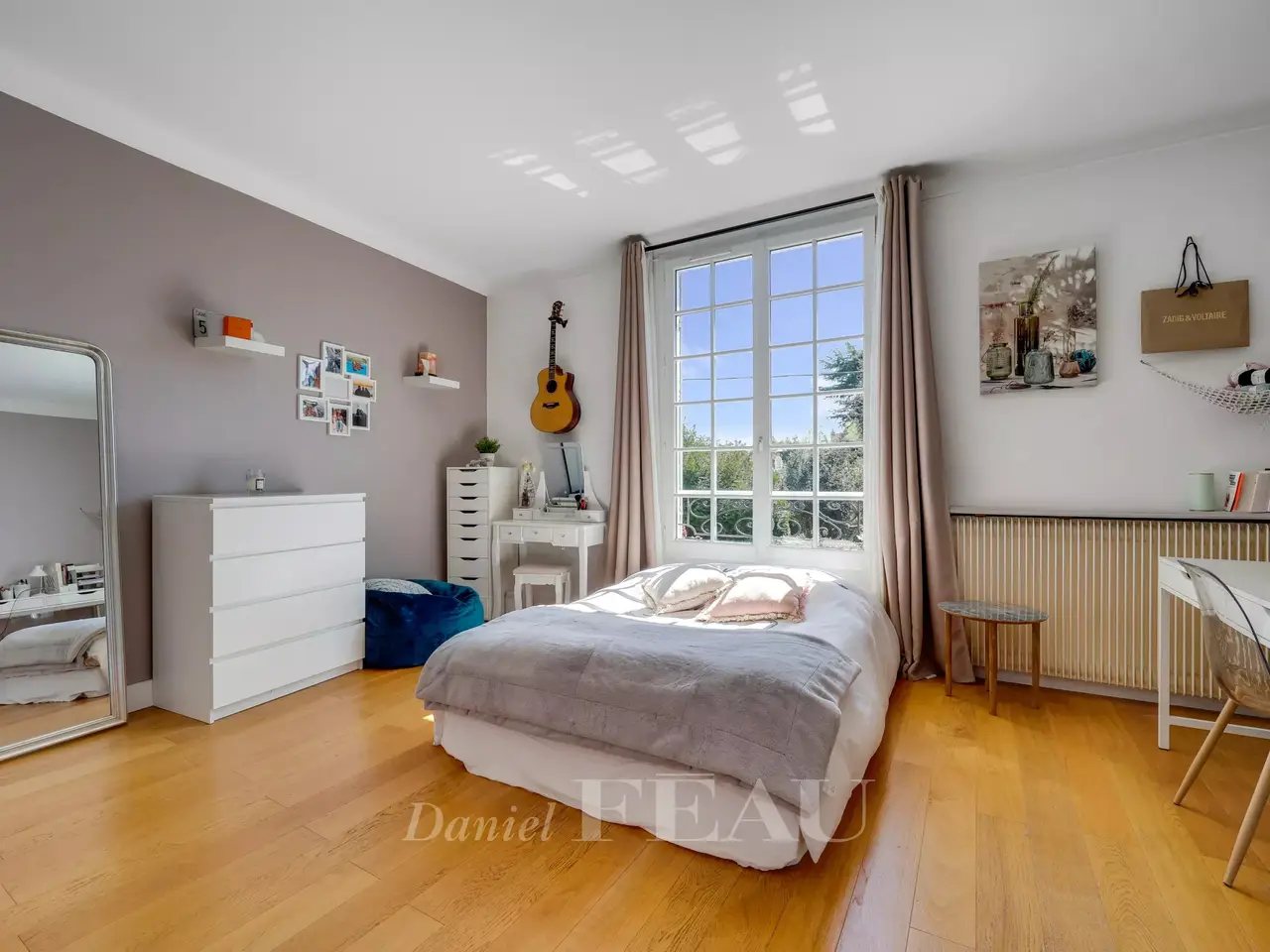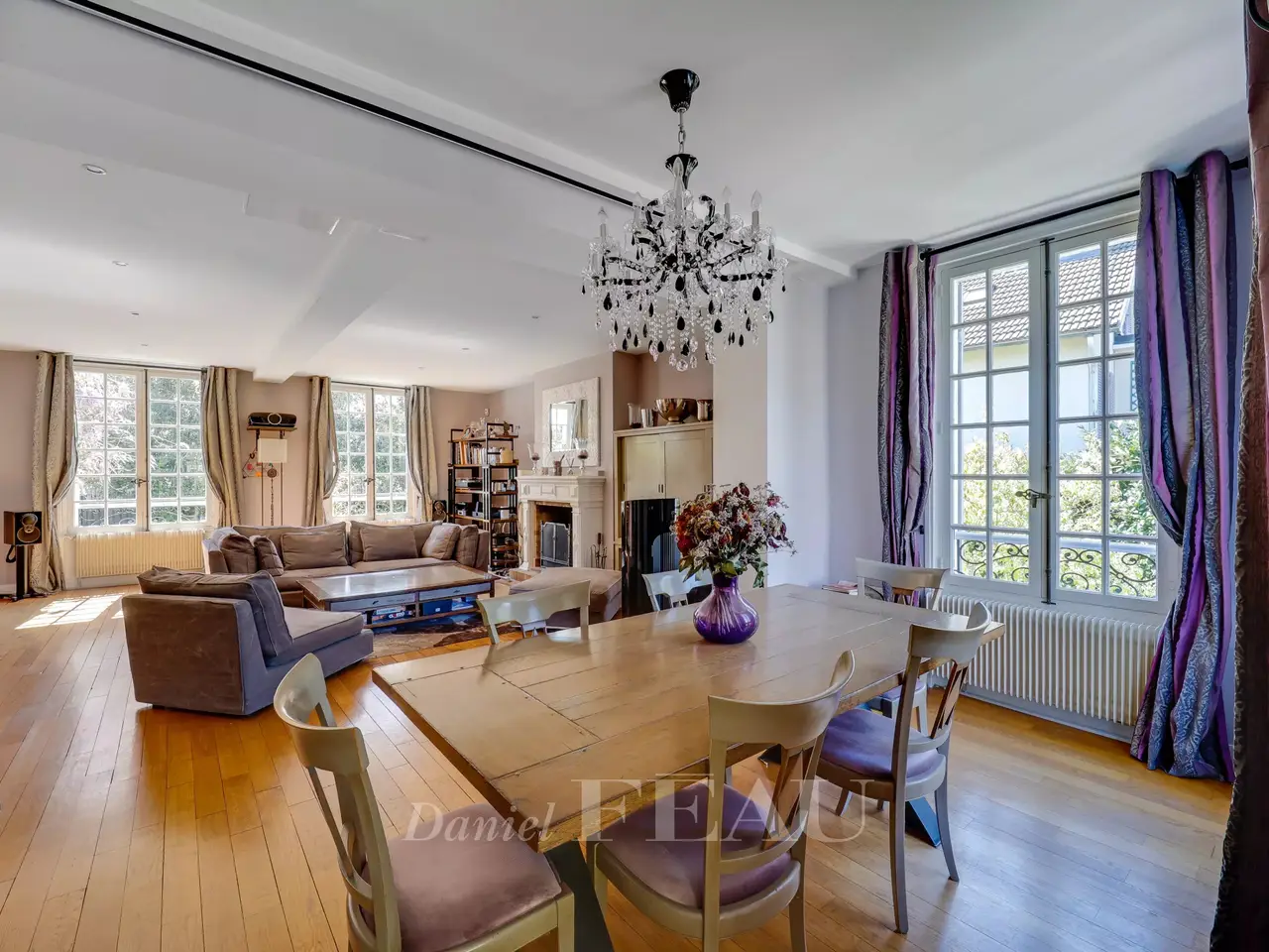 This delightful early 20th century property bathed in sunshine is hidden from view in a peaceful over 1000 sqm landscaped garden with a heated swimming pool, an elegant gazebo and a conservatory. In very good condition, it offers 300 sqm of floor space and 227 sqm of living space including a vestibule with a guest wc, an over 50 sqm dual-aspect living/reception room featuring parquet flooring and a fireplace, an adjacent dining room, and a luxuriously equipped family kitchen accessing the terrace and garden. Upstairs are a master suite with a bath/shower room, wc and dressing room, a study with a dressing room opening onto a terrace, and a bedroom and a bath/shower room. The top floor comprises a 3rd bedroom. Ideal to welcome friends and family, the bright garden-level comprises a 4th bedroom, a recreation room or possible 5th bedroom, a shower room and a separate wc. With a utility room, an air-conditioned wine cellar (250 bottles), a garage and technical premises. In a convenient location a stone’s throw from Fausses-Reposes forest, the schools, the bus-lanes and the station.