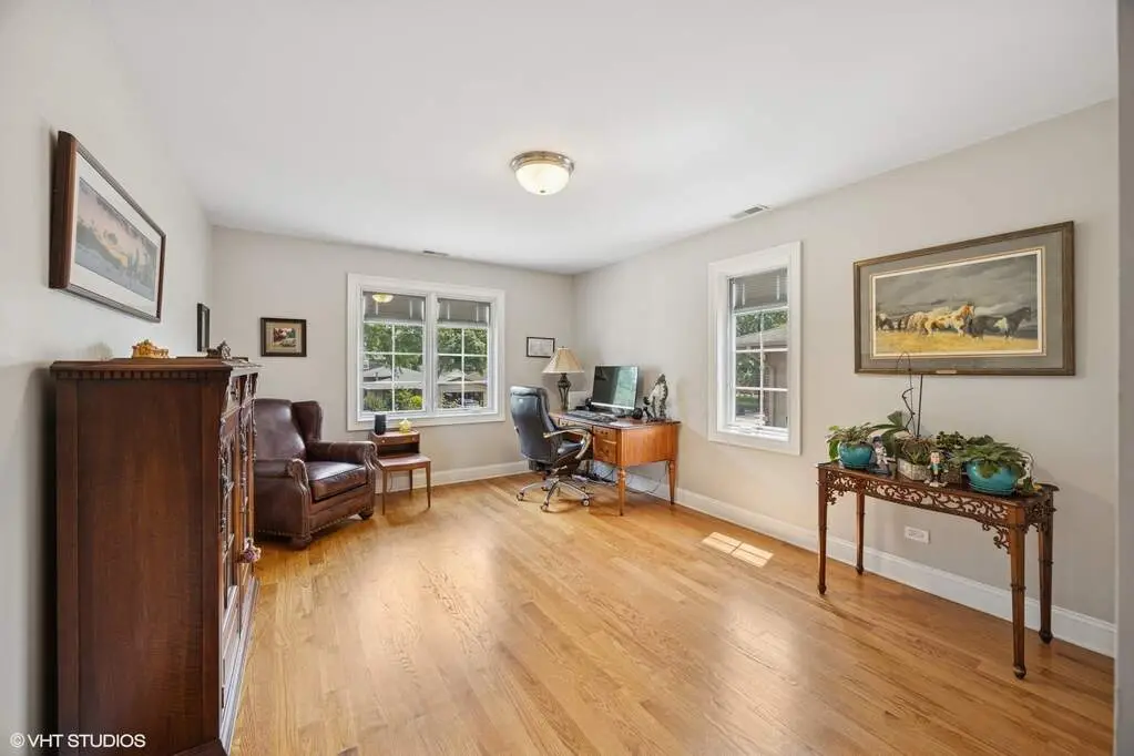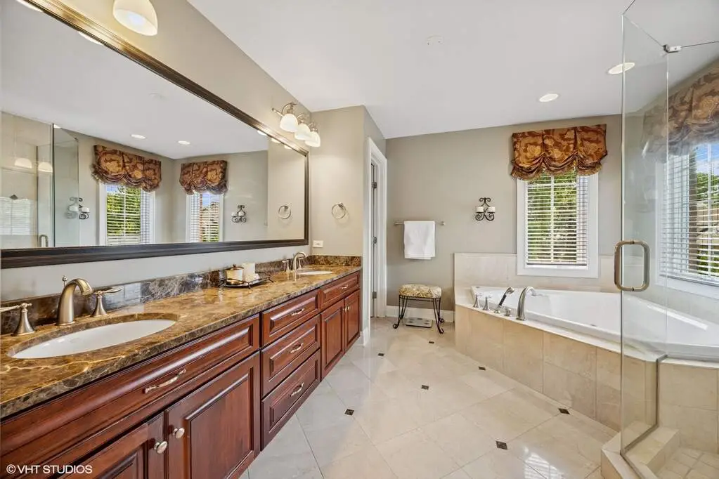 Striking all brick home built in 2004, ideally situated in the highly sought-after LaGrange Country Club area. Boasting timeless curb appeal, situated on an expansive 75-foot-wide lot and features an attached three-car garage, creating an impressive exterior presence. Impeccably maintained, enhanced by new roof and AC unit, offering peace of mind and valuable long-term benefits. Welcoming two-story foyer highlights a grand staircase and captivating views of the second-floor wraparound landing, offering architectural elegance from the moment you enter. The front living room flows seamlessly into the spacious dining room, framed by oversized doorways with distinctive transom windows that add charm. The modern kitchen, equipped with high-end appliances, a central island and casual dining area, opens to a warm family room overlooking the expansive outdoor porch-perfect for everyday living and entertaining. The first floor also includes a generously sized home office and a highly functional mudroom for convenience and organization. Upstairs, four spacious bedrooms and three full bathrooms include a luxurious primary suite, a private guest suite and a conveniently located laundry room-all with ample closet space. Finished third floor offers versatile space for a recreation room or additional bedroom. Expansive basement, with impressive ceiling height, invites endless customization-ideal for a home theater, fitness center or entertainment zone. The backyard is a private oasis, featuring a spacious porch overlooking a lower blue-stone patio, lush professional landscaping and a full privacy fence for tranquility and seclusion. Combining elegant design, thoughtful functionality and a prime location near top rated schools. This stunning home offers a perfect blend of comfort and luxury.