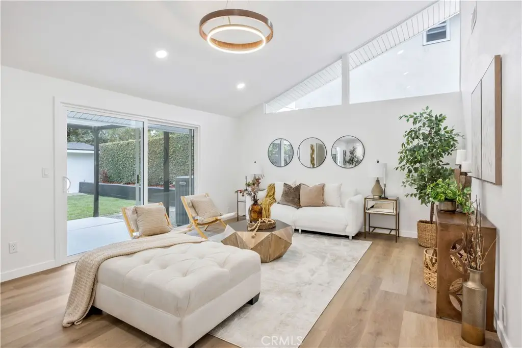 Step into a beautifully redesigned modern home where clean lines, natural light, and thoughtful craftsmanship come together seamlessly. This fully remodeled residence features paid-off solar, an open floor plan, high ceilings, and a spacious kitchen anchored by a striking waterfall island and sleek grey-and-gold accents. New flooring, upgraded fixtures, and contemporary finishes continue throughout, leading to an inviting primary suite with dual closets and a spa-inspired bathroom.
