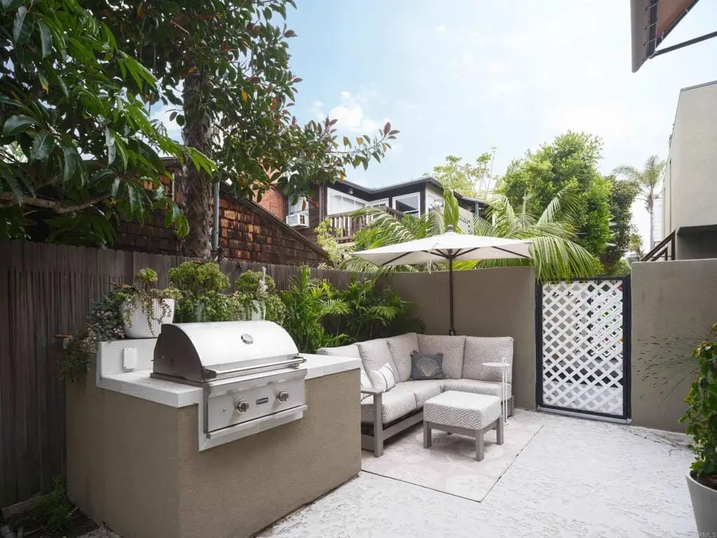 This meticulous townhome in a building designed by renowned architect Rod Youngson, combines sophistication & comfort in a prime location. Just steps from pristine beaches, parks, and the vibrant village, this property offers both serenity and convenience. Living like a single-family residence, this end-unit was recently renovated with thoughtful updates while maintaining its original character. Upon entry, you'll find bright, open living spaces with soaring ceilings that flow out to an expansive private patio with a built-in BBQ ideal for entertaining or relaxing. Upstairs a spacious primary bedroom features its own outdoor terrace and large walk-in closet, plus a generous landing area that can be used as an office, den, or extra living space perfect for working from home. Additionally, a large private laundry and utility room conveniently located by the attached garage enhances the home's functionality. If you're looking for that hard to find combination of elegant design, exceptional location, and indoor-outdoor living with the simplicity of a lock & leave condo, this is a must-see!