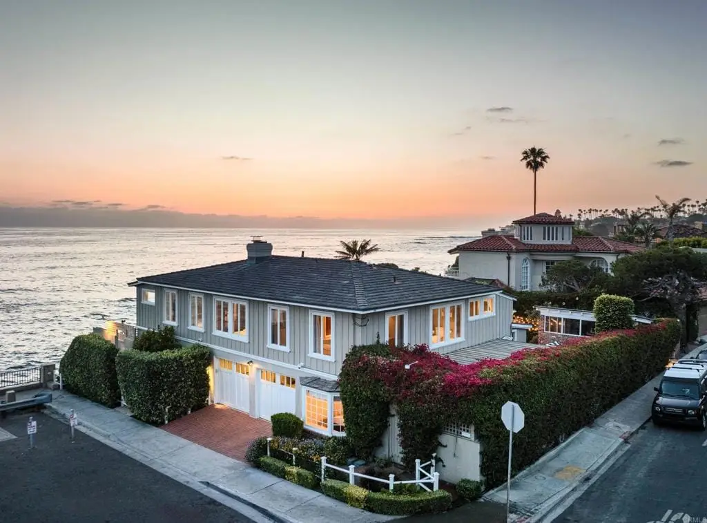 Positioned prominently above the iconic rock that is the namesake of one of La Jolla's favorite neighborhoods, the house at Bird Rock has an incredibly desirable combination of features. It offers panoramic, front row views with a bird's eye perspective of the vibrantly colorful and ever-changing ocean below, and an orientation that perfectly frames the surf breaks and mesmerizing sunsets, all from a location in close proximity to the charming allure of the restaurants, shops, galleries and neighborhood amenities of Bird Rock. The floor plan includes an upstairs primary suite with breathtaking ocean views, four secondary bedroom suites, a powder bath and two offices, and an oceanfront patio with multiple sitting areas and a jacuzzi spa. The home is great for entertaining and enjoys a laid back yet luxurious feel that exceeds expectations set by the understated curb appeal. The site has one of the most robust and permitted retaining earth walls in the area that supports the land on the ocean side, which adds to the usable outdoor space and ensures peace of mind not always enjoyed from properties of this kind. Being adjacent to a stairwell down to the water provides the best of all worlds - bluff top views, secure privacy for a beach location, and easy access to all of the natural wonders of the ocean below. Homes with the lifestyle features that are appurtenant to this property are scarce and the value of such a limited offering cannot be measured in dollars alone.