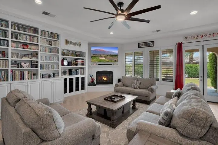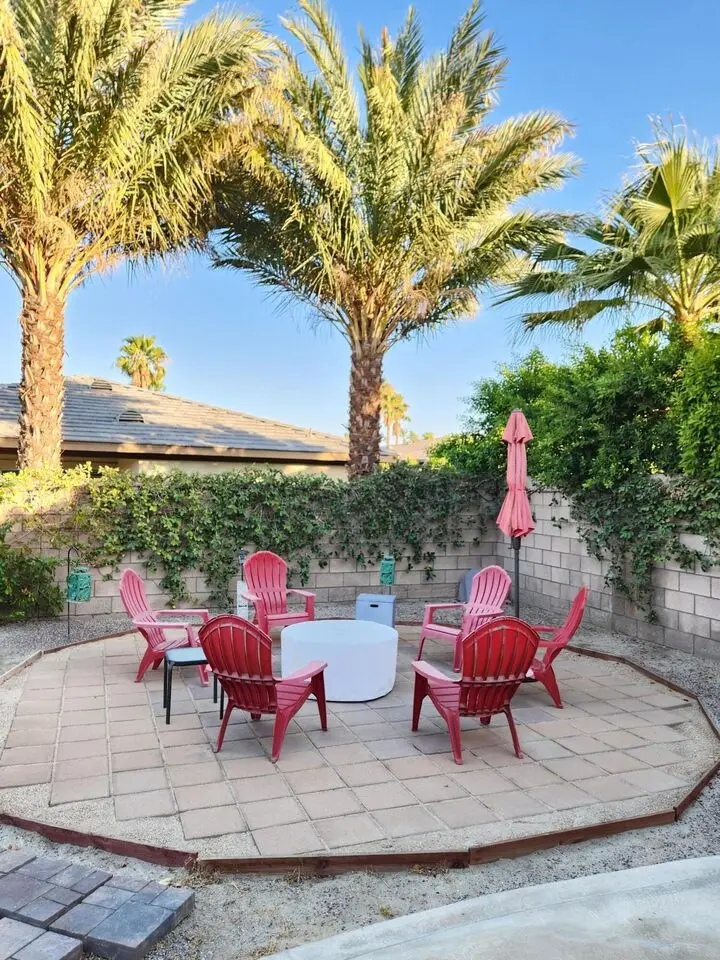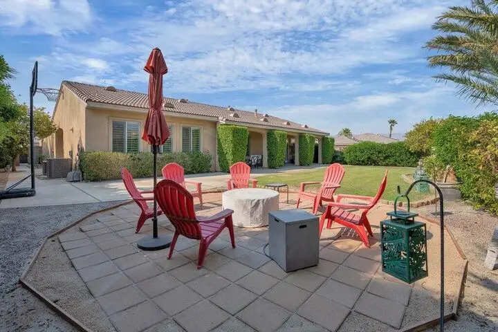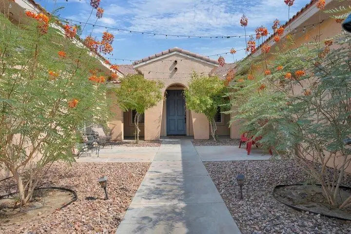 The Real Happiest Place on Earth - Right Here in La Quinta! 🌴 Think the happiest place is in Anaheim? Think again! This beautifully maintained home in La Quinta will have you smiling from ear to ear. With a spacious layout, GREAT for entertaining because you have an oversized great room and kitchen, a dedicated home office, and a charming laundry room full of personality, every inch of this home was designed with comfort and function in mind. Step into the spa-like primary bathroom featuring a soaking tub and separate shower, perfect for unwinding after a desert day. The walk-in closet was custom designed for a true shoe lover! And just wait until you see the incredible backyard - private, lush landscaping with palm trees that you will view from nearby neighbors. Enjoy sunset chats around the firepit, host BBQs under the covered patio with ceiling fans or set up corn hole to play with family and friends. Whether you're working from home or entertaining under the stars, this home has it all. Located in one of La Quinta's most desirable neighborhoods. The community has a park with other green belt areas that are great for walking your pets or exercising or riding bikes and there is Bocce Ball. This is your happy place...waiting for you to make it your home!