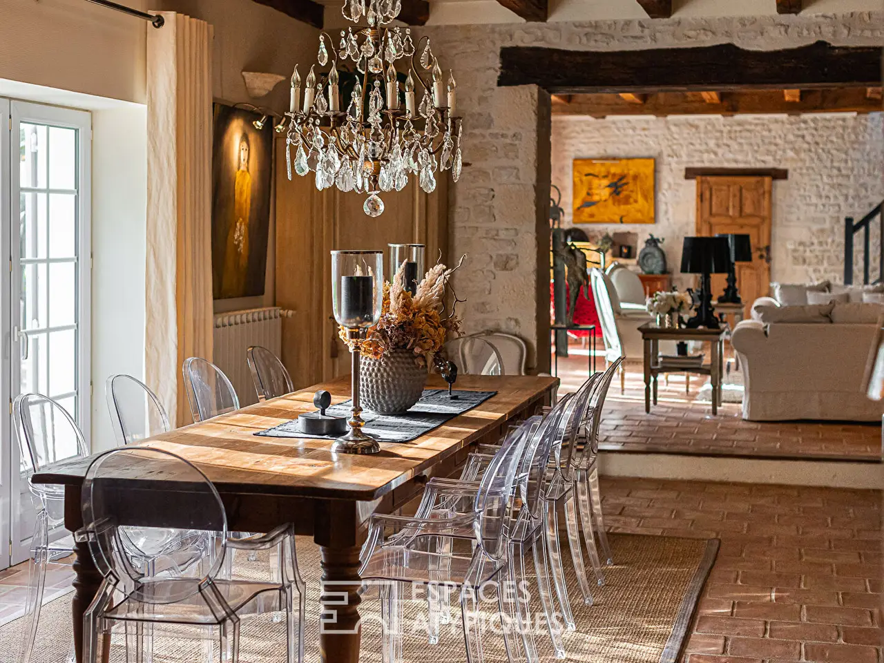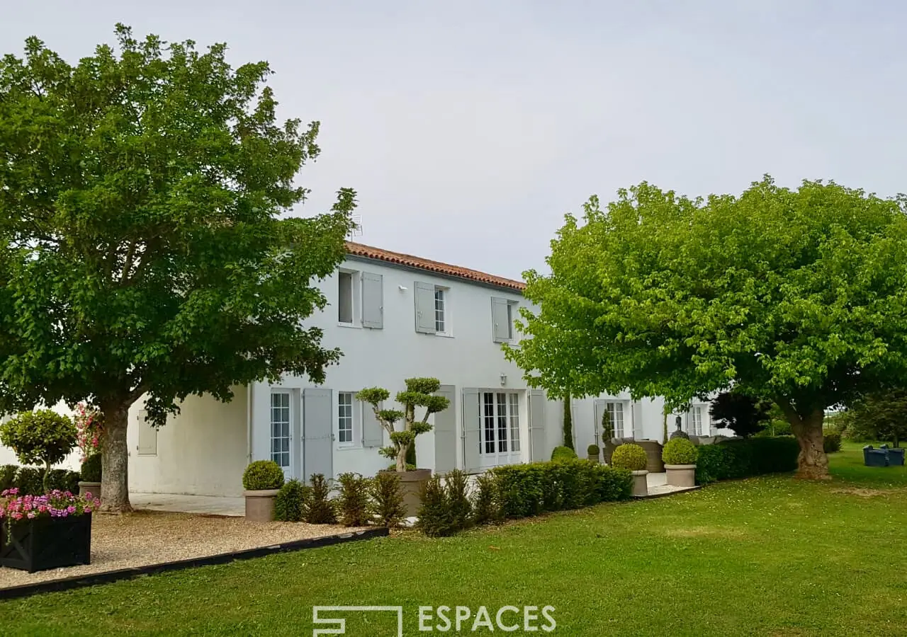 Nestled in lush countryside, this large farmhouse of approximately 400 m2 benefits from a privileged and peaceful environment, just 10 minutes from La Rochelle. The renovated old farmhouse is enhanced by the beauty of its vast park, which charms its guests with the tranquility and conviviality of the place. The main room, as a testament to the style of the property, sets the elegant tone between the stones, the exposed beams, the period terracotta tiles and the warm presence of the fireplace.Continuing on, the living room and the second living room open onto a comfortable perspective of the living space. At the back, the fitted and equipped kitchen benefits from its entrance to the outside. Completed by access to the garage or the laundry room, then an entrance and the boiler room, this part This part is designed to meet all the practical needs of the house, Also on one level, a large master bedroom and its bathroom offer intimate and warm comfort with the presence of a second fireplace.Upstairs, the landing leads to a large suite with its shower room. In the hallway, a second bedroom, an office, a dressing room, and a bathroom precede the final part of the house with three other bedrooms and a shower room. This complete sleeping area has all the necessary comfort to accommodate a large family or a guest room project.Outside, the garden of nearly one hectare has been designed to entertain and fully enjoy the calm of the place. The spaces are landscaped, green, and flourishing, between pine forest, park, terrace, and pool house courtyard.The latter is designed like a real studio with its summer kitchen and bar, lounge area, bedroom, and shower room/toilet. As an extension of the second building, the swimming pool nestles between terrace and greenery. Thanks to its renovation, the comfort and volume of its spaces, the charm of the old, this vast property will delight a large family, can serve as a haven for large gatherings in all seasons or will fulfill professional projects of reception and services.Charm, authenticity and elegance characterize this property which exudes happiness in the countryside, only a few minutes by bike from all amenities and beaches.ENERGY CLASS: 'D' / CLIMATE CLASS: 'D'. Estimated average amount of annual energy expenditure for standard use, established from 2021 energy prices: from EUR2,920 to EUR3,980.REF. EALR1937Additional information* 12 rooms* 8 bedrooms* 2 bathrooms* 3 shower rooms* 2 floors in the building* Outdoor space : 9930 SQM* Property tax : 2 953 €Energy Performance CertificatePrimary energy consumptiond : 106 kWh/m2.yearHigh performance housing*A*B*C*106kWh/m2.year32*kg CO2/m2.yearD*E*F*GExtremely poor housing performance* Of which greenhouse gas emissionsd : 32 kg CO2/m2.yearLow CO2 emissions*A*B*C*32kg CO2/m2.yearD*E*F*GVery high CO2 emissionsEstimated average amount of annual energy expenditure for standard use, established from energy prices for the year 2021 : between 2920 € and 3990 €Agency feesThe fees include VAT and are payable by the vendorMediatorMediation Franchise-Consommateurswww.mediation-franchise.com29 Boulevard de Courcelles 75008 ParisInformation on the risks to which this property is exposed is available on the Geohazards website : www.georisques.gouv.fr