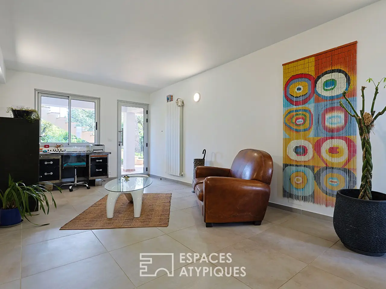 Maison design vintage renovee Nestled in the heart of a sought-after residential area, a stone's throw from the Sablettes beaches in La Seyne-sur-Mer in the Var, this 1970s Californian-inspired villa offers 215 sqm of living space on two levels, within a 2,575 sqm green setting. Carefully renovated in a resolutely contemporary spirit, this house with its clean architectural lines seduces with its assertive style, its omnipresent luminosity and its impeccable condition. Its singular silhouette, punctuated by large bay windows, dialogues with the surrounding nature in perfect harmony, sheltered from view. From the entrance, the living room reveals its generous volumes, enhanced by a beautiful high ceiling and through light. The living room extends naturally towards the exteriors thanks to large full-height openings, offering a fluid and soothing feeling of inside-outside. The separate, fully fitted and equipped kitchen extends elegantly and simply from the dining area. The villa offers four comfortable bedrooms, including a master suite with soothing volumes, overlooking the wooded garden. Each space has been designed to combine aesthetics, functionality, and daily well-being. Outside, the wooded garden-partly listed and unbuildable-envelops the house in a gentle and intimate Mediterranean atmosphere. Several terraces, some of which offer a glimpse of the sea, invite contemplation and relaxation. The possibility of installing a swimming pool completes the living environment. Located in a quiet and sought-after area, close to shops, schools, and major roads linking Toulon to Marseille, this property embodies a certain idea of discreet luxury, combining authenticity and modernity. A rare property with a strong architectural identity, for lovers of unique and inspiring living spaces. File on request ENERGY CLASS: C 165 / CLIMATE CLASS: A 5 Estimated average amount of annual energy expenditure for standard use, established from 2021 energy prices: between 2641 and 3573 euros. Information on the risks to which this property is exposed is available on the website: www.georisques.gouv.fr Samuel Arzoine REF. 10476 Additional information * 6 rooms * 4 bedrooms * 1 bathroom * 3 shower rooms * Floor : 1 * 1 floor in the building * Outdoor space : 2576 SQM * Parking : 6 parking spaces * Property tax : 3 687 € Energy Performance Certificate EPC : 165 kWhEP/m2.year