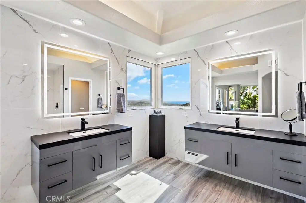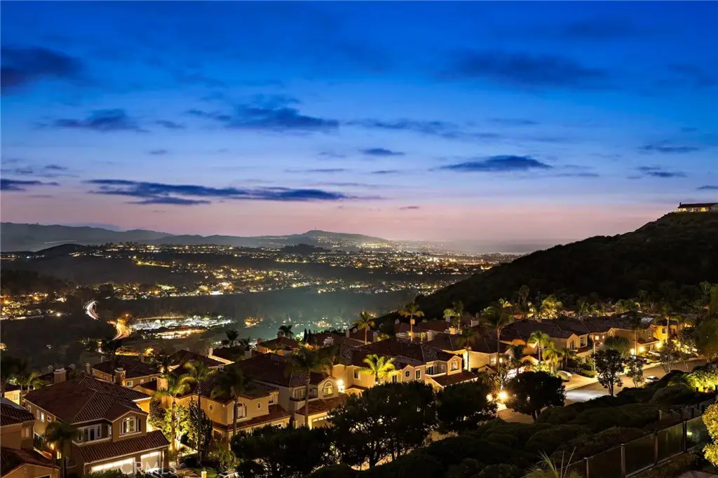 Experience coastal California living at its finest. Welcome to this highly remodeled, state-of-the-art smart home showcasing over $600,000 in high-end upgrades and offering unparalleled 180deg views that stretch from the Pacific Ocean to the mountains and twinkling city lights below. Nestled in one of Laguna Niguel's most prestigious communities, this stunning residence blends modern elegance with effortless indoor-outdoor living. Enter through the massive, custom, wrought iron front door with smart keyless entry, & be greeted by a grand, foyer featuring soaring ceilings, polished porcelain flooring, & a sweeping staircase that immediately sets the tone for the home's elevated design & craftsmanship. Open concept with expansive windows that fill the home with natural light while framing breathtaking panoramic vistas from nearly every room. The chef-inspired kitchen is a true showpiece, boasting a massive waterfall island, custom cabinetry, professional-grade stainless steel appliances, and elegant pendant lighting. Seamlessly connected to the sophisticated dining and living areas, this space invites both relaxation and entertainment. The floor-to-ceiling tiled fireplace adds warmth and contemporary style, while the additional fireplace in the family room/game room provides another cozy gathering spot for family and friends. Upstairs, the luxurious primary suite offers a private retreat like no other, complete with jaw-dropping panoramic views, a sitting area with a modern, linear fireplace, a private balcony, & a spa-like bathroom featuring dual vanities, a soaking tub, & a separate glass-enclosed shower. The home also includes a versatile office/bonus room with built-ins, perfect for a dedicated home office, guest suite, or additional bedroom to fit your lifestyle needs. Step outside to your private outdoor oasis, where coastal breezes and endless views set the tone for relaxation and entertaining. Enjoy multiple lounge areas, a fire pit, custom-built BBQ station, LED-lit spa, and elegant fire bowls--all positioned to capture the incredible ocean & city light views that define this exceptional property. This home has been transformed into a state-of-the-art smart home, allowing you to control temperature, lighting, sound, door entry, and security with the touch of a button, offering both convenience and peace of mind. Located just minutes from world-class beaches, dining, shopping, & award-winning schools.