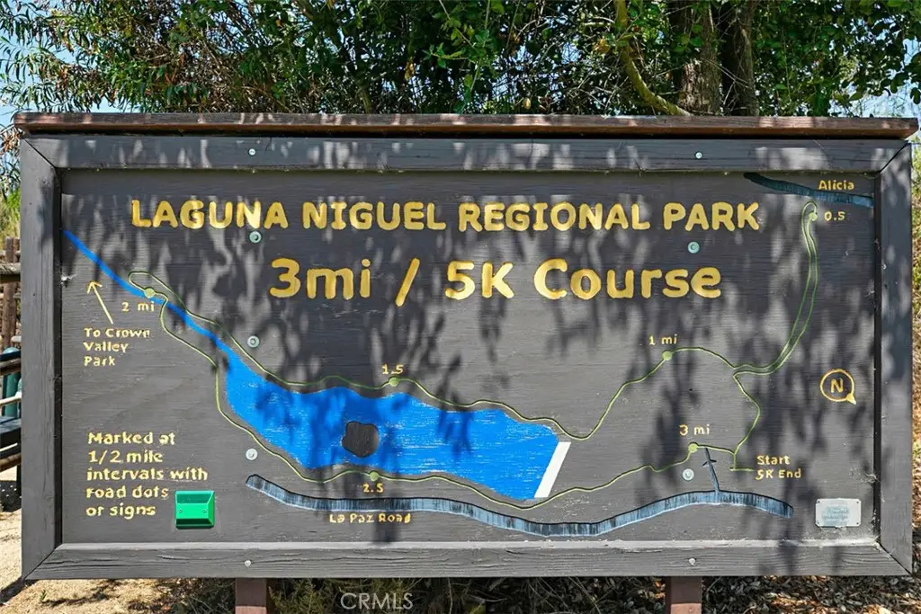 Gorgeous Lake Park home with a main floor primary bedroom and totally reconfigured kitchen! Private, gated front courtyard entrance with large open area with the garage adjacent. This home features an incredible kitchen that was done in 2020 that entailed removing walls and a dropped ceiling and now has a large island that was not part of the original floor plan and now is totally open to the dining room and main living and family rooms. The kitchen boasts custom shaker wood cabinets with soft-close drawers, a farmhouse sink, a walk in pantry, leathered quartzite countertops, and new appliances (oven replaced in 2023). Luxury vinyl flooring and new baseboards enhance the first floor, while new light fixtures add a modern touch throughout. The main floor includes a spacious primary suite with a stunning primary bathroom that has been remodeled from top to bottom with new cabinets, countertops, sinks, mirrors, shower, and has a walk in closet and access to the backyard. An additional bedroom, bathroom and laundry plus the furnace was relocated, creating extra inside storage downstairs. Upstairs there are two more bedrooms plus a brand new remodeled bathroom with walk in shower, new vanity with dual sinks, lighted mirror, and all new fixtures and finishes (2025). Off the front bedroom is a balcony overlooking the front courtyard. Additional updates include new carpet up the stairs and into the rooms upstairs (2025) new paint, a new hot water heater (2023), dual-zone AC unit (2024), and new windows in the primary bedroom and a secondary room upstairs. Two car garage that has great storage capabilities overhead. Lake Park HOA includes a community park, pool & jacuzzi. Walking distance to Laguna Niguel Regional Park, which has hiking trails, picnic areas, sports courts, fishing at the lake, and areas to rent out for parities plus a 4th of July fireworks show. Costco, Whole Foods, Sprouts, Home Depot, the newly renovated YMCA, numerous restaurants and only a few miles to world class beaches, 5-star resorts, Laguna Beach, & Dana Point Harbor currently undergoing a major renovation.