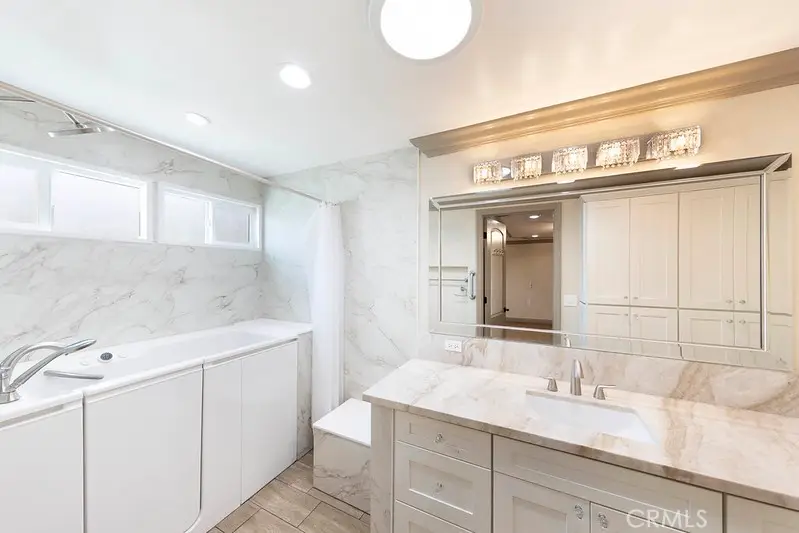 Welcome home to 5446 Alta Vista! This beautifully expanded and remodeled Columbia floor plan offers over 2400 square feet. A fully DETACHED 3 bedroom, 2 bath single level home boasts numerous amenities. The 2 car attached garage with DIRECT access into the home also has a private courtyard. Marble entryway. Remodeled gourmet kitchen with large center island. The patio off of the primary bedroom has been enclosed providing for a very spacious bedroom. The primary bath boasts a Kohler walk in bathtub and shower combo, fully remodeled. The living room offers a stone fireplace, and built in home entertainment system with flat screen TV. The rear patio has also been enclosed with beautiful views and abundant natural light. Additional amenities: hardwood floors, 4 skylights, newer HVAC and AC, newer water heater and heat pump and recently termite tented in the Summer of 2025. This beautiful home is one of Laguna Woods premiere properties and is ready for you!
