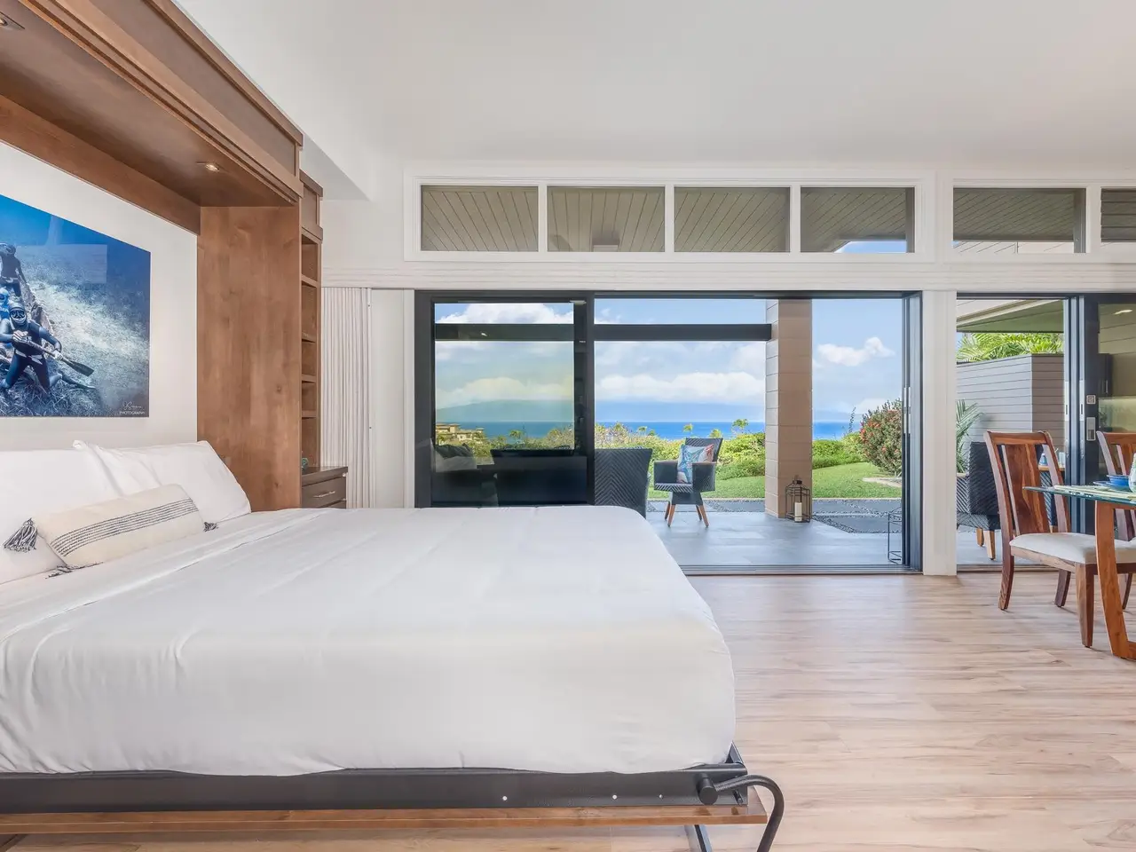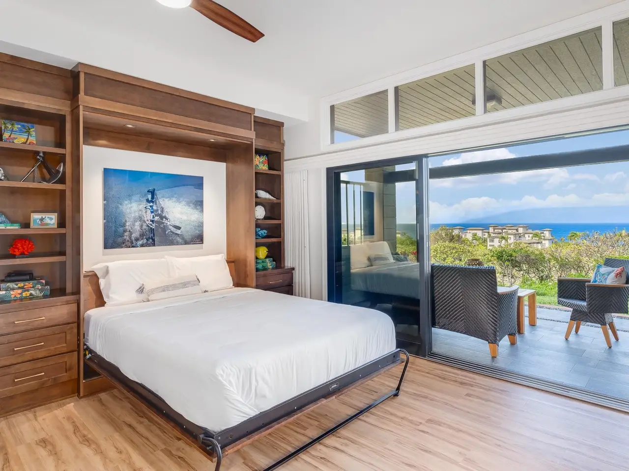 Ultra-Modern Remodel | Ocean & Moloka‘i Views | Turnkey Luxury at Kapalua Resort. Experience elevated island living in this stunning 1-bedroom, 2-bathroom ground floor residence at the prestigious Kapalua Ridge Villas, located within the world-renowned Kapalua Resort on Maui’s upper West Side. Beautifully remodeled throughout with ultra-modern design inspiration, this frontline, west-facing unit enjoys commanding panoramic views of the Pacific Ocean and neighboring Moloka‘i island. Positioned to capture unforgettable sunsets and cool ocean breezes, this is island living at its most refined. Boasting 1,229 square feet, this generously sized condo features an open-concept floor plan that lives and feels like a private retreat. The interiors are curated with island-inspired furnishings, designer fixtures, and thoughtful touches of modern luxury, including custom lighting, living room wall murphy bed and contemporary finishes. Enjoy the privacy and serenity of Kapalua Ridge, all while being minutes from world-class beaches, championship golf courses, fine dining, hiking trails, and the celebrated Kapalua Coastal Trail. Resort amenities include pools, tennis and access to Kapalua's exceptional natural beauty. Whether you're seeking a personal escape or a luxury vacation rental, Kapalua Ridge Villa offers an exceptional opportunity to own a front-row seat to Maui’s best views and lifestyle.