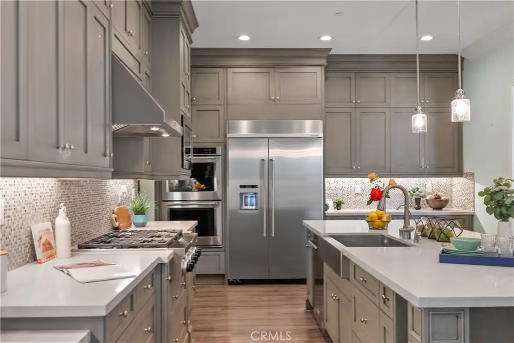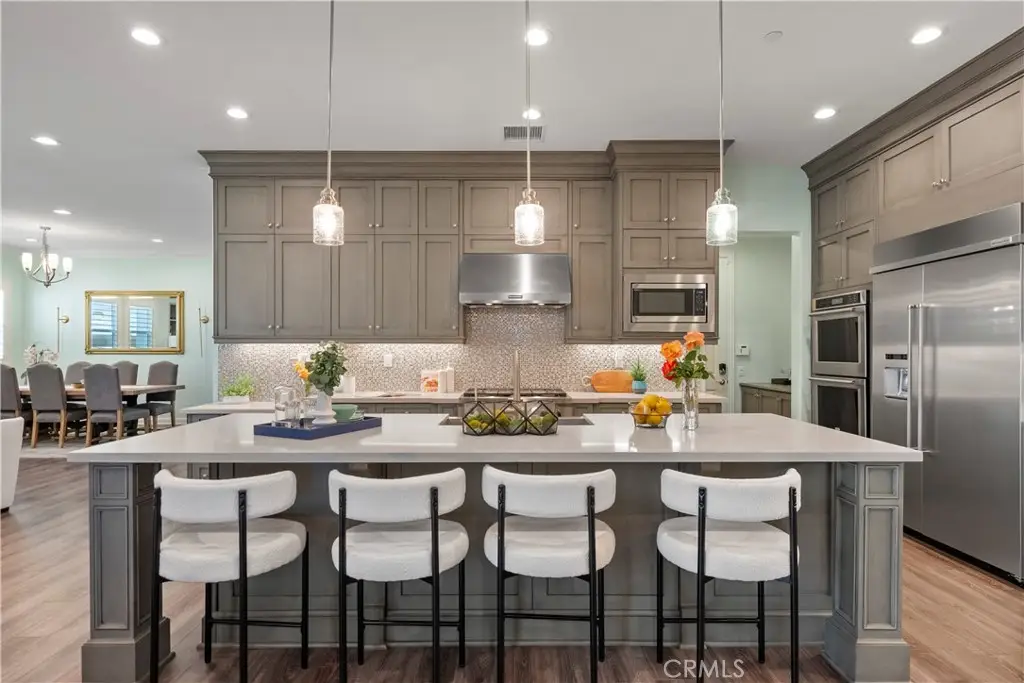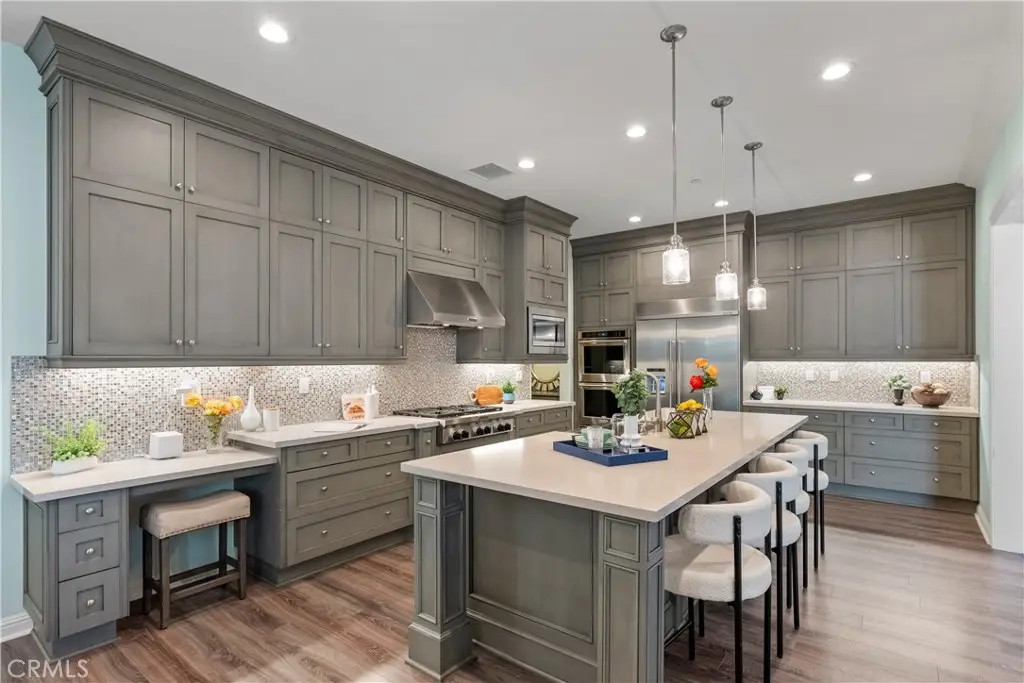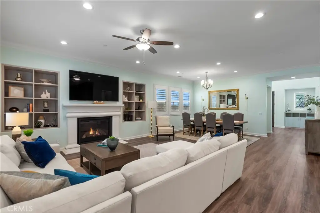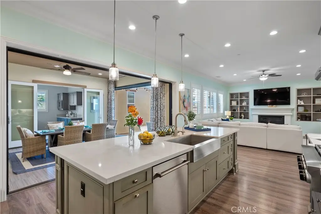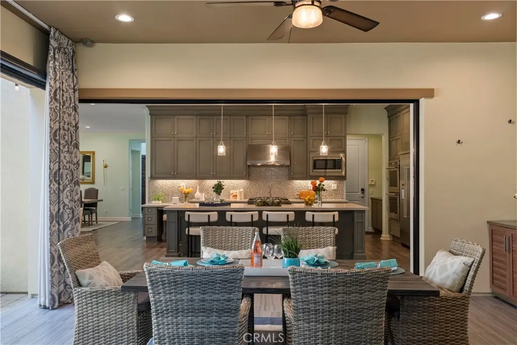 Welcome to 46 Dogwood, a beautifully upgraded 5-bedroom, 5.5-bathroom Toll Brothers home offering 3,273 square feet of luxury living in the prestigious Highlands neighborhood of Baker Ranch. This exceptional property includes a ground level casita with its own private entrance, living room, kitchenette, bedroom, and full bath--perfect for guests, multi-generational living, or a private office. With over $300,000 in designer upgrades, this home offers a blend of refined elegance and modern comfort. From the grand double-door entry, you're welcomed into a dramatic two-story foyer with a sweeping curved staircase and thoughtfully designed built-ins that set the stage for the rest of the home. The open floor plan is flooded with natural light and features a cozy fireplace, generous living areas, and a chef-inspired kitchen with an oversized quartz island, wraparound breakfast bar, full-height soft-close cabinetry, built-in refrigerator, high-end stainless steel appliances, farmhouse sink, walk-in pantry, reverse osmosis system, built-in desk, drop zone, and designer lighting. Expansive pocketing glass doors open to a stunning California Room, outfitted with custom cabinetry, a wine and beverage refrigerator, and motorized screens and drapes for ideal indoor-outdoor entertaining. Each bedroom includes its own ensuite bathroom, and the luxurious primary suite offers tray ceilings, dual walk-in closets with custom organizers, a spa-like bath with an oversized shower and soaking tub, and pocket glass doors that open to a private deck with scenic hillside views. Additional features include smart home technology such as video doorbell, smart locks, thermostats, and a smart garage opener. The garage is finished with epoxy floors, built-in cabinets, overhead storage, a workbench, EV charger, and a whole-home water softener and filtration system. The home is also equipped with a 5.2 kW Tesla solar system for added energy efficiency. Located in the resort-style community of Baker Ranch, residents enjoy access to multiple parks, six heated pools and spas, scenic trails, fitness areas, clubhouses, BBQ stations, fire pits, sport courts, and a dog park--all with no Mello-Roos and low HOA dues. This is an incredible opportunity to own a turnkey luxury home in one of Lake Forest's most desirable neighborhoods.