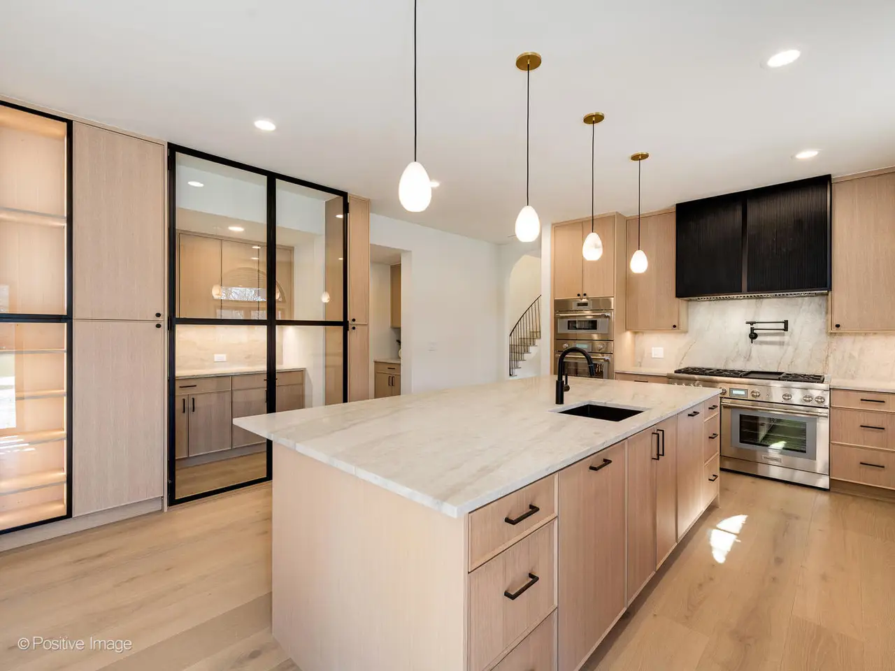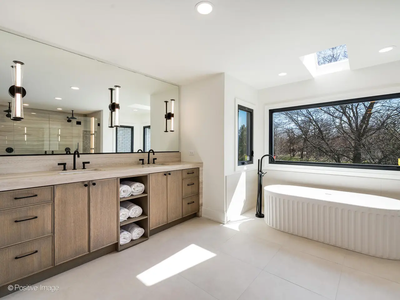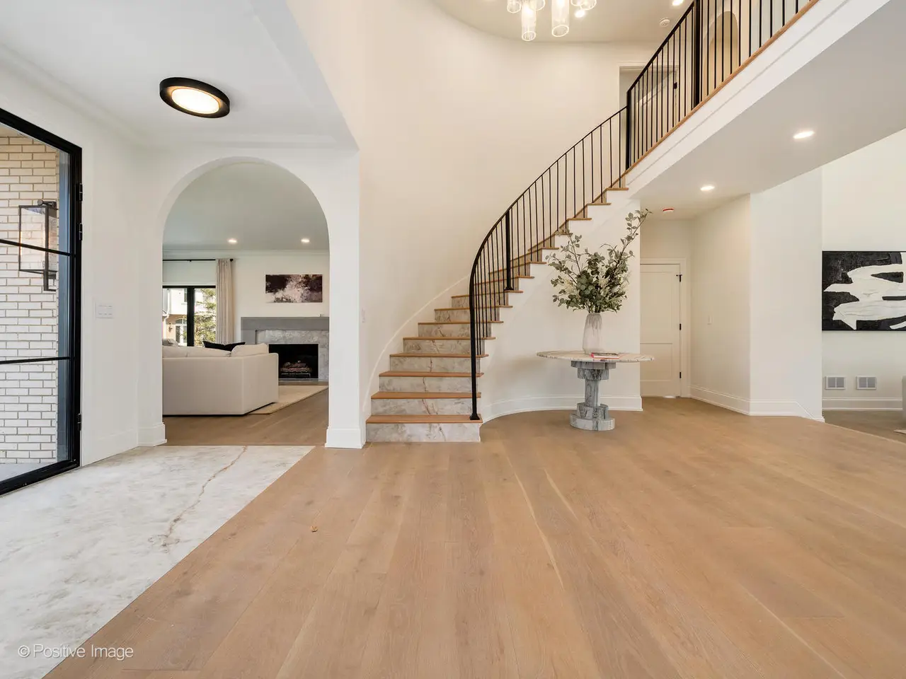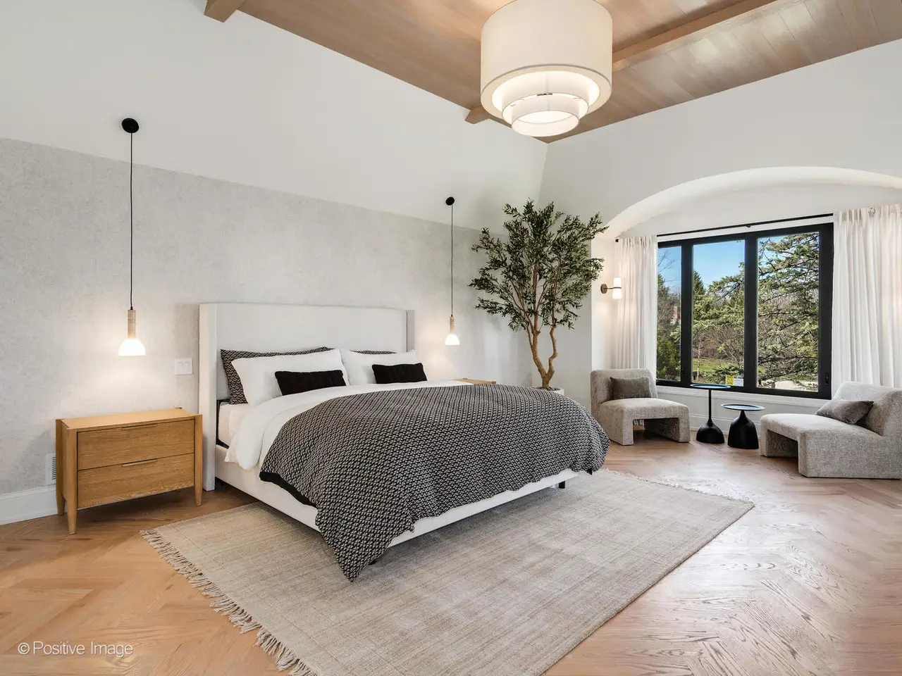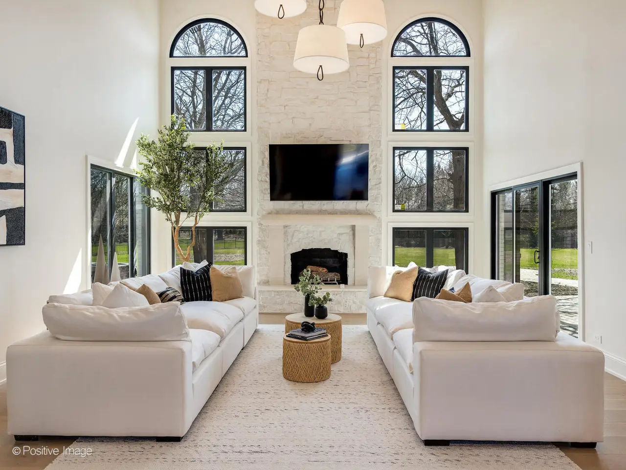 Refined Modern Living in the Heart of Lake Forest. Tucked away on a quiet cul-de-sac and set on over an acre of beautifully landscaped grounds, this fully renovated 6-bedroom, 5-bathroom home offers modern comfort and timeless appeal in one of Lake Forest's most desirable neighborhoods. Reimagined in 2025, the home welcomes you with a dramatic two-story entry and a light-filled layout designed for both everyday living and entertaining. The designer kitchen features custom white oak cabinetry, a statement island, Thermador appliances, and a sunlit breakfast nook overlooking the expansive backyard. The show-stopping family room anchors the main floor with soaring ceilings, white oak wood beams, and a striking two-story stone fireplace that brings warmth and elegance to the space. The separate dining room is a true statement space, featuring elegant fluted wall paneling and designer wallpaper that add texture, depth, and a refined sense of style. The living room welcomes you with a beautiful marble and limestone fireplace, creating a warm and inviting first impression as you enter the home. The main level also includes a spacious bedroom, ideal for an in-law suite or anyone seeking the convenience of a first-floor retreat. Upstairs, the luxurious primary suite boasts vaulted ceilings with white oak planks and beams, dual walk-in closets, and a spa-quality bath with a soaking tub and walk-in shower. Four additional bedrooms and a flexible upstairs office offer plenty of space for family and guests. The finished lower level expands your living space with a private home theatre, a fully equipped gym, and generous recreation areas. A 3-car attached garage and professionally landscaped grounds complete the offering. Beautifully updated from top to bottom, this home delivers a perfect blend of style, function, and privacy-just minutes from award-winning schools, parks, and the charm of downtown Lake Forest.