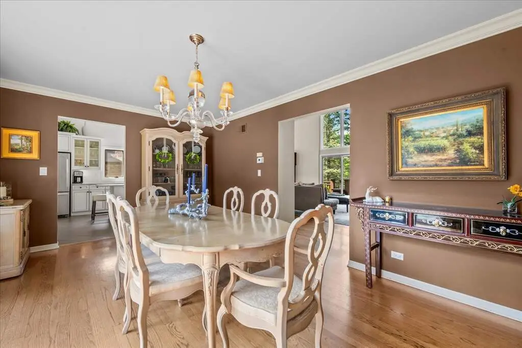 Located in the highly desirable Ponds subdivision, this premier property offers spectacular, unobstructed water views. This spacious 3,734 SF Tudor-style home features an open floor plan with vaulted ceilings, a see-thru fireplace connecting the family and living rooms, and a formal dining room off the entry. The first-floor primary suite includes a screened porch and a luxurious private bath. The stunning gourmet kitchen, remodeled in 2017, showcases quartzite countertops, a unique octagonal breakfast room, center island, stainless steel appliances, and a walk-in pantry. A mudroom connects to the attached 3-car garage. Upstairs, you'll find three additional bedrooms, 1.5 baths, and a versatile loft space with new neutral carpeting (2025). The English basement offers a spacious recreation room and a full bath. Enjoy outdoor living on the large deck overlooking a fully fenced, .38-acre backyard-featuring what may be the best pond views in the subdivision. The Ponds community includes three stocked ponds perfect for fishing, scenic walking paths, and direct access to Waveland Park. Conveniently located in central Lake Forest near schools, shopping, and transportation, this is a truly special home.
