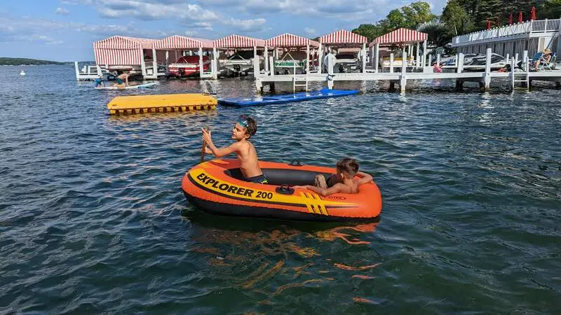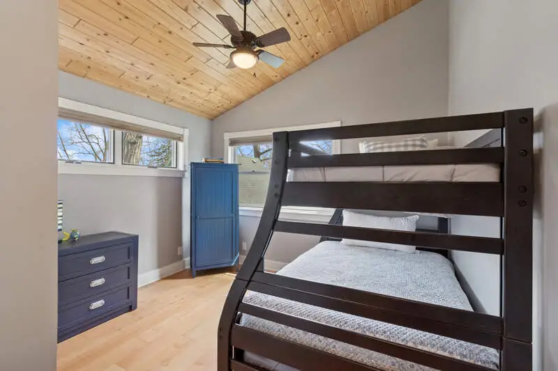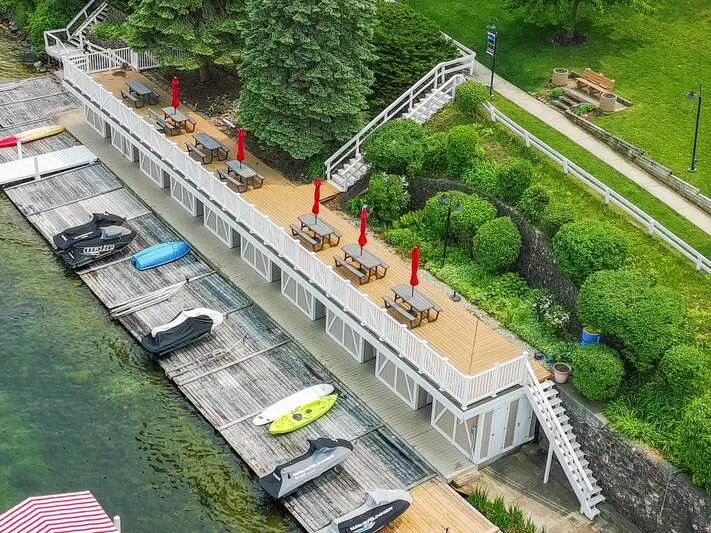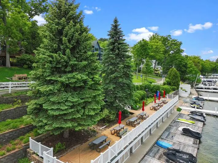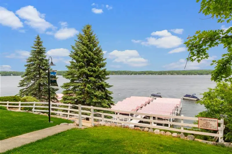 Geneva Lake - 5 Bedroom, 3 Bath, with Seasonal Lake Views, beautifully updated, meticulously maintained home made for entertaining family and friends and year-round enjoyment. A short golf cart ride takes you to your transferrable boat slip w/26ft lift, storage locker, private assoc swim pier, and park.Main Level with Living Room, Dining, Kitchen with quartz counters, newer appliances, extensive cabinets, 2 Bedrooms, updated Full Bath, Sunroom, Family Room w/gas Fireplace, and Deck. Upper Level TV Sitting Area, 3 Bedrooms, Full Bath. Lower-Level Rec Room, Full Bath, private Office, Laundry area w/fridge and micro for convenience. Light-filled rooms, new plank floors, multiple gathering spots, cozy spaces across all 3 levels, EV Station, Sonos, Selling Turn-Key, see docs.