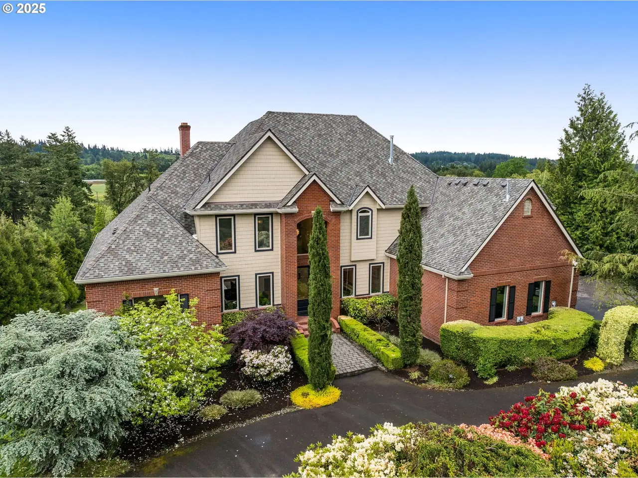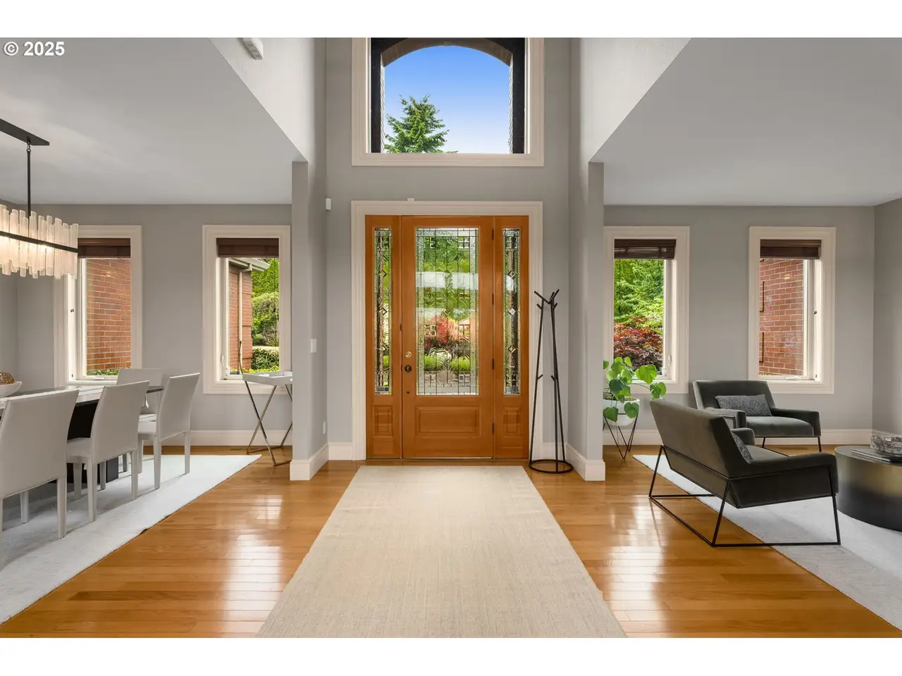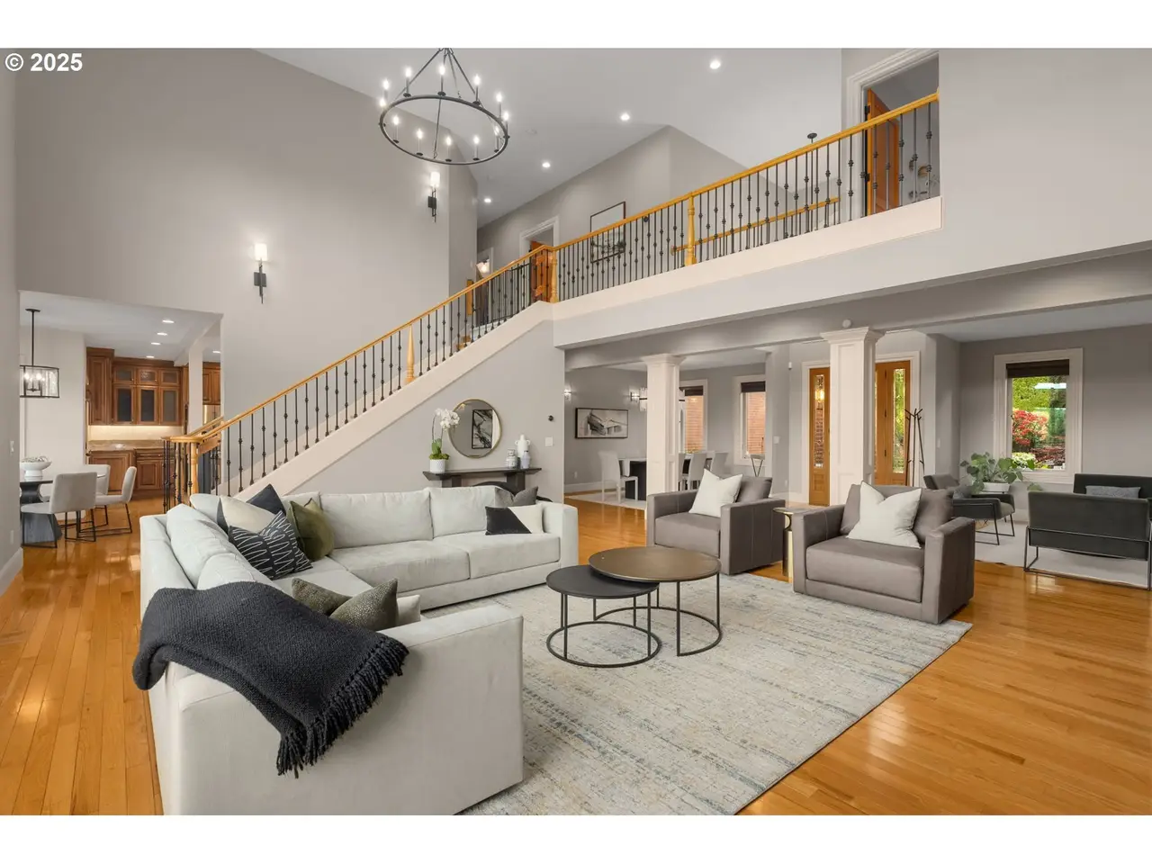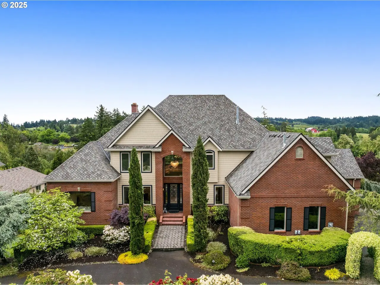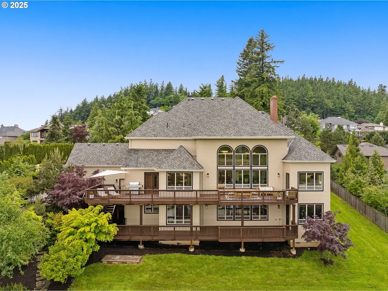 Tucked at the end of a secluded drive and enveloped by nearly an acre of property, this home offers a rare opportunity to own a grand, private estate just minutes from the heart of Lake Oswego. With over 6,300 square feet of masterfully designed living space, this extraordinary residence blends timeless sophistication with modern comforts. A dramatic foyer leads into an expansive great room, where soaring ceilings and floor-to-ceiling stonework frame a striking fireplace. Rich hardwood floors flow into the formal dining area and spacious formal seating area, creating a refined yet welcoming atmosphere. The gourmet kitchen is designed to impress, featuring slab granite countertops, a large island, walk-in pantry, top-of-the-line stainless appliances, and both a breakfast nook and direct access to an expansive entertaining deck with panoramic views. The main-level primary suite is a private retreat, complete with its own stunning vistas, deck access, dual walk-in closets, and a spa-like bath with double sinks, a soaking tub, and elegant tile finishes. Upstairs, three generously sized bedroom suites provide comfort and autonomy for family or guests, each offering walk-in closets and en suite bathrooms. The lower level is dedicated to recreation and entertainment, featuring a fully equipped bar and game room, a professional-grade home theater, and spacious home gym with custom mat flooring. A second oversized primary suite on this level includes its own exterior entrance - ideal for multigenerational living or a private guest escape. Outside, the manicured gardens, raised beds, covered deck, and expansive yard space all create a tranquil oasis for both entertaining and quiet relaxation. Ideally located just minutes from boutique shopping, fine dining, top-rated golf courses, parks and the new Lake Oswego Recreation & Aquatic Center. For the discerning buyer who values serenity as well as access to amenities, this home is the best of both worlds.