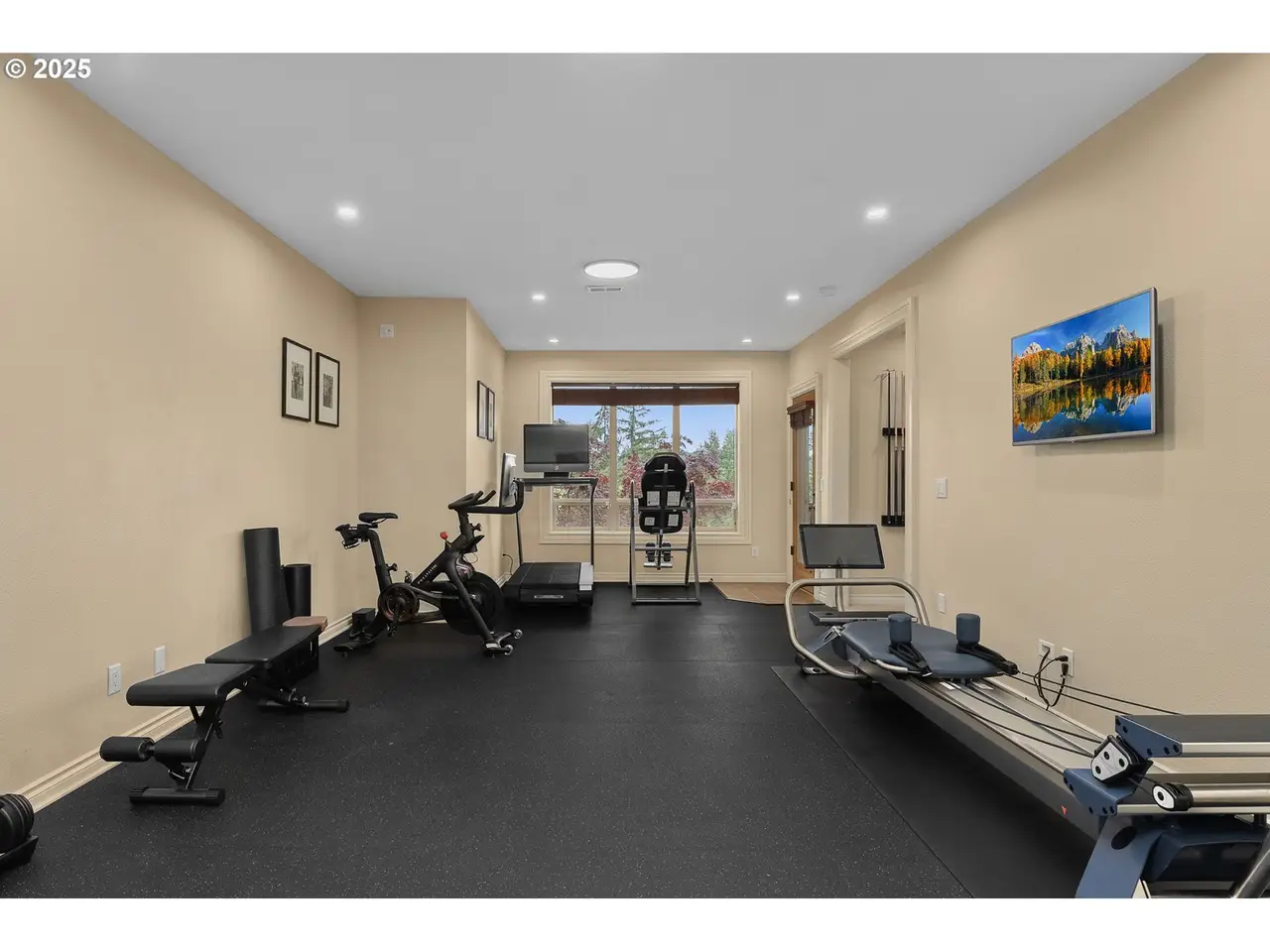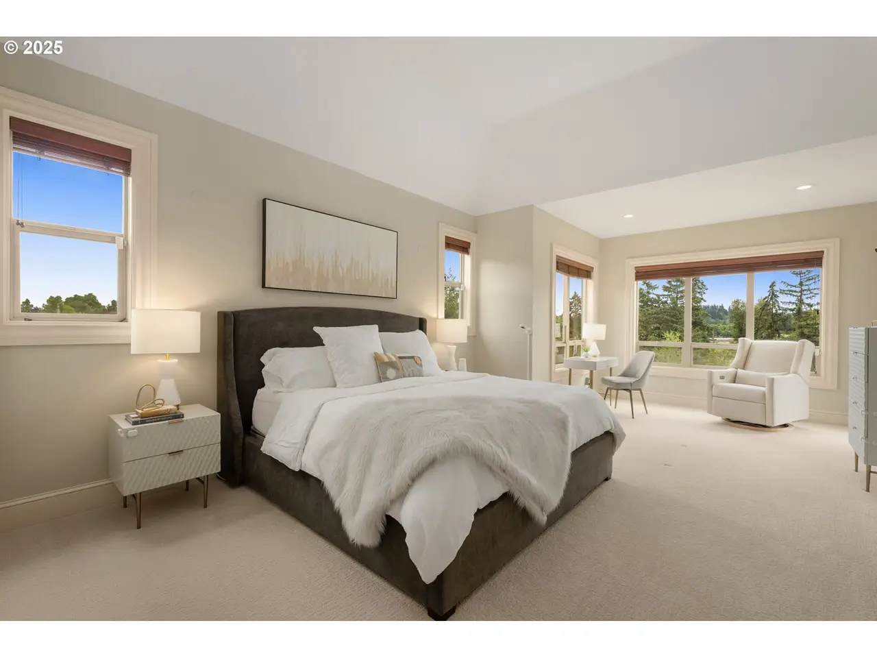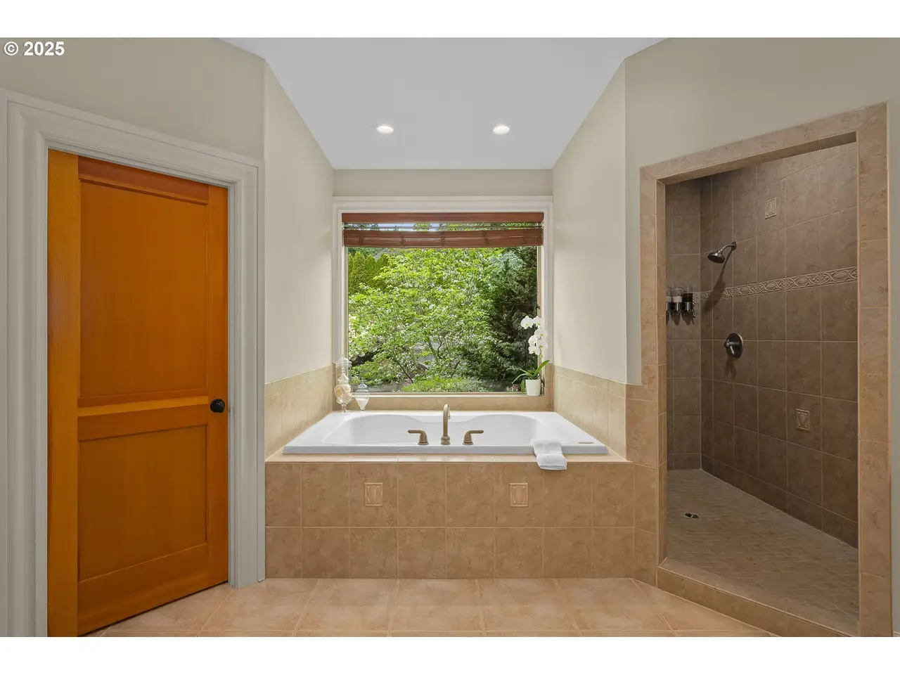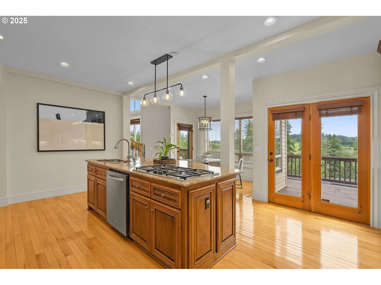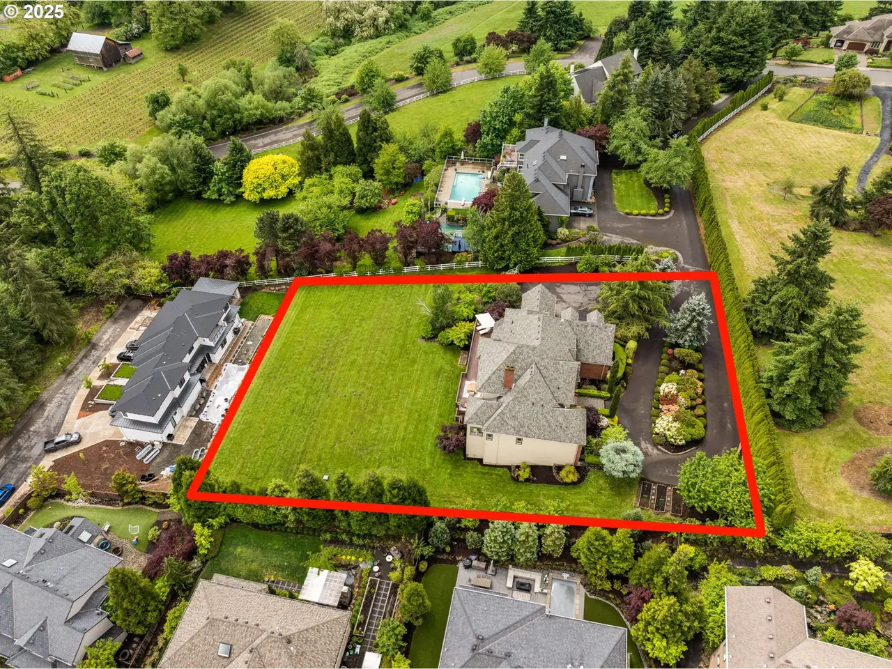 Tucked at the end of a secluded drive and enveloped by nearly an acre of property, this home offers a rare opportunity to own a grand, private estate just minutes from the heart of Lake Oswego. With over 6,300 square feet of masterfully designed living space, this extraordinary residence blends timeless sophistication with modern comforts. A dramatic foyer leads into an expansive great room, where soaring ceilings and floor-to-ceiling stonework frame a striking fireplace. Rich hardwood floors flow into the formal dining area and spacious formal seating area, creating a refined yet welcoming atmosphere. The gourmet kitchen is designed to impress, featuring slab granite countertops, a large island, walk-in pantry, top-of-the-line stainless appliances, and both a breakfast nook and direct access to an expansive entertaining deck with panoramic views. The main-level primary suite is a private retreat, complete with its own stunning vistas, deck access, dual walk-in closets, and a spa-like bath with double sinks, a soaking tub, and elegant tile finishes. Upstairs, three generously sized bedroom suites provide comfort and autonomy for family or guests, each offering walk-in closets and en suite bathrooms. The lower level is dedicated to recreation and entertainment, featuring a fully equipped bar and game room, a professional-grade home theater, and spacious home gym with custom mat flooring. A second oversized primary suite on this level includes its own exterior entrance - ideal for multigenerational living or a private guest escape. Outside, the manicured gardens, raised beds, covered deck, and expansive yard space all create a tranquil oasis for both entertaining and quiet relaxation. Ideally located just minutes from boutique shopping, fine dining, top-rated golf courses, parks and the new Lake Oswego Recreation & Aquatic Center. For the discerning buyer who values serenity as well as access to amenities, this home is the best of both worlds.