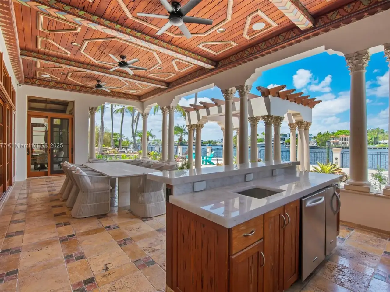 Welcome to Palazzo dei Pensieri in Seven Isles, a newly renovated waterfront estate on one of the most coveted streets in Las Olas. Spanning 12,262 sq ft (excluding 6-car garage) & built across two lots totaling 0.55 acres, this stunning home features 8 beds & 16 baths. Designed to impress, it boasts a designer kitchen with a butler’s pantry, an additional full kitchen, two elevators, & two rooftop terraces with breathtaking views. Outdoor amenities include a lagoon-style pool & hot tub, private putting green, & 200 feet of direct ocean-access water frontage overlooking the scenic junction of the lake, river, & Intracoastal. Enjoy movie nights in your private theater, stay fit in the gym, & unwind in the sauna. This property seamlessly blends elegance, comfort, & resort-style living.