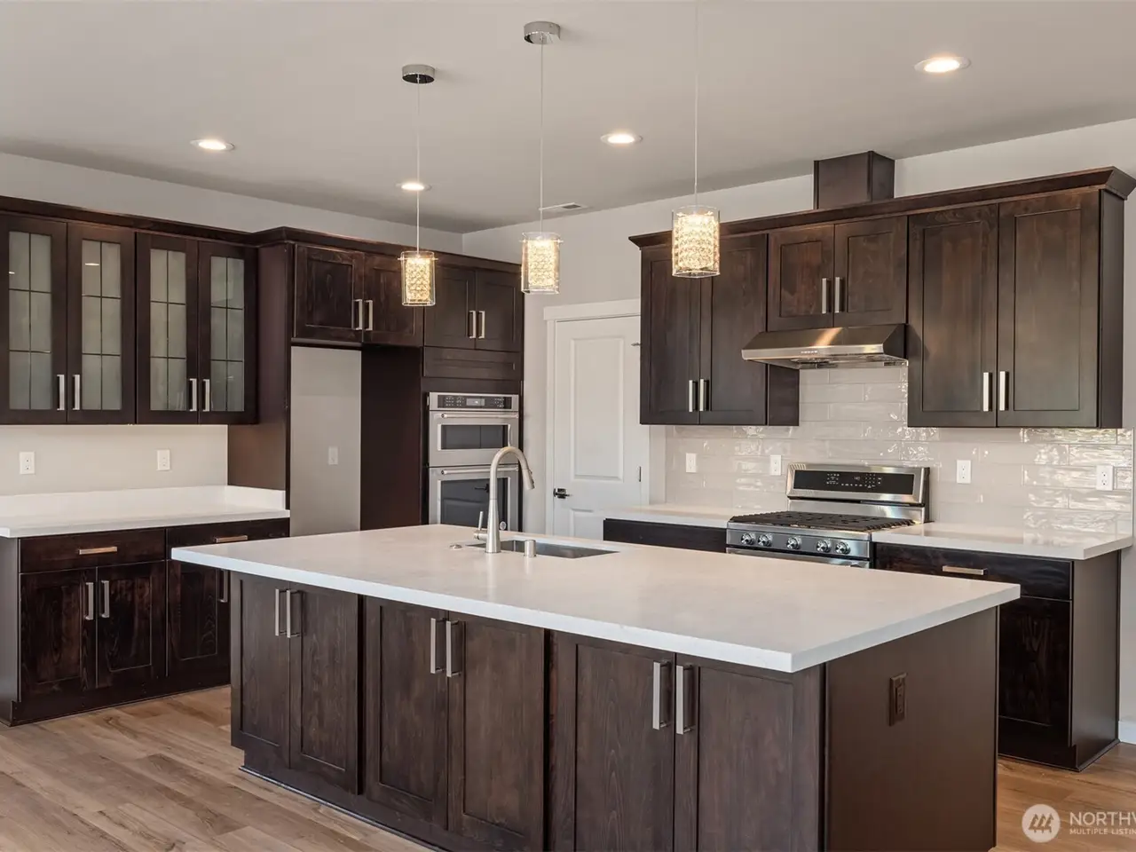 Stunning new construction in Lake Stevens! Hillcrest Estates offers breathtaking views & luxury living. Enjoy a massive back deck that showcases sweeping vistas of the Olympic Mountains, the city skyline, and picturesque sunsets--an entertainer's dream. Inside, the open-concept floor plan is designed to maximize natural light w/oversized windows throughout. The gourmet kitchen, featuring quartz countertops, and the luxurious primary suite w/heated floors, create an elevated living experience. A spacious 3 car gar provides ample storage, and the outdoor amenities, including a gas fireplace, gas BBQ stub out, and hot tub hookup, make this home perfect for all seasons.